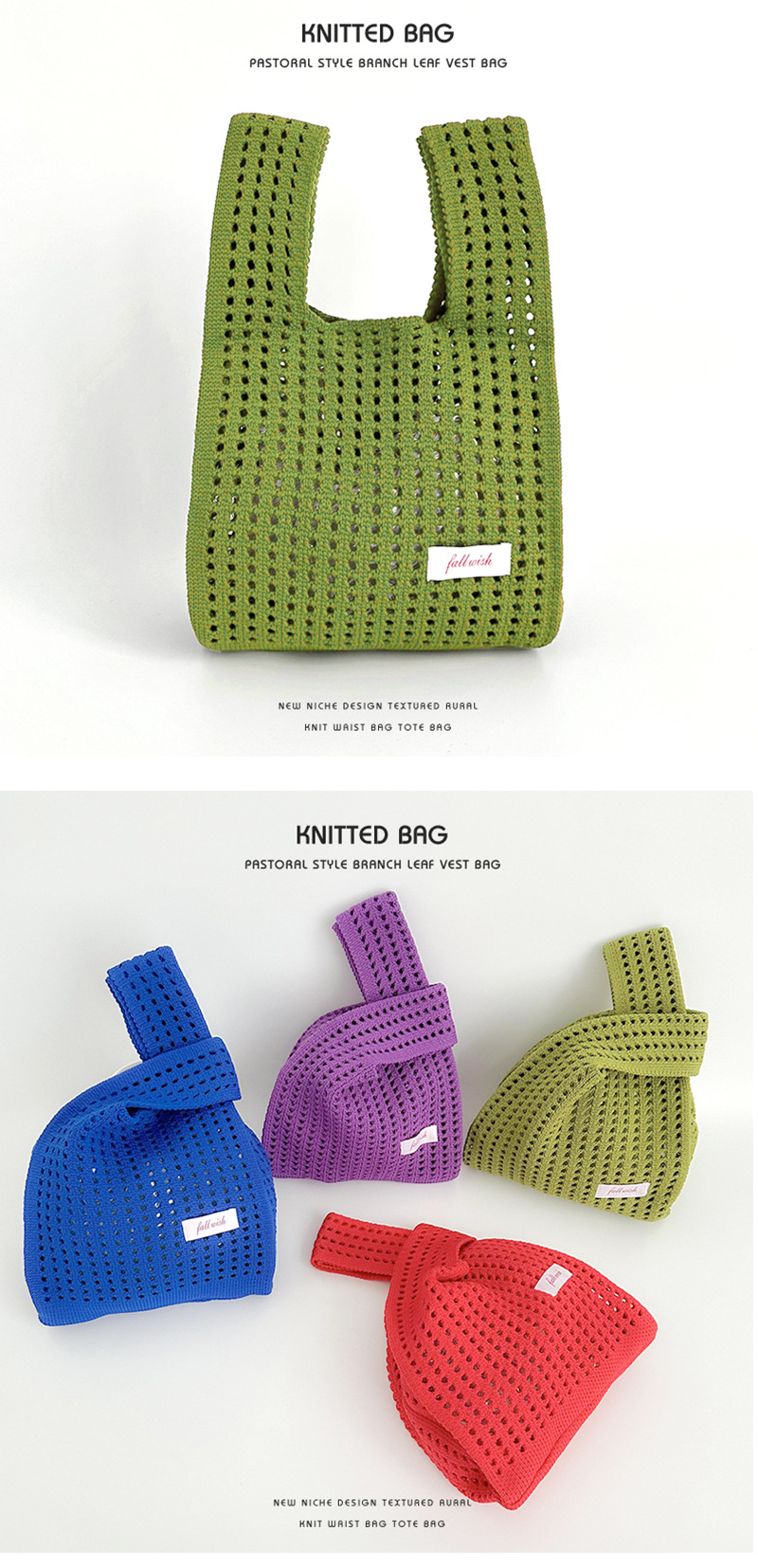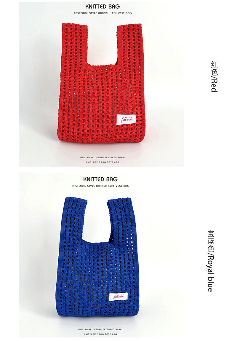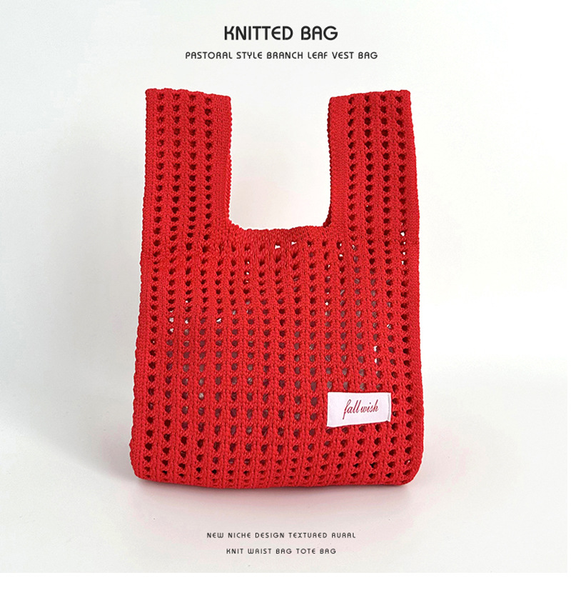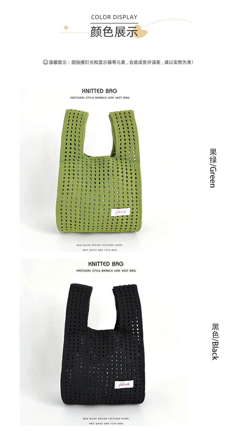심플 솔리드 컬러 니트 중공 숄더 핸드백 핸드백 조커 캐주얼 대용량 토트백 도매 한국어 버전스토어 가기