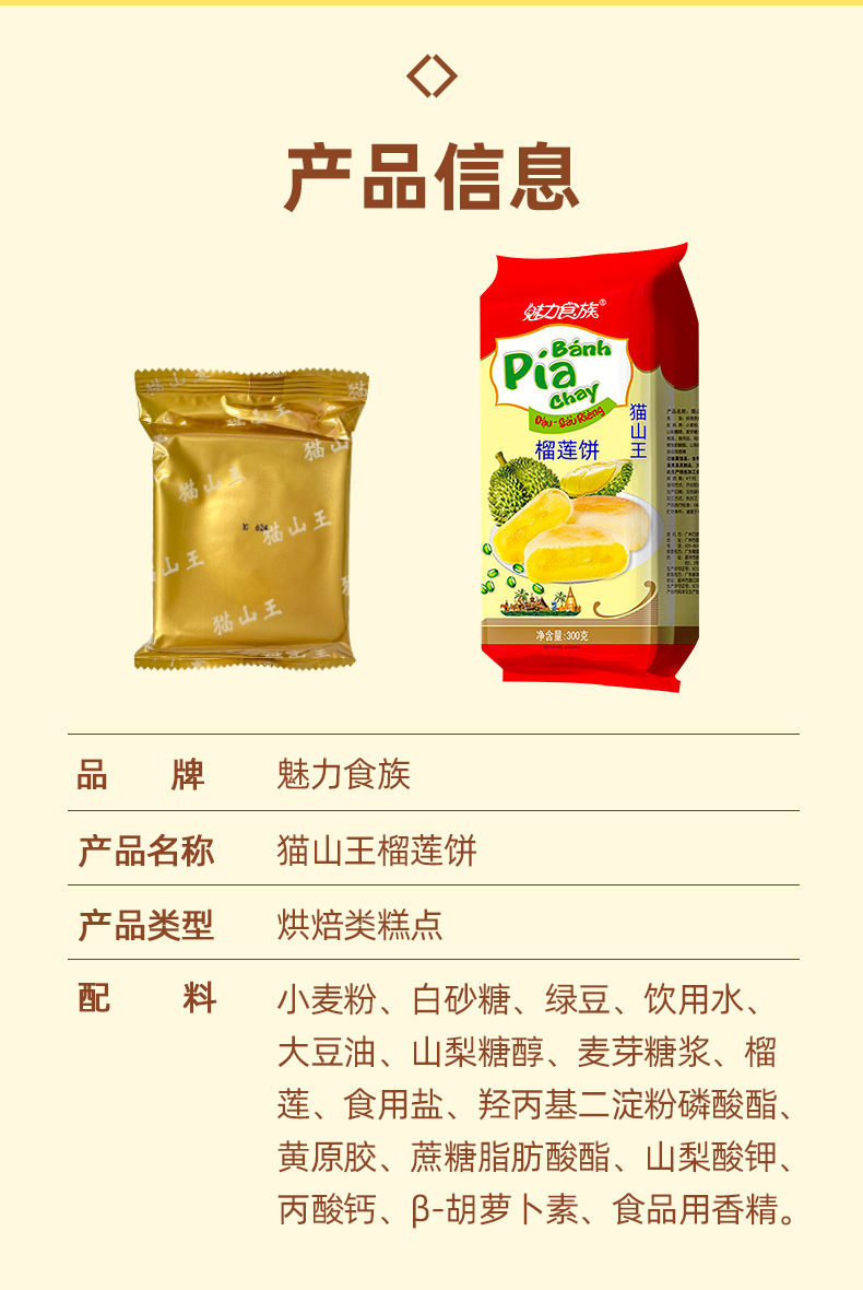 300g Musang King Durian 케이크 스낵 캐주얼 스낵 전통 과자 아침 식사 개별 포장 식품 슈퍼마켓 도매