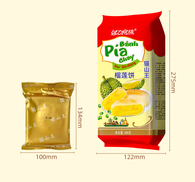 300g Musang King Durian 케이크 스낵 캐주얼 스낵 전통 과자 아침 식사 개별 포장 식품 슈퍼마켓 도매스토어 가기