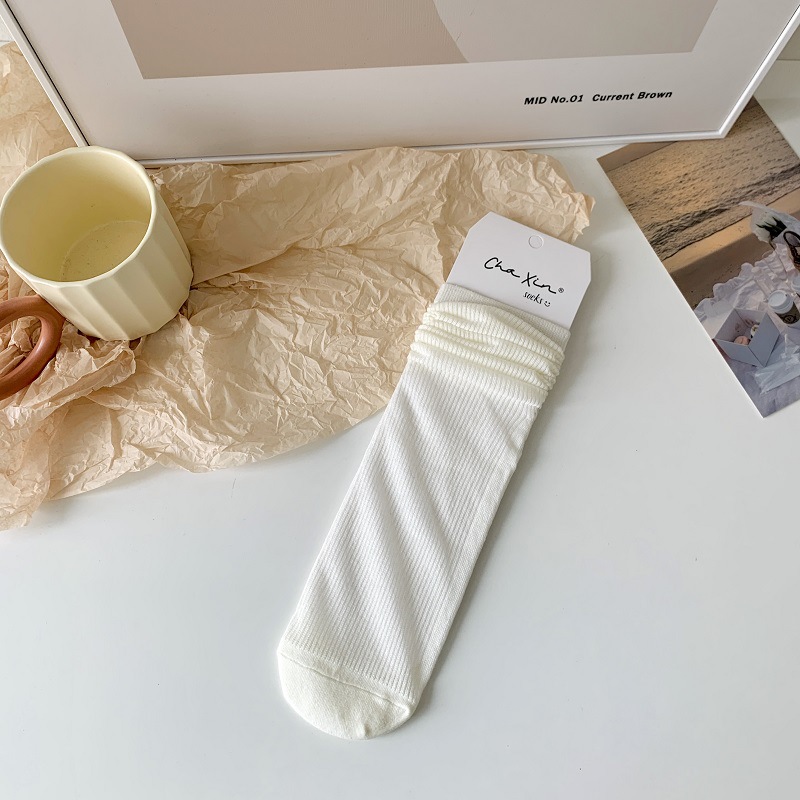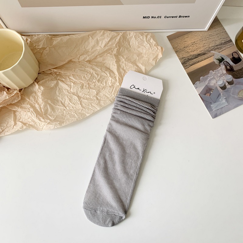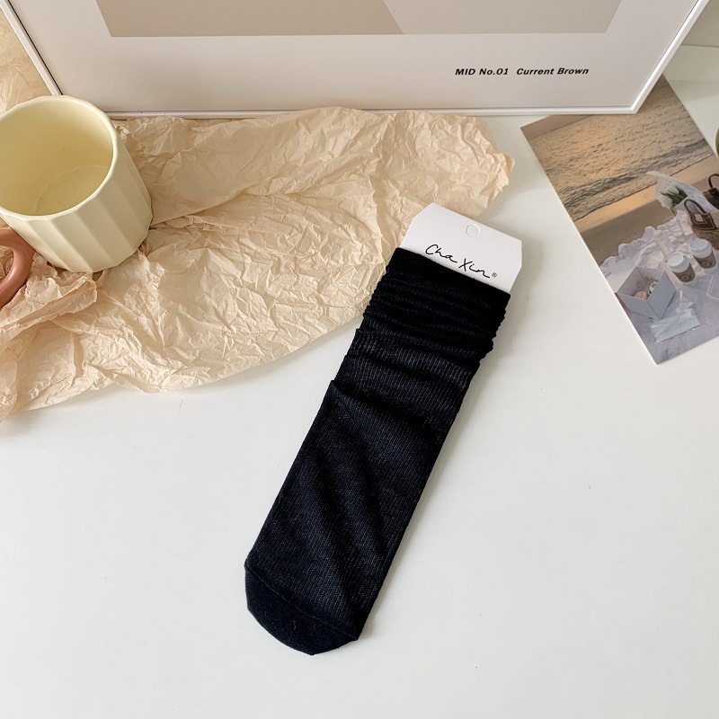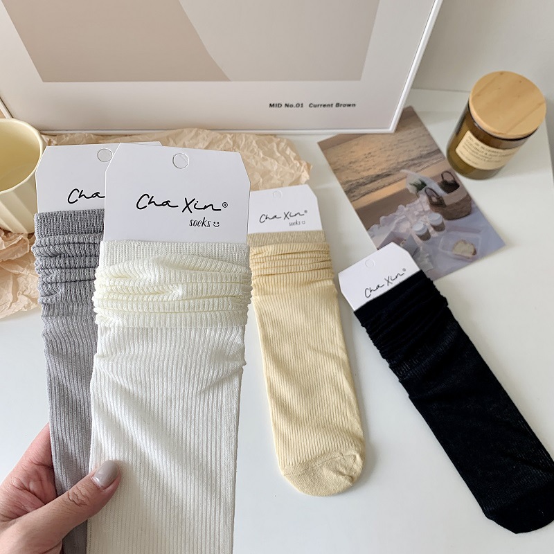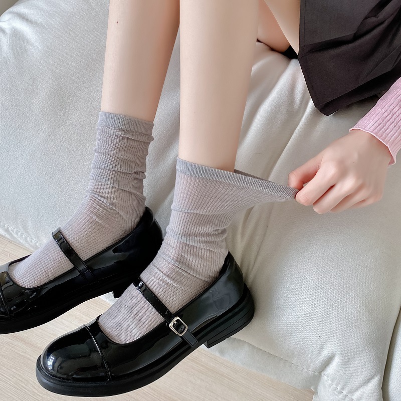단색 핀스트라이프 슬림핏 스태킹 양말 여성용 중간 길이 양말 여름 얇은 모든 일치 통기성 메쉬 중공 스타킹