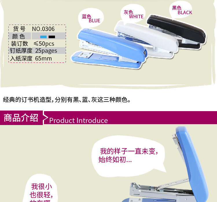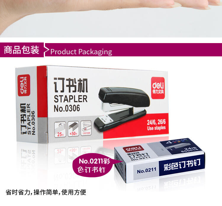델리 0306 스테이플러 중간 스테이플러 No.12 범용 문서 바인딩 사무실 스테이플러 스테이플러