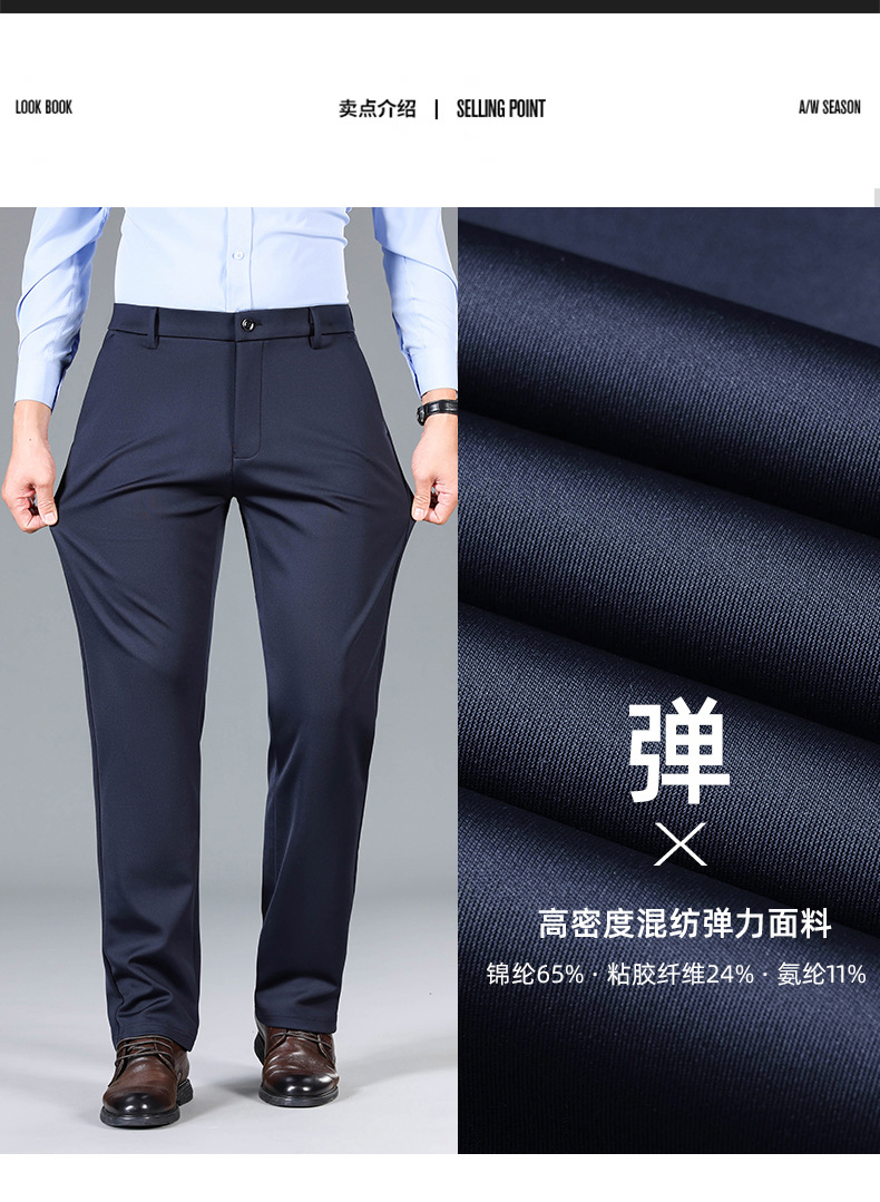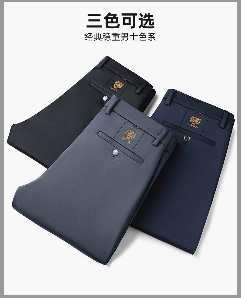 호랑이 머리 자수 가을 두꺼운 캐주얼 바지 남성 바지 4 방향 탄성 남성 바지 스트레이트 주름 방지 비즈니스 바지 루즈