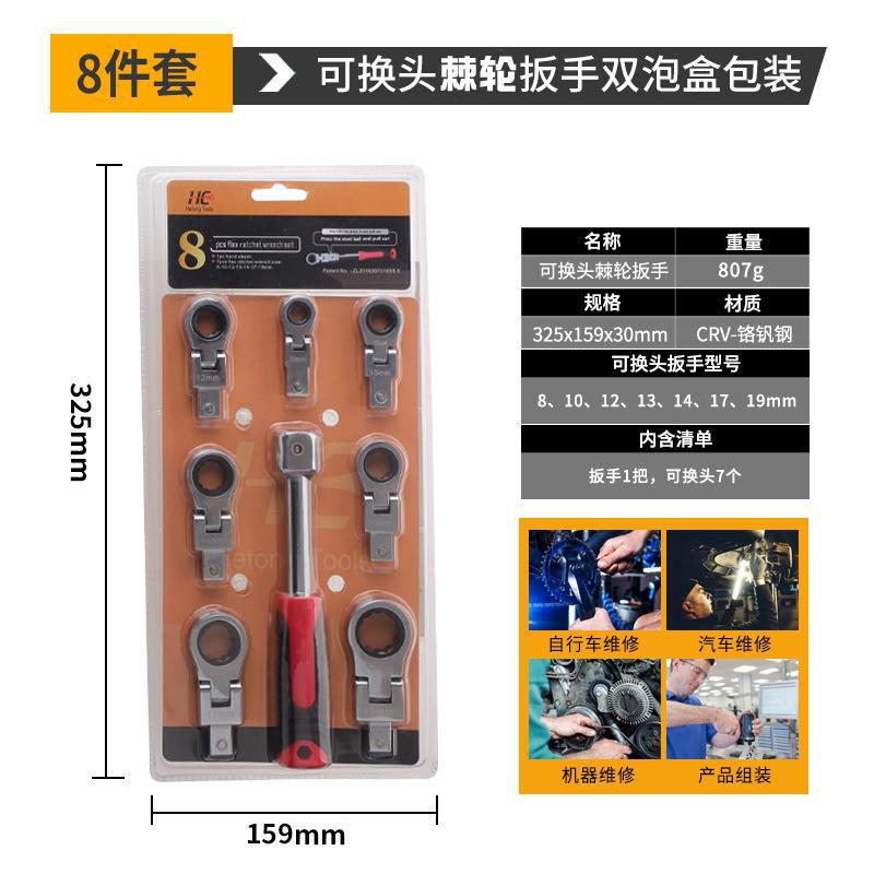 이동식 헤드 래칫 렌치 세트 헤드 렌치 180 ° 회전 렌치 공구 휴대용 8 종 세트