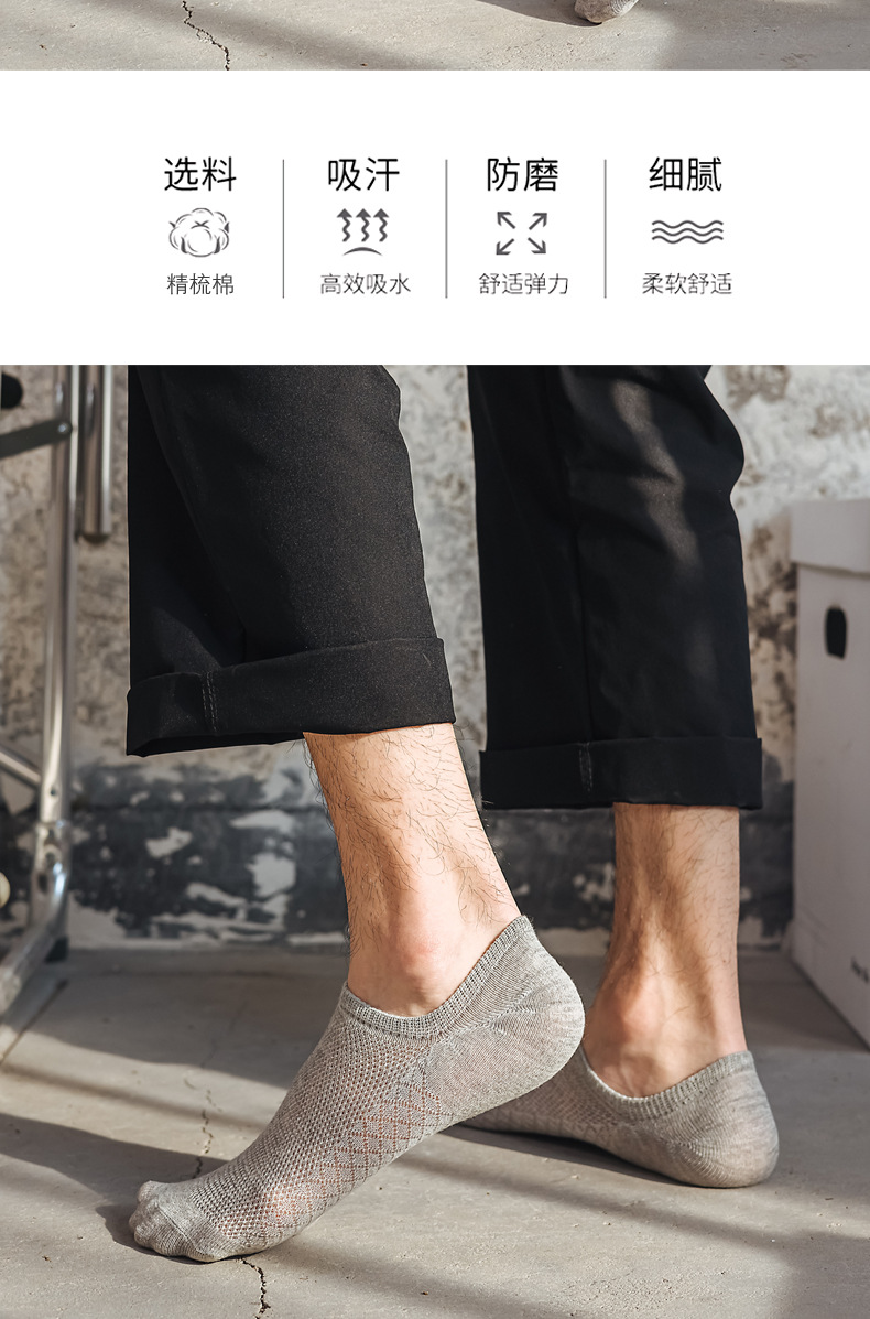 남성용 양말, 메쉬 소재, 얕은 입구, 단색, 히든 양말, 얇은 모델, 땀 흡수, 통기성, 남성용 짧은 양말, 도매, 뒷굽이 빠지지 않음스토어 가기