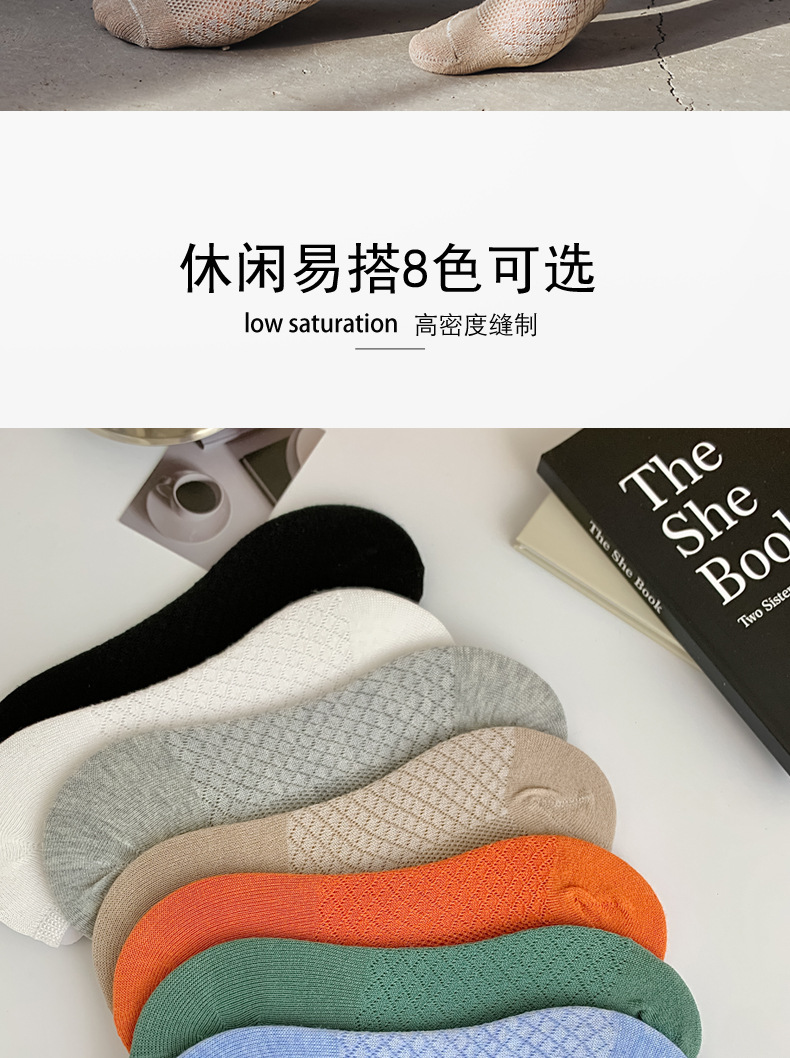 남성용 양말, 메쉬 소재, 얕은 입구, 단색, 히든 양말, 얇은 모델, 땀 흡수, 통기성, 남성용 짧은 양말, 도매, 뒷굽이 빠지지 않음
