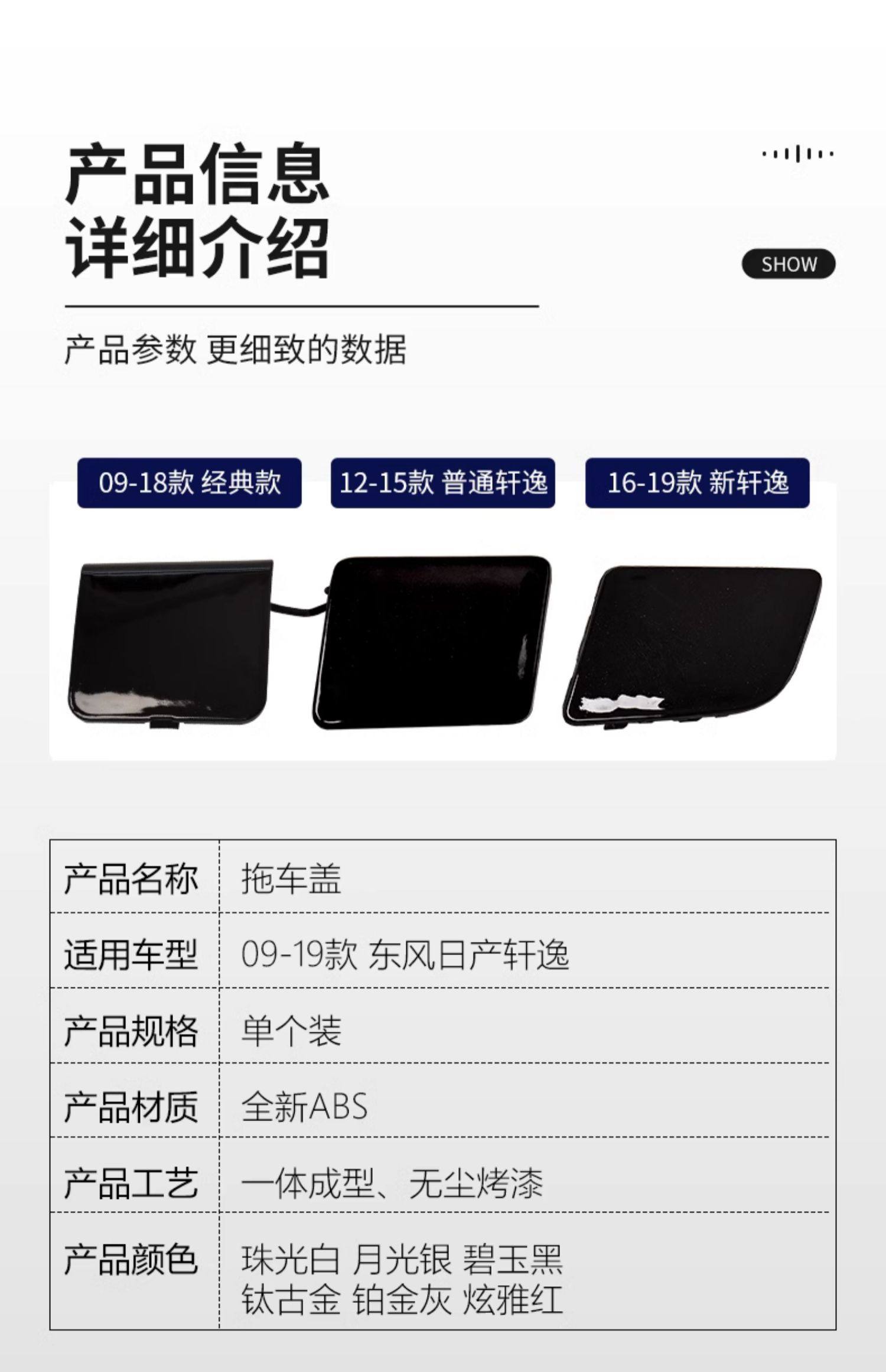09-18 클래식 Xuanyi 트레일러 커버 12-19 새로운 Xuanyi 앞 범퍼 트레일러 후크 트랙션 커버에 적합스토어 가기
