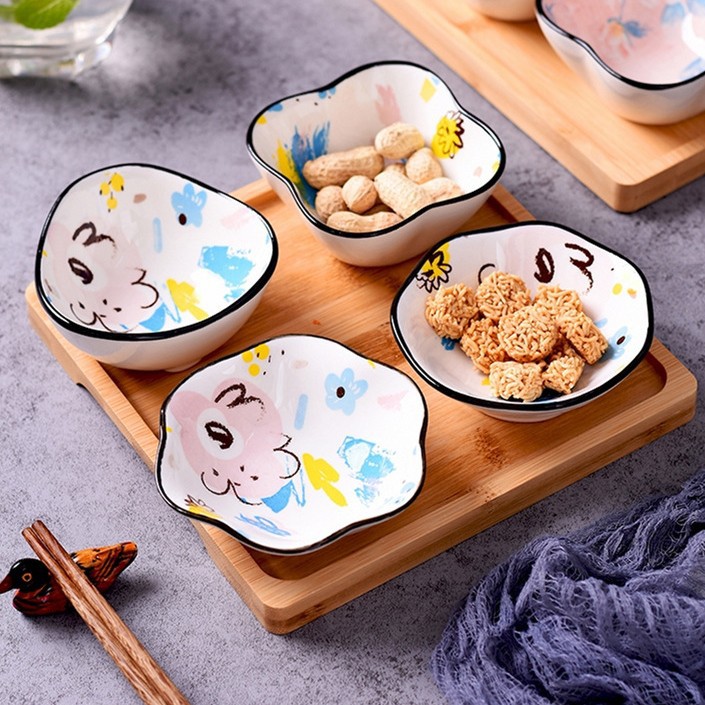 가정을위한 일본식 하 펭 소스와 식초 맛 요리 언더 글레이즈 컬러 호텔 레스토랑 딤섬 딥 양념 요리 땅콩 접시