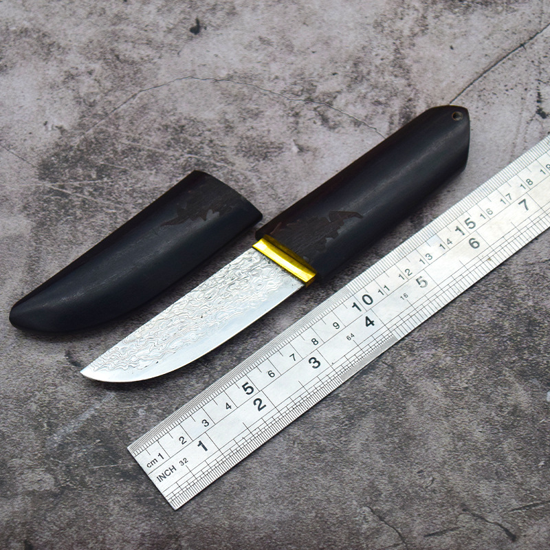 공장 직접 야외 칼 수제 다마스커스 강철 손 고기 칼 흑단 캠핑 휴대용 과일 칼