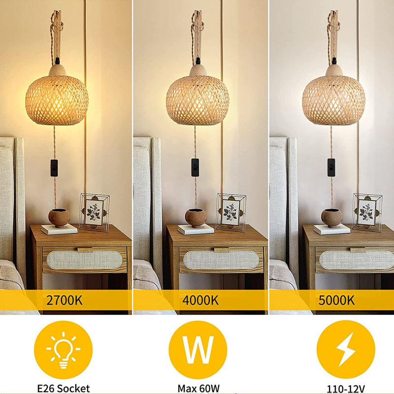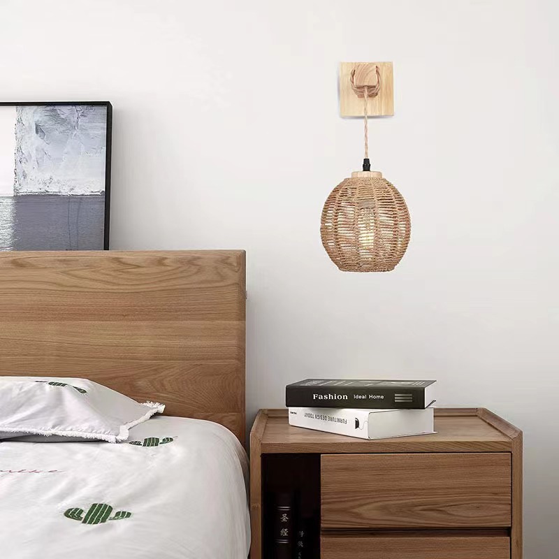 레트로 일본 대나무 머리맡 벽 램프 레스토랑 등나무 램프 목조 침실 농가 국가 실내 배경 벽 램프