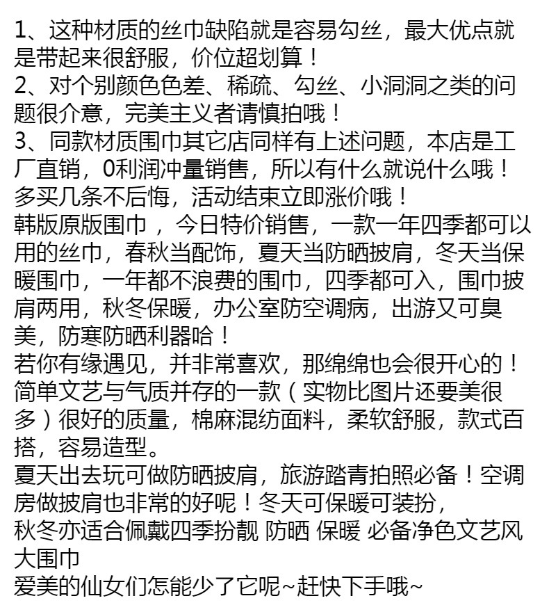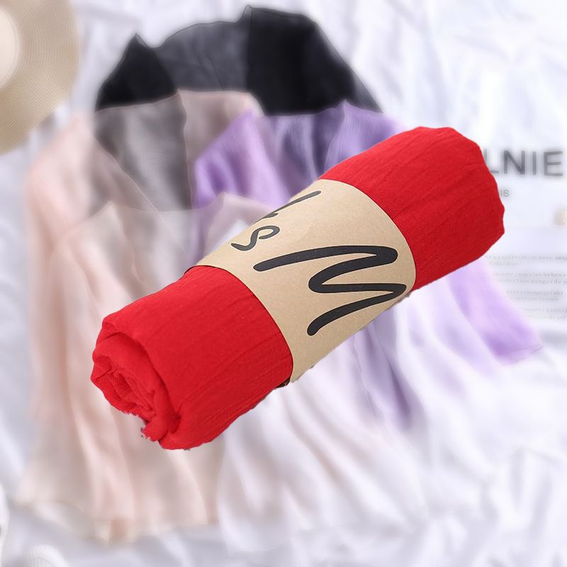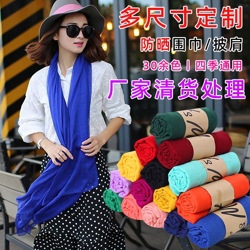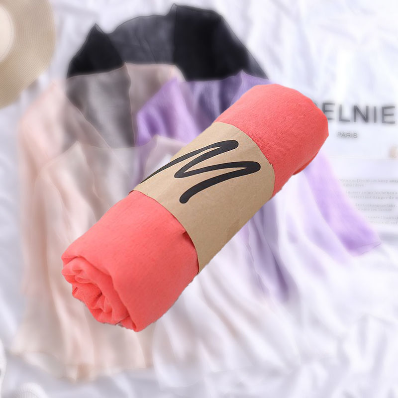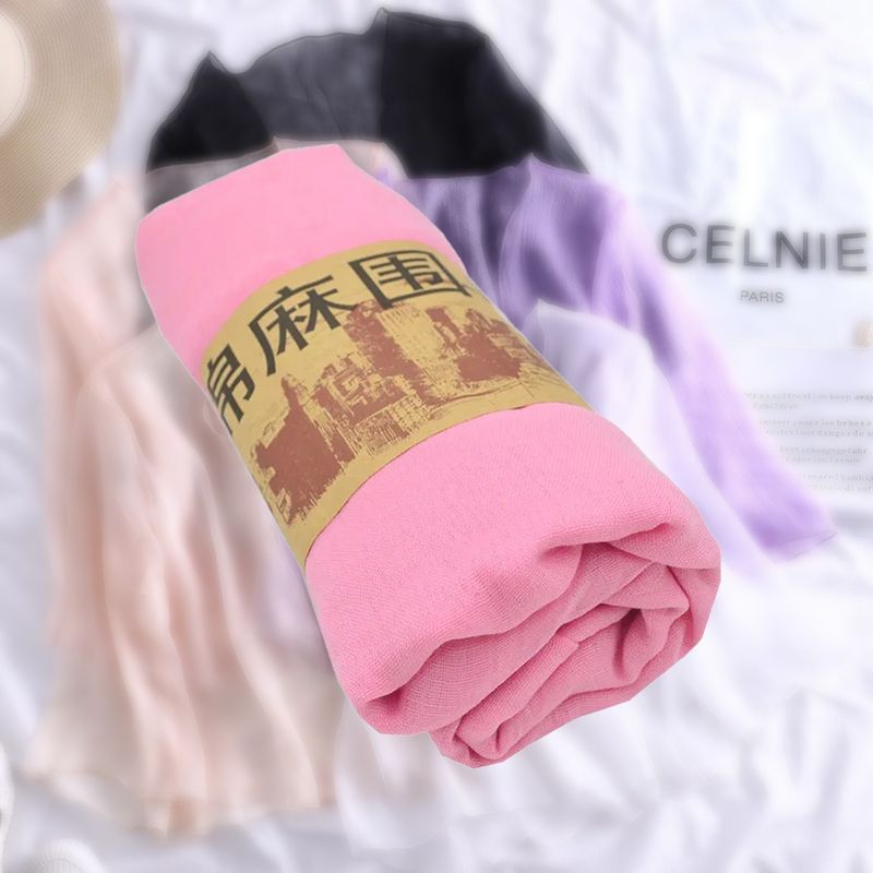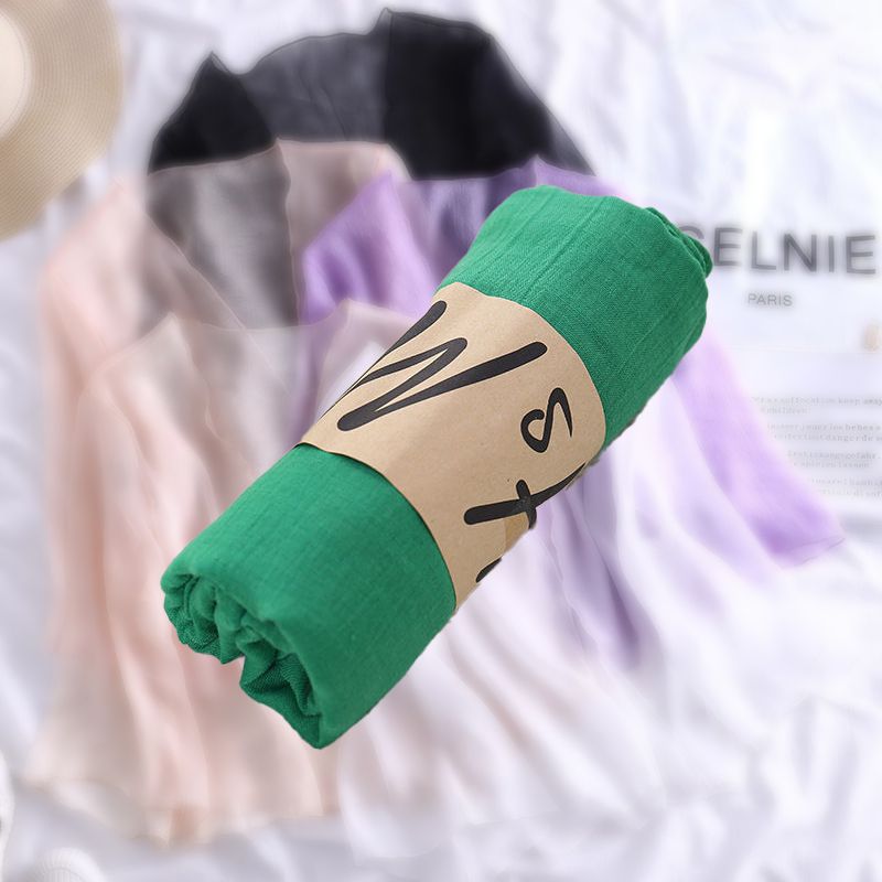 한국 슈퍼 롱 코튼과 린넨 스카프 숄 이중 사용 여성의 예술적 단색 린넨 실크 스카프 봄과 가을 패션 비치 타올 유행스토어 가기