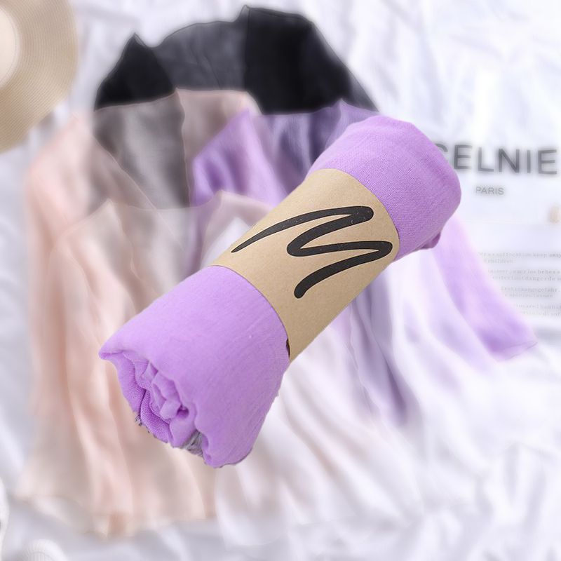 한국 슈퍼 롱 코튼과 린넨 스카프 숄 이중 사용 여성의 예술적 단색 린넨 실크 스카프 봄과 가을 패션 비치 타올 유행