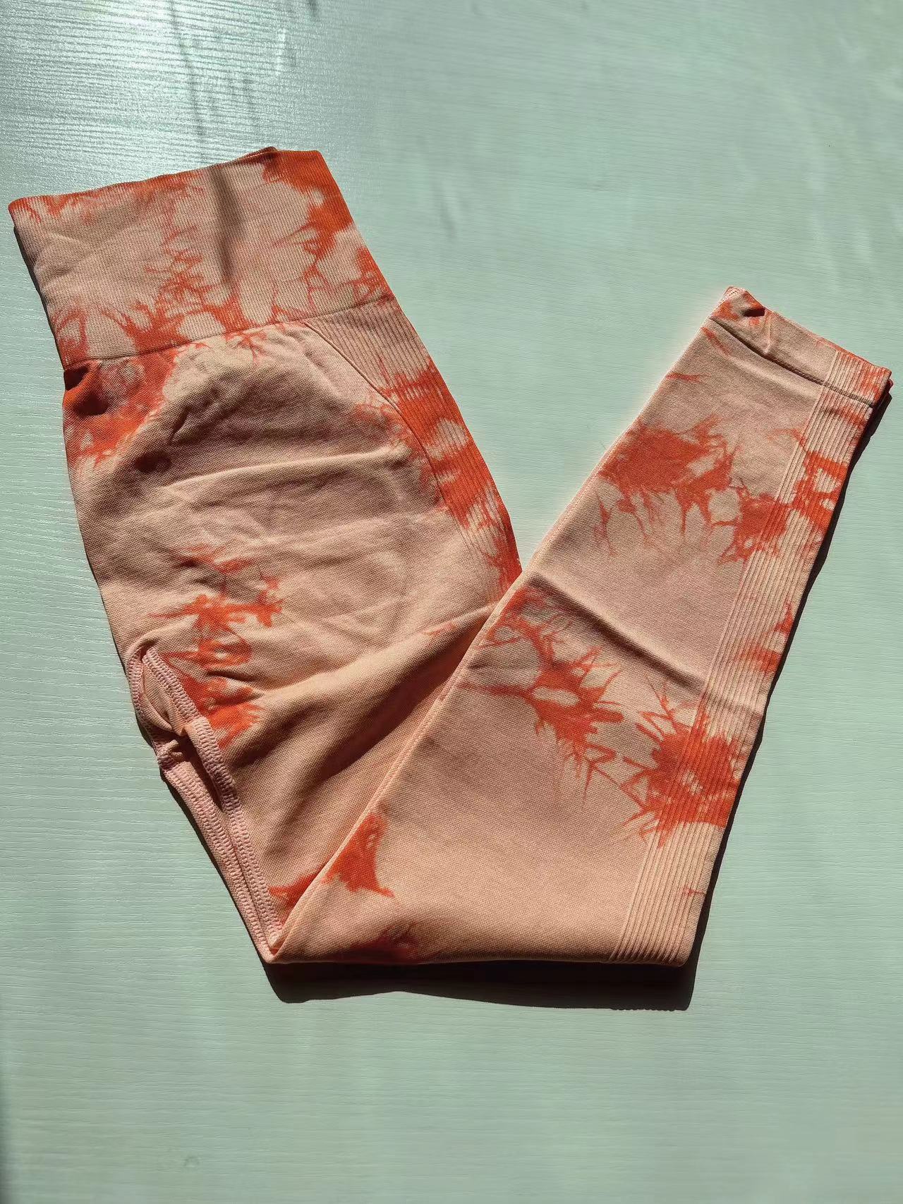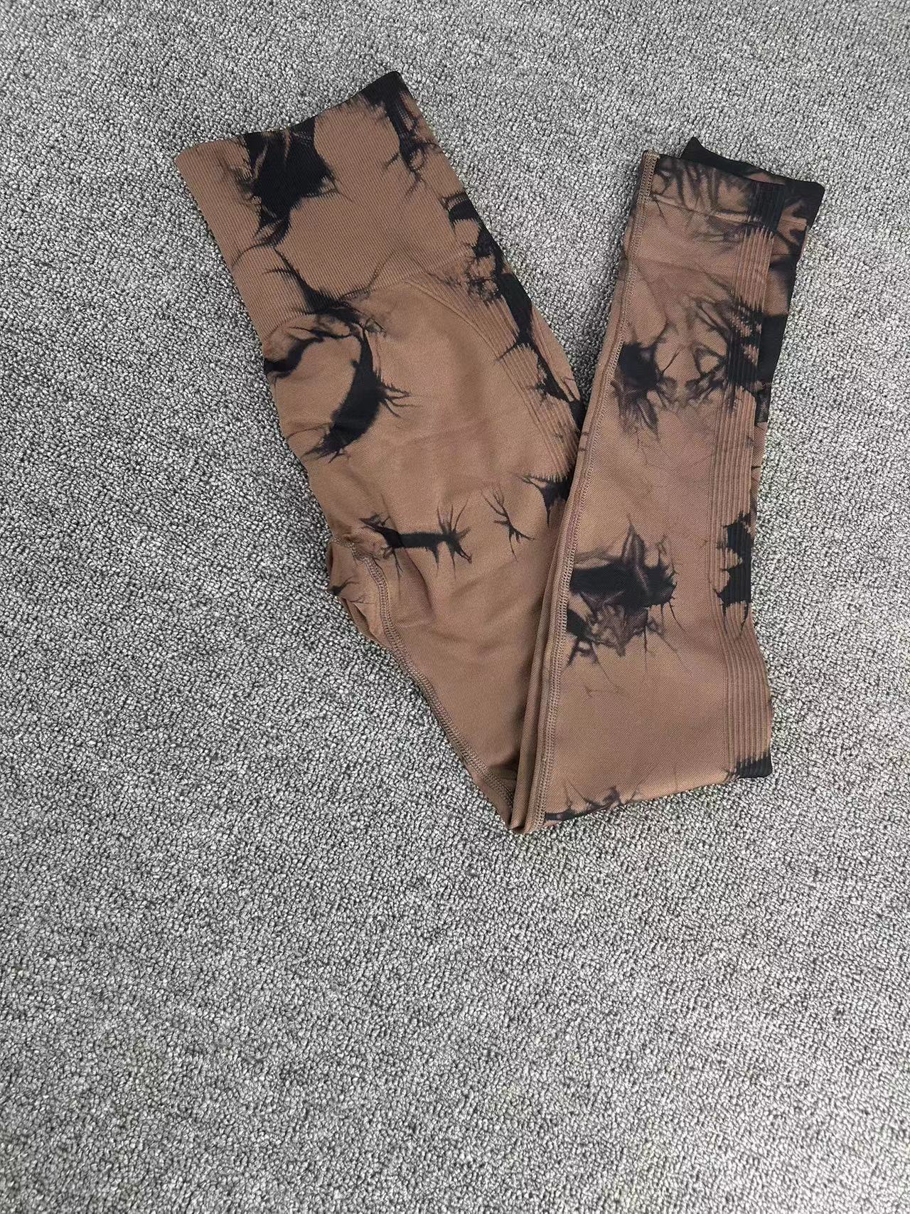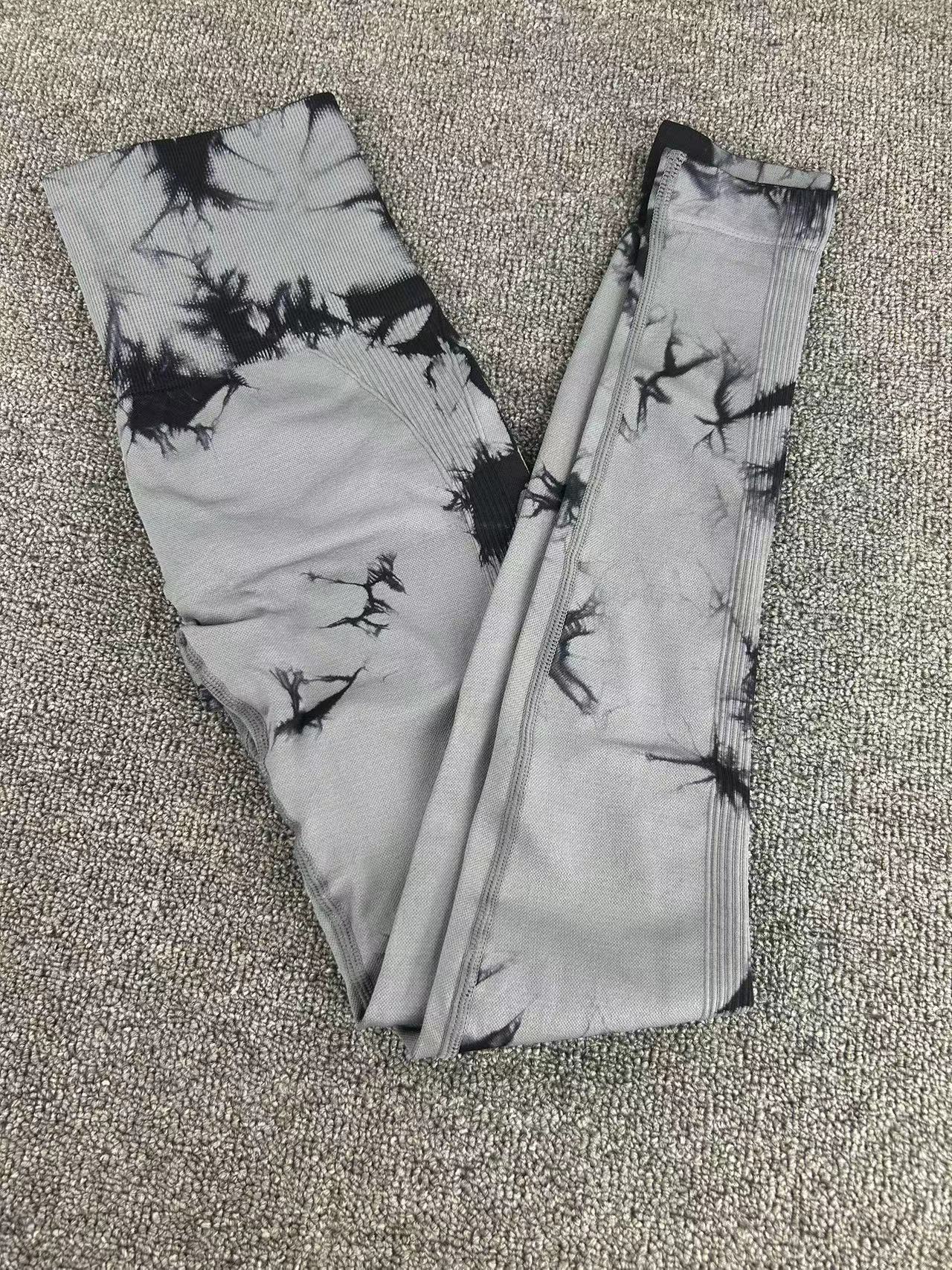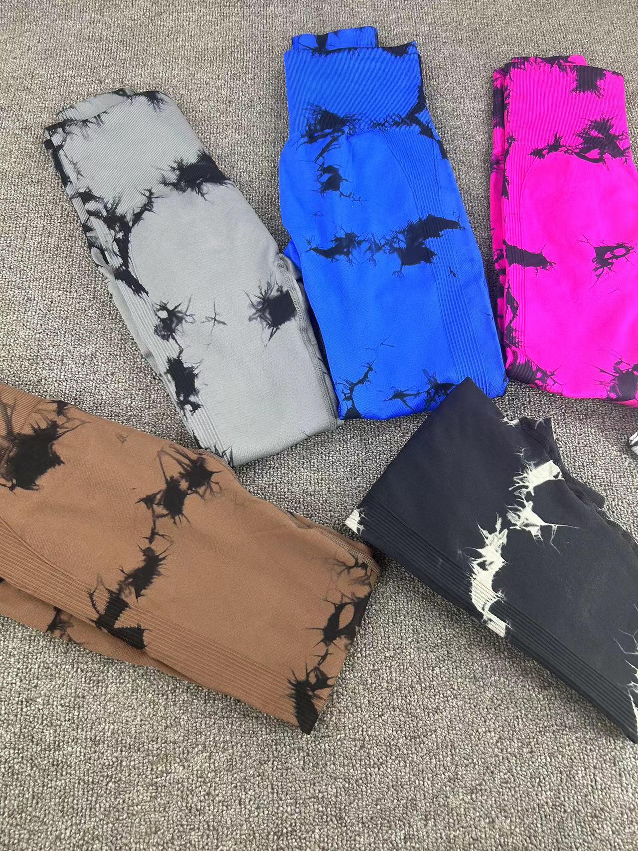 유럽과 미국의 타이-염료 요가 바지 넥타이-염료 피트니스 바지 여성 높은 허리 아름다운 엉덩이 스포츠 바지 복숭아 국경 요가 바지