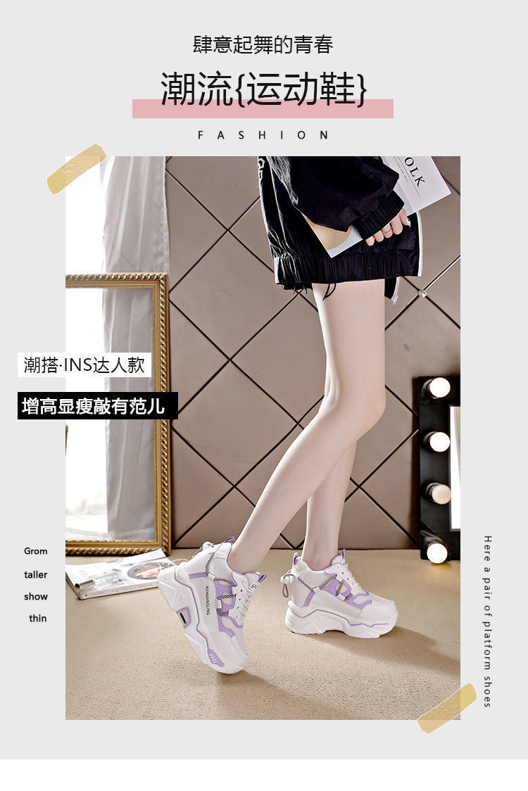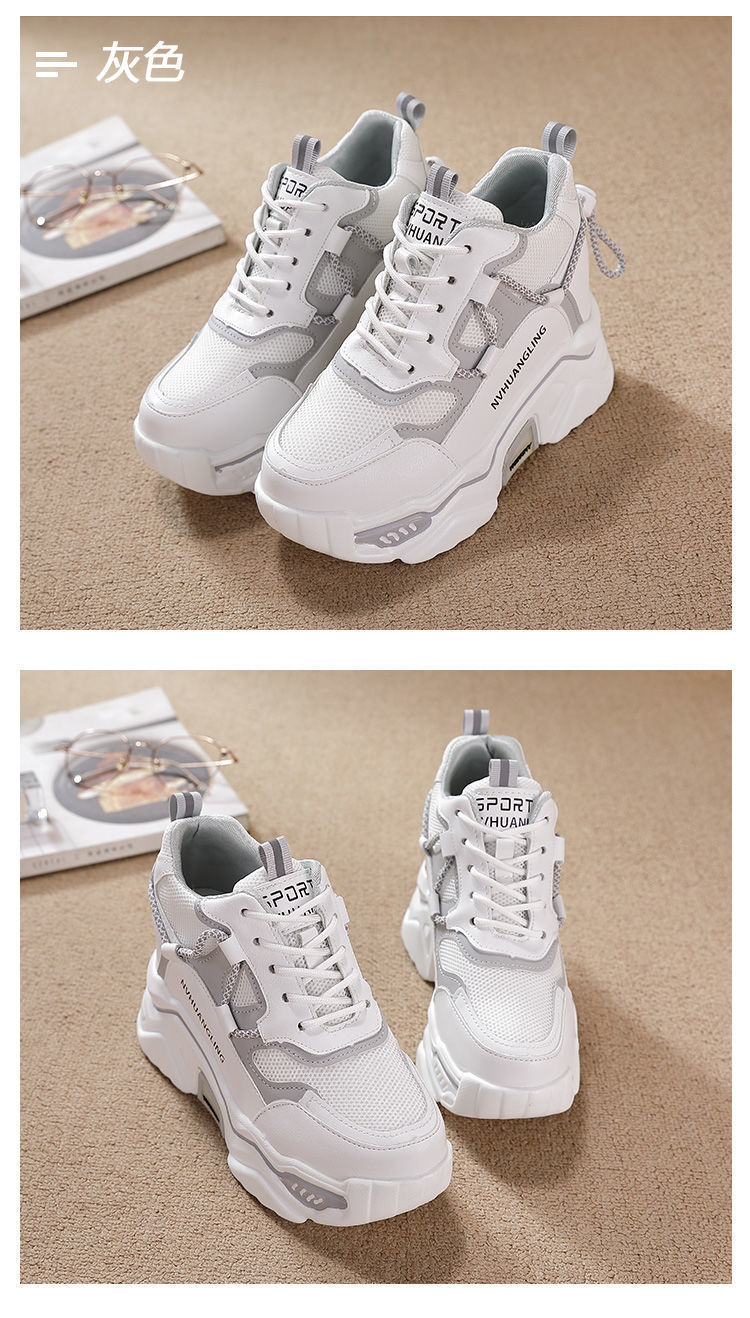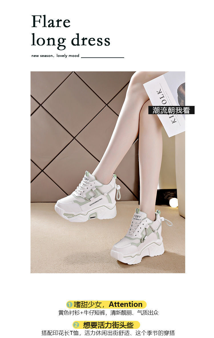 2023 봄 가을 에디션 유행 슬리밍 두꺼운 바닥 증가 캐주얼 스포츠 흰색 신발 여성용 슈퍼 하이힐 토레 신발스토어 가기