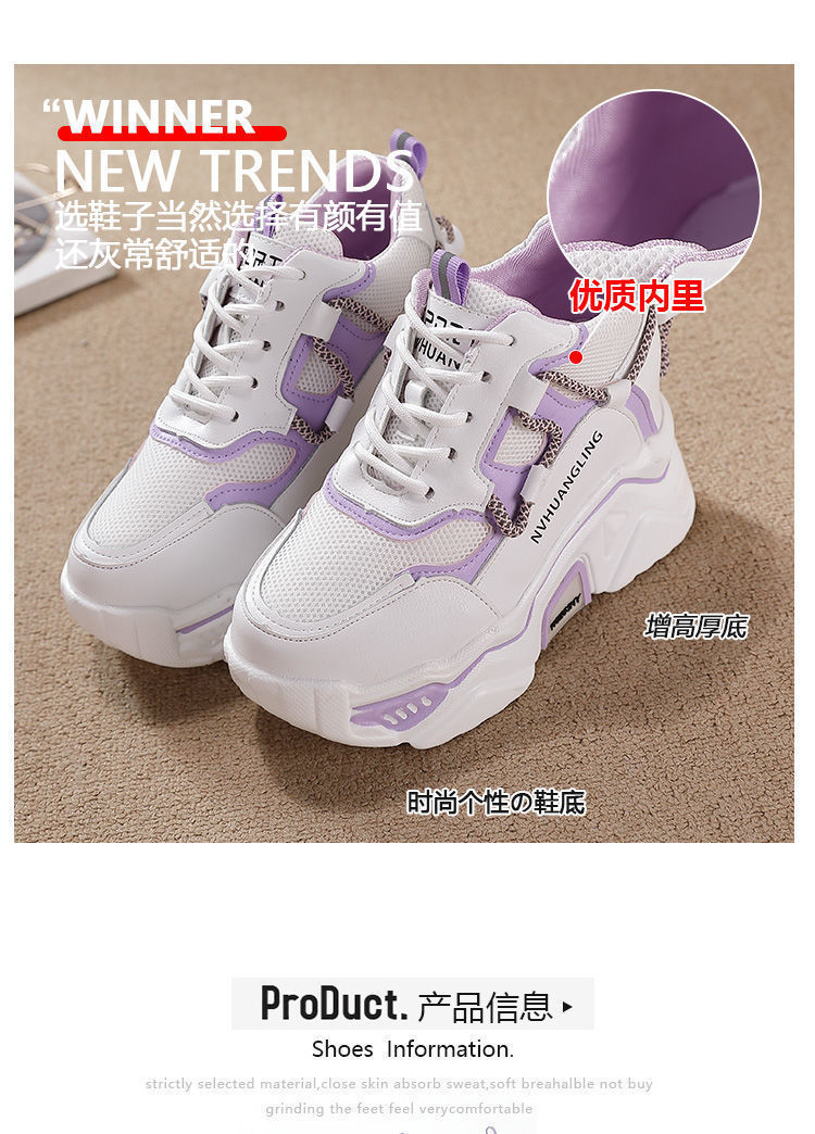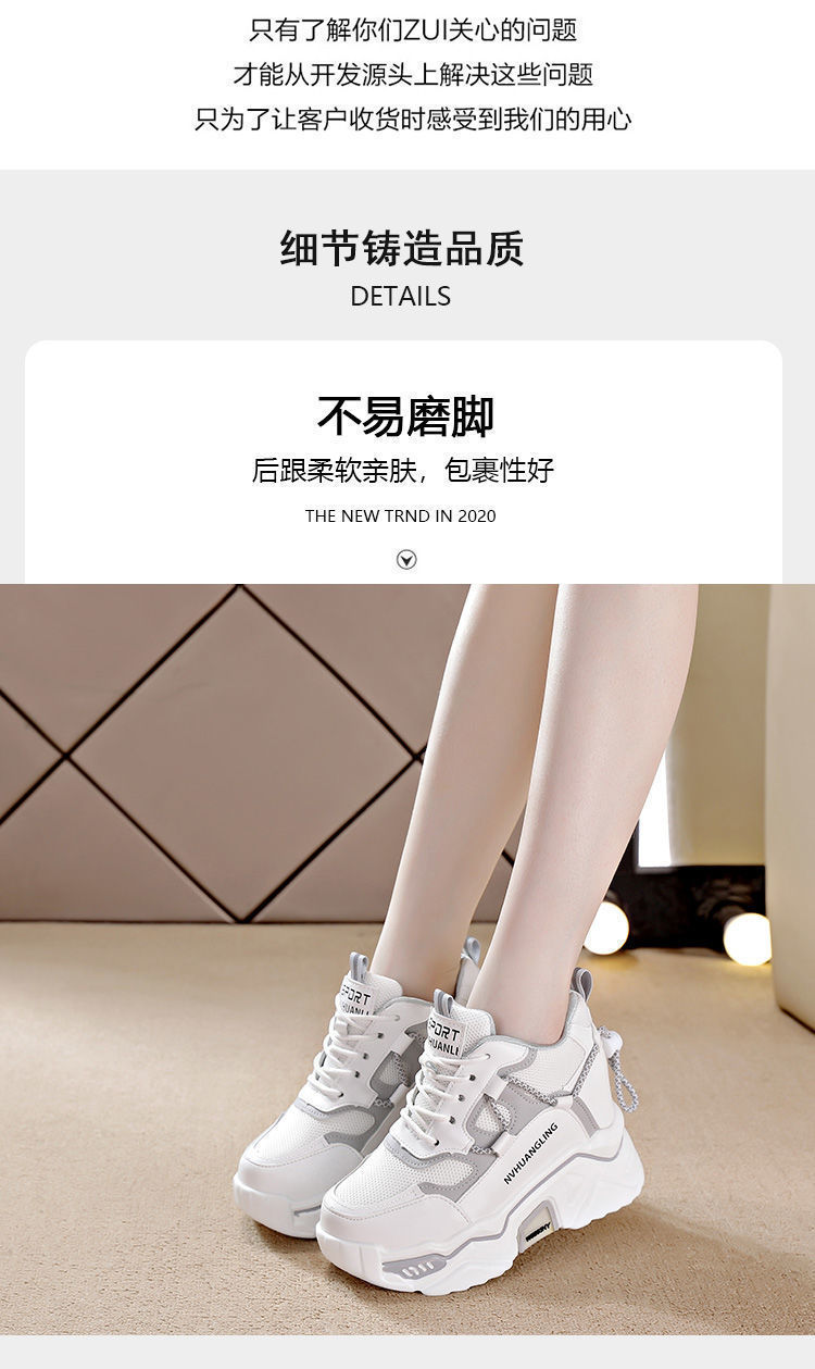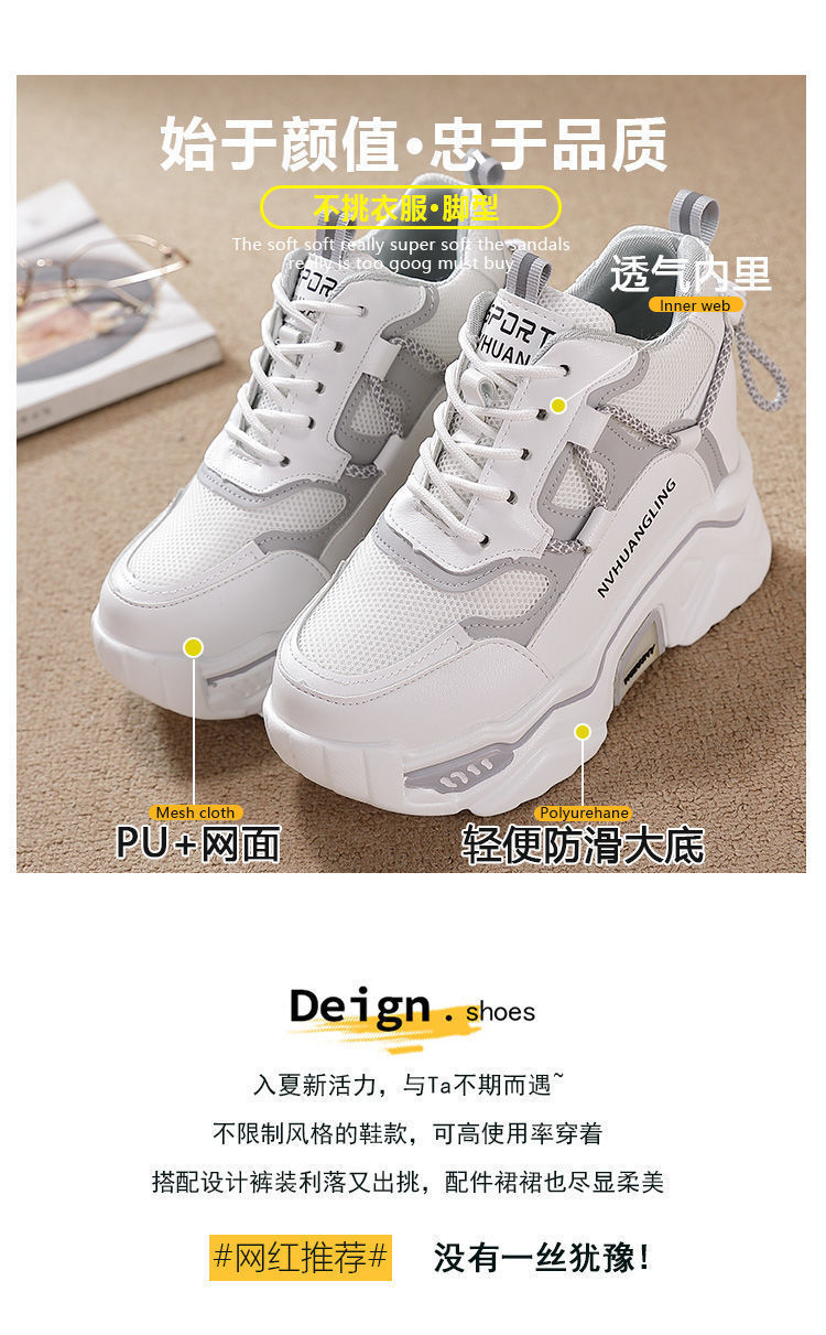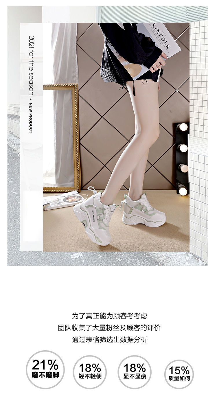 2023 봄 가을 에디션 유행 슬리밍 두꺼운 바닥 증가 캐주얼 스포츠 흰색 신발 여성용 슈퍼 하이힐 토레 신발스토어 가기