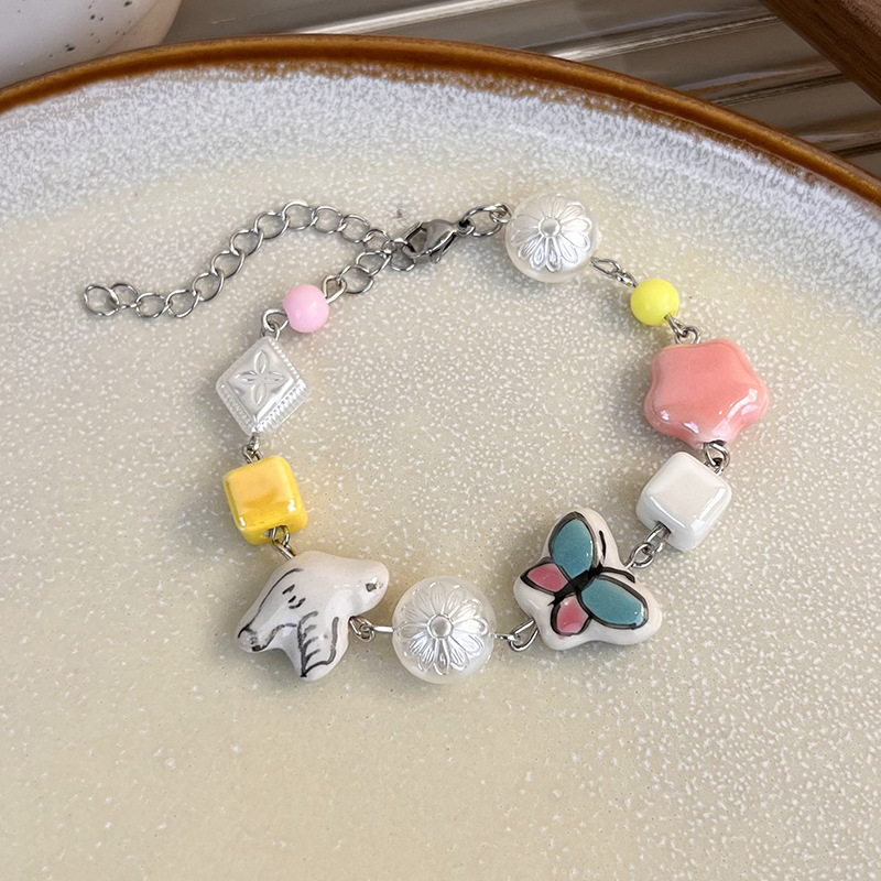만화 귀여운 컬러 세라믹 스티칭 나비 팔찌 여성 여름 틈새 디자인 여자 친구 사랑 웃는 얼굴 팔찌