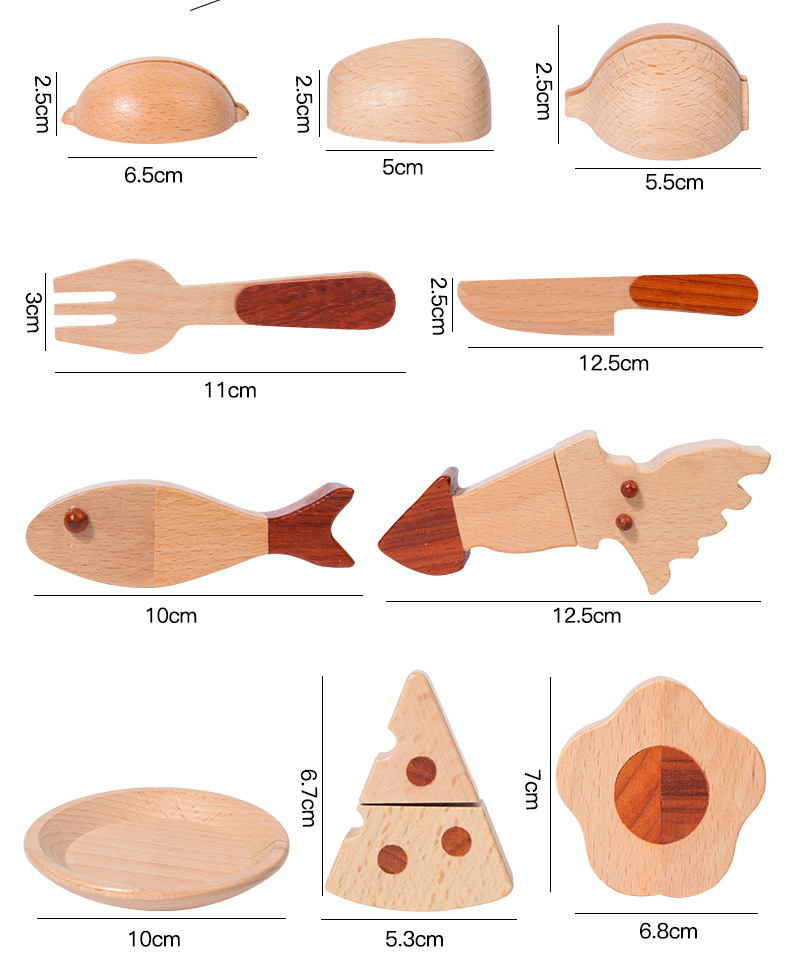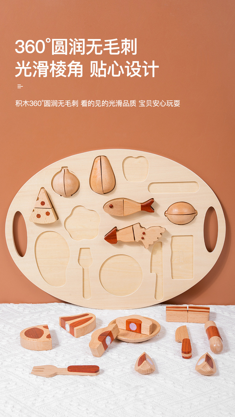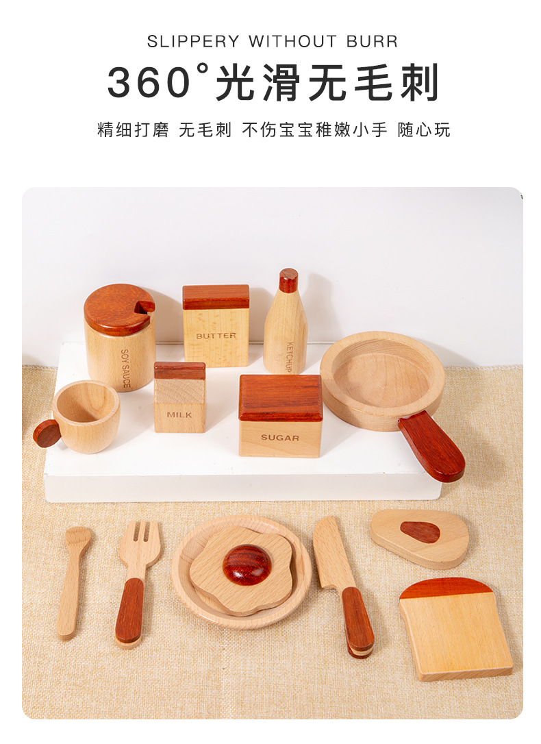 로그 음식 아침 식사 그룹 플레이 하우스 시뮬레이션 주방 용품 세트 스낵 트레이 수출 창조적 인 너도밤 나무 주방 장난감