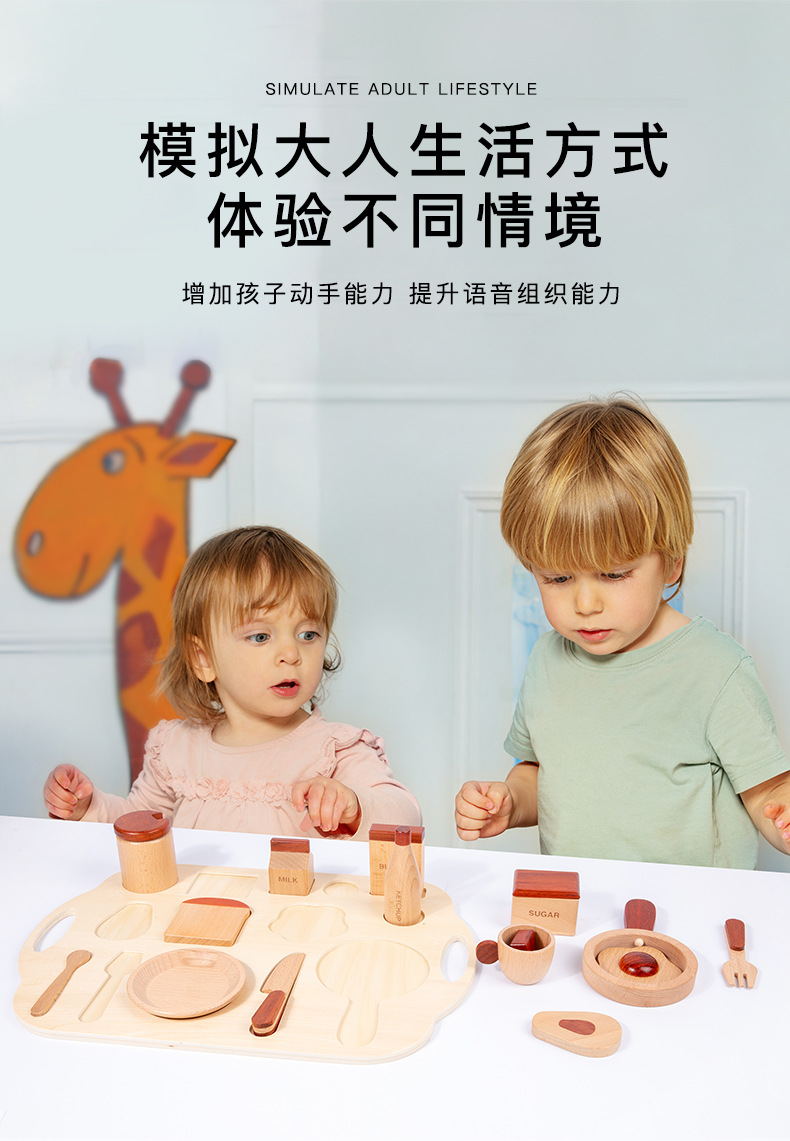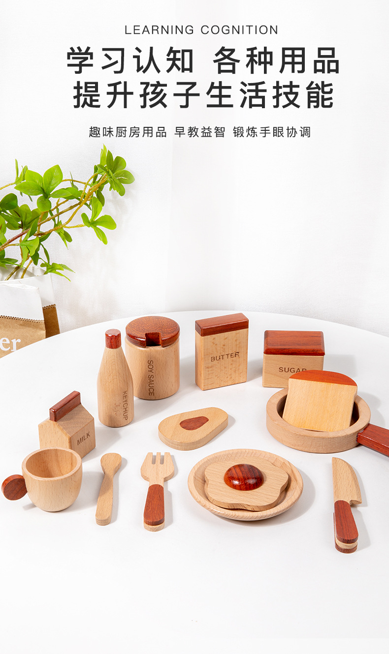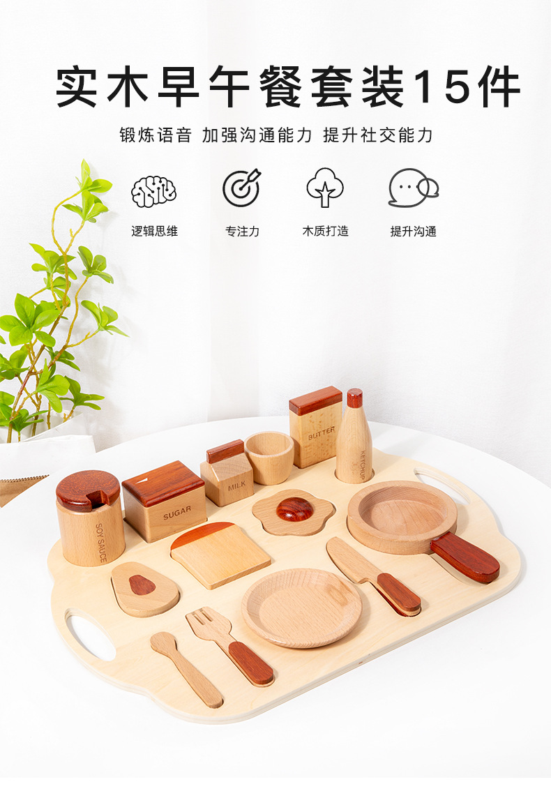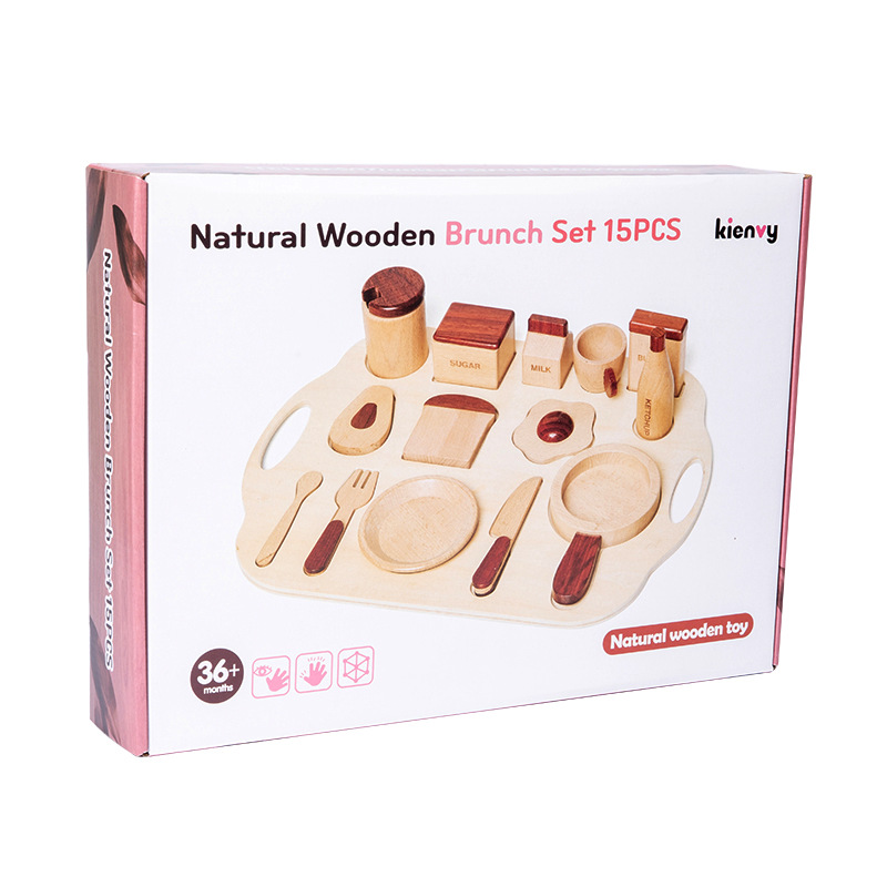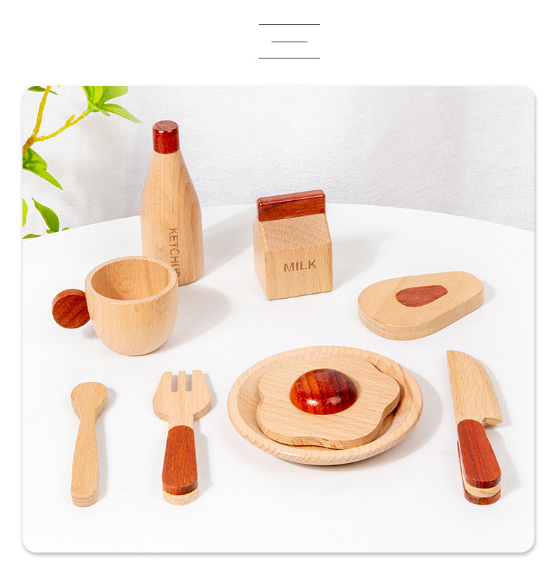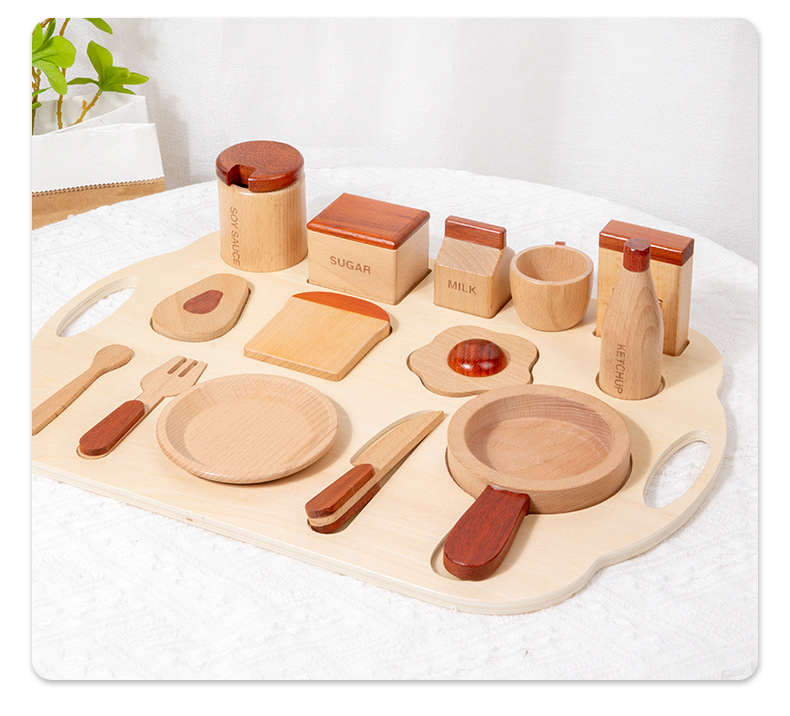 로그 음식 아침 식사 그룹 플레이 하우스 시뮬레이션 주방 용품 세트 스낵 트레이 수출 창조적 인 너도밤 나무 주방 장난감스토어 가기