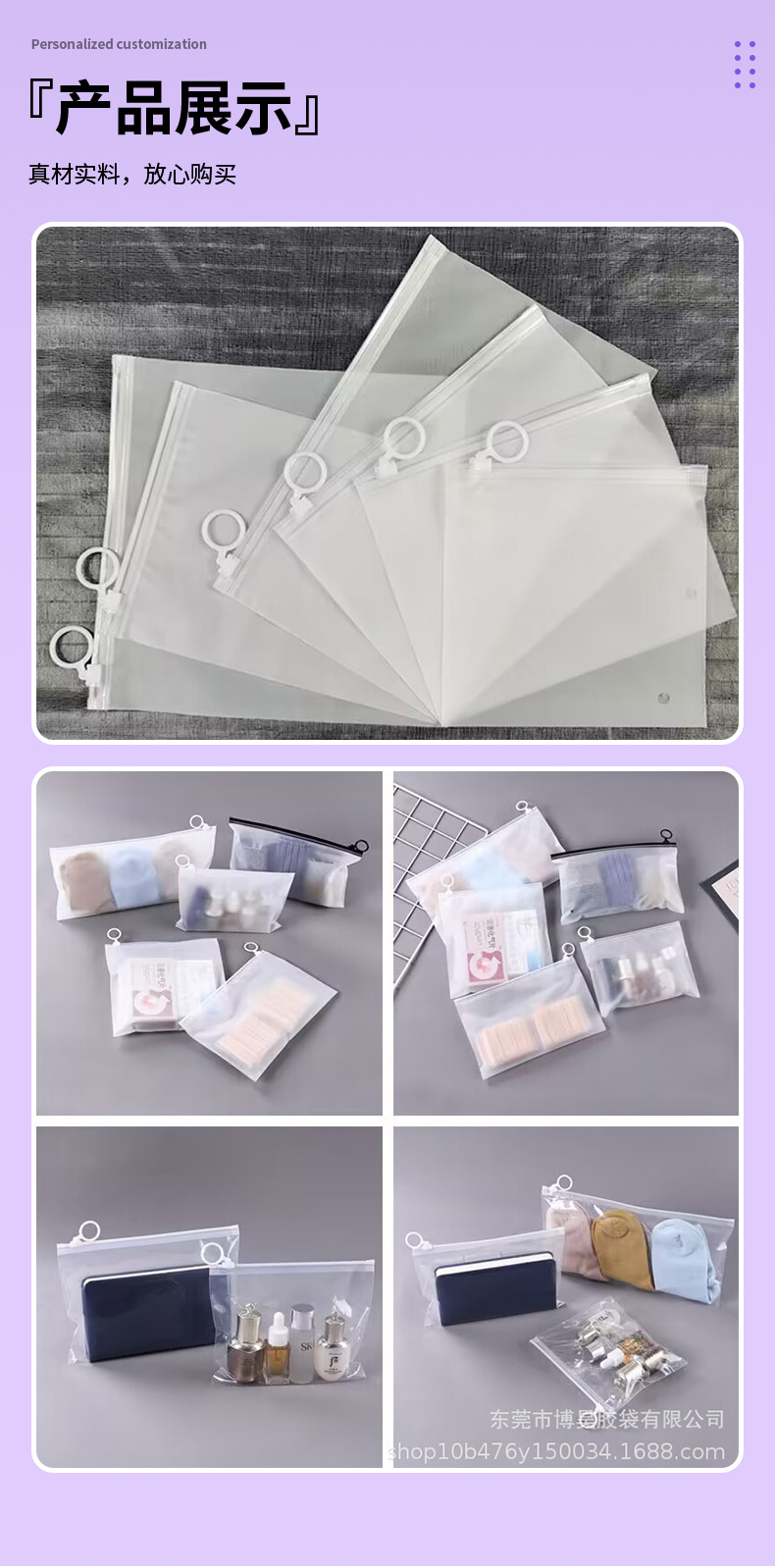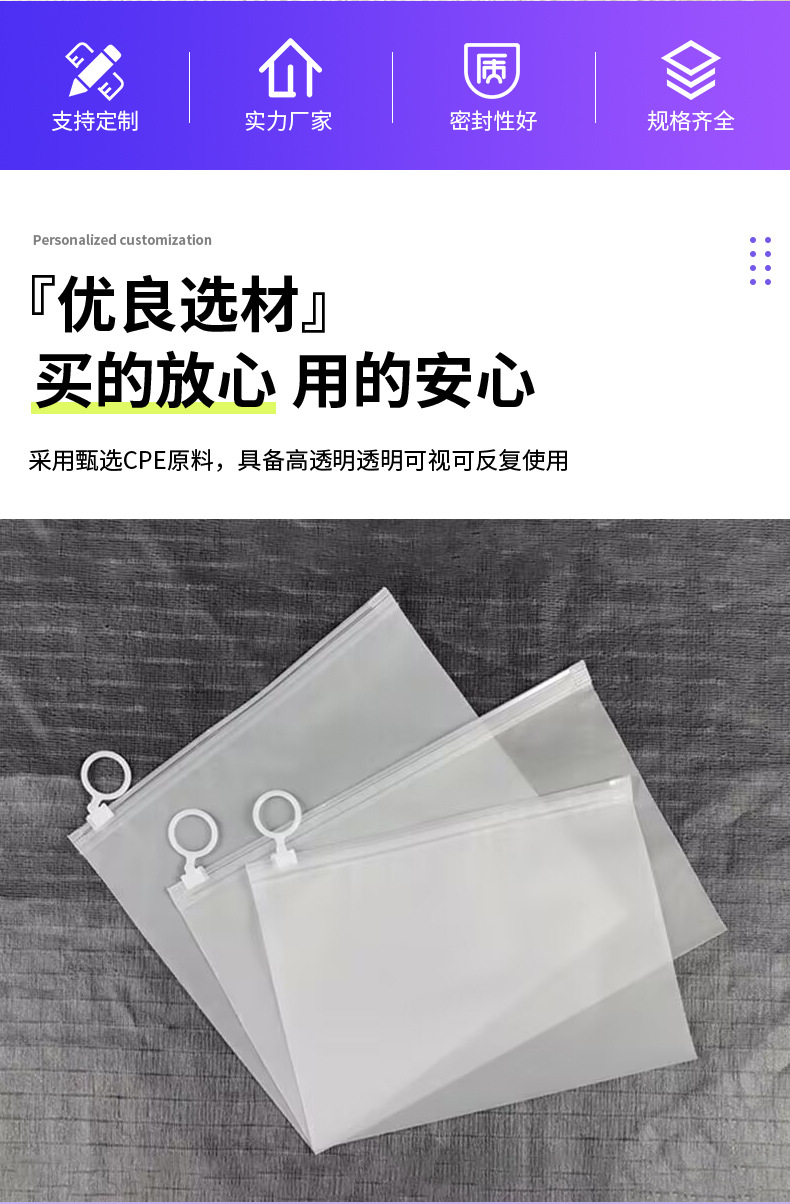 CPE 양면 프로스트 풀 링 백 속옷 포장 수건 모자 화장품 면화 하드웨어 문구 보관 가방스토어 가기