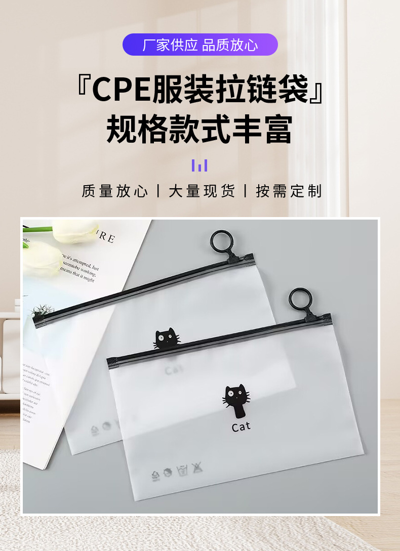 CPE 양면 프로스트 풀 링 백 속옷 포장 수건 모자 화장품 면화 하드웨어 문구 보관 가방