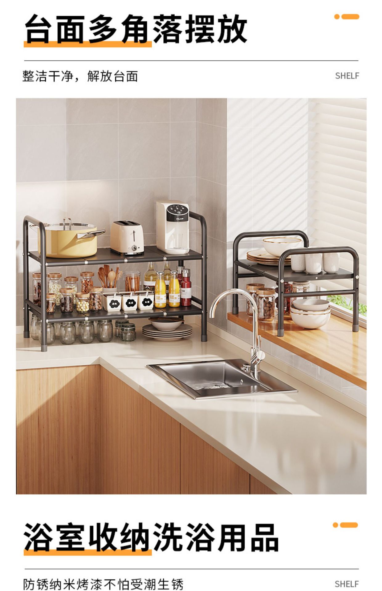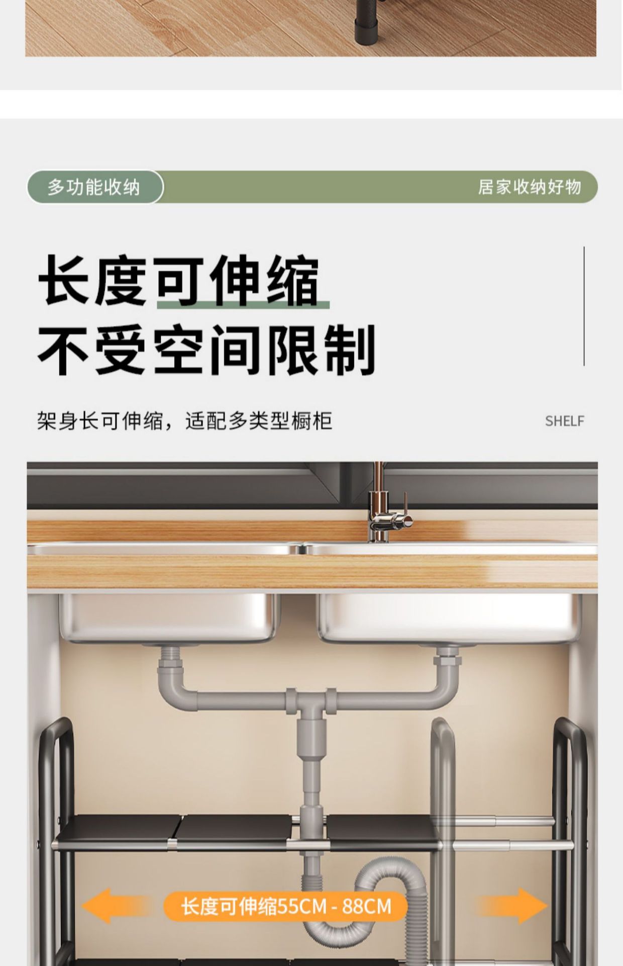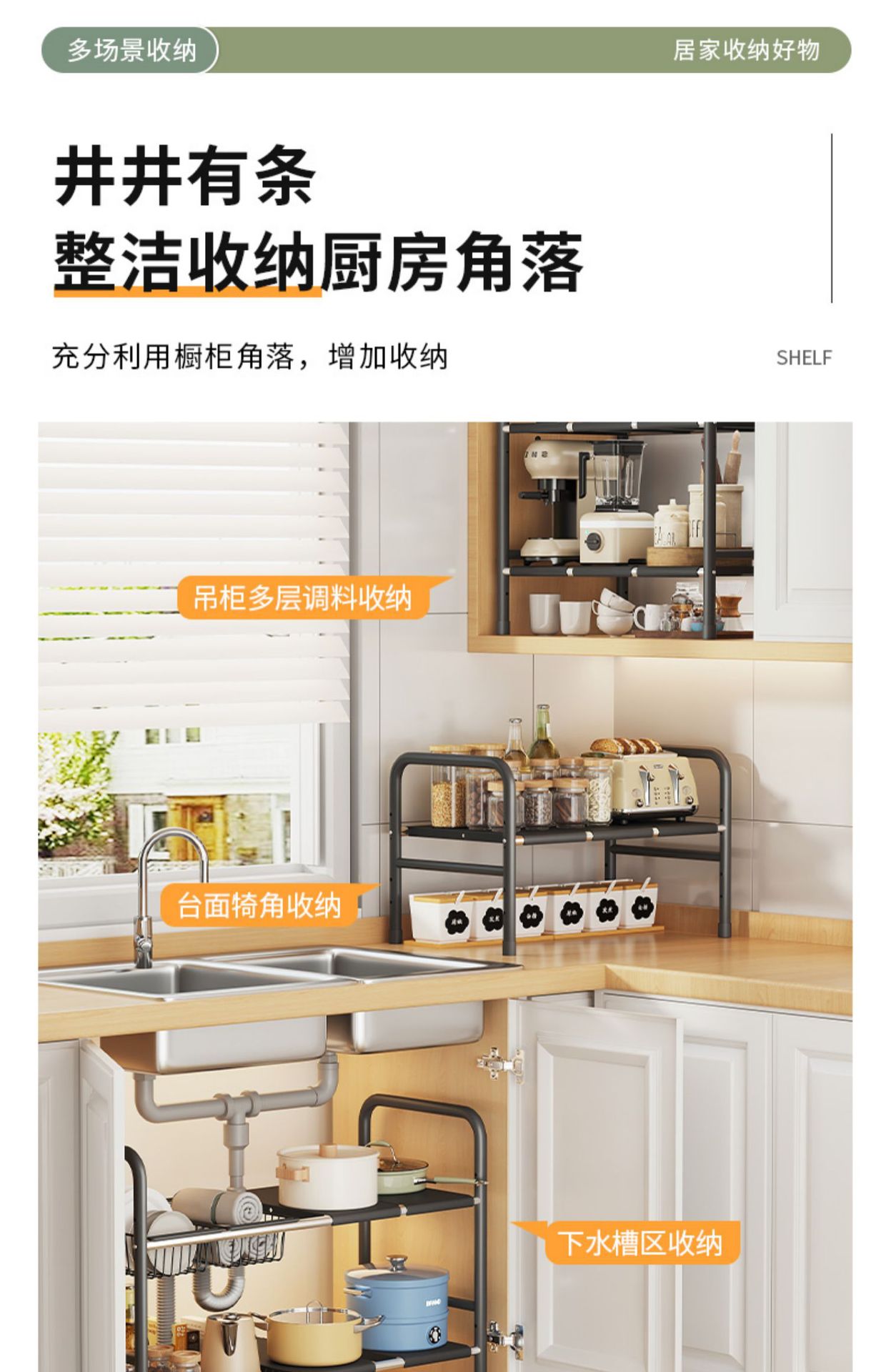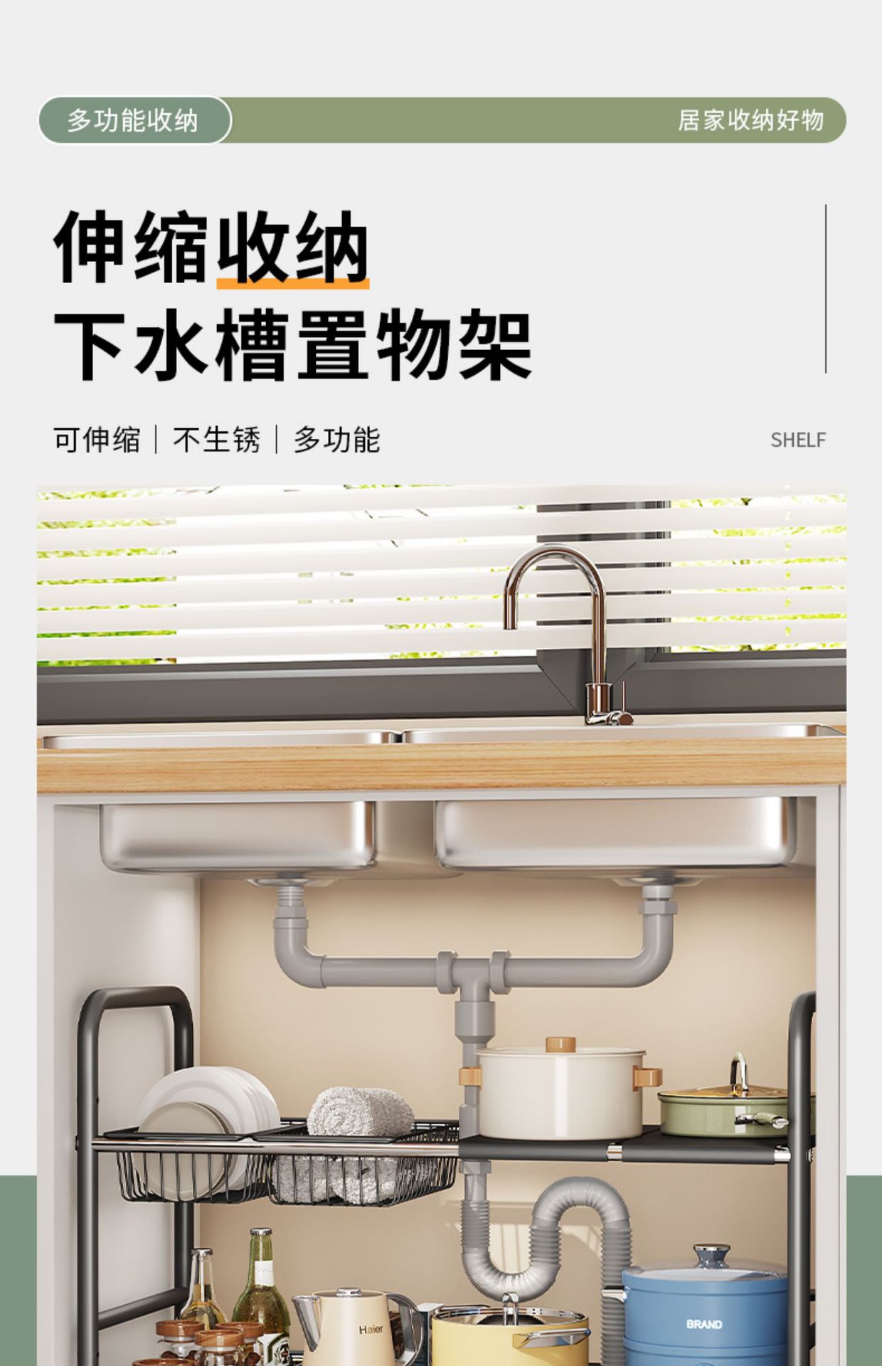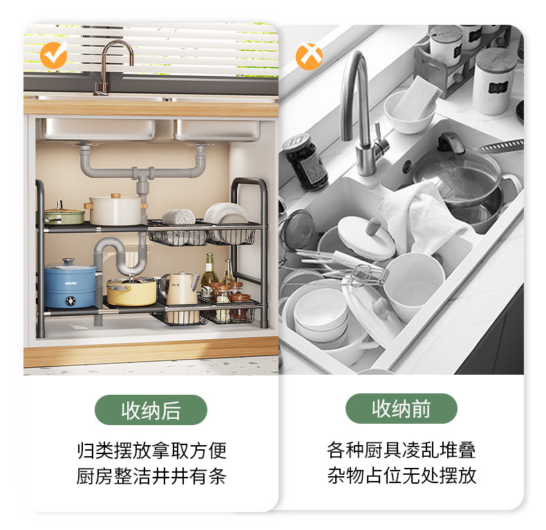 주방 개폐식 싱크대 보관 랙 캐비닛 레이어드 랙 냄비 랙 다기능 냄비 보관 랙 마무리 랙