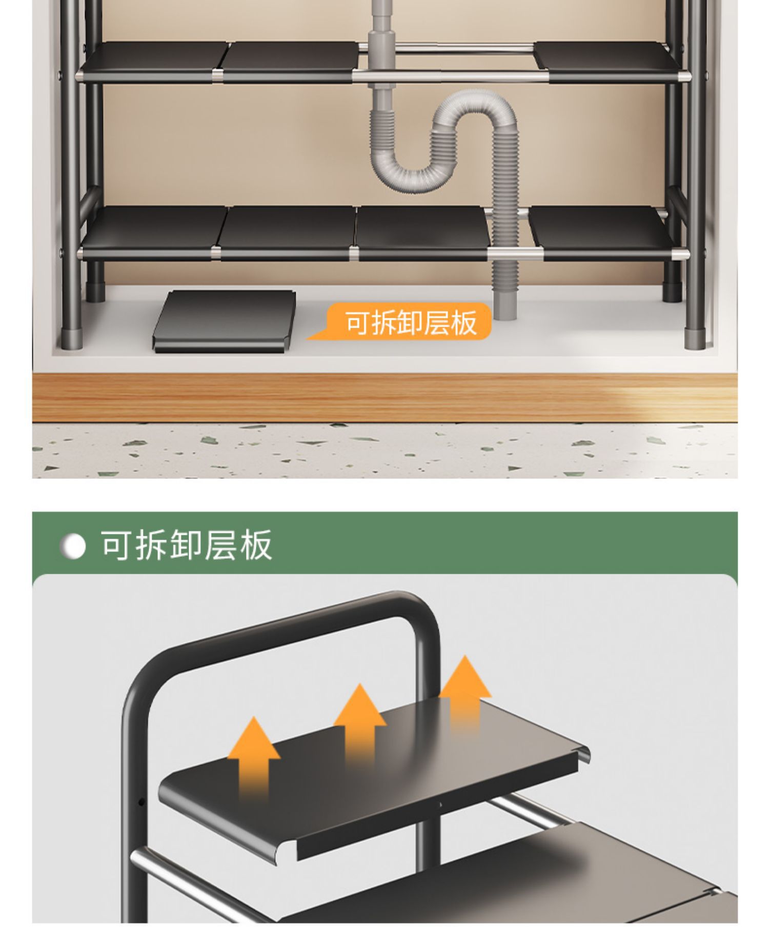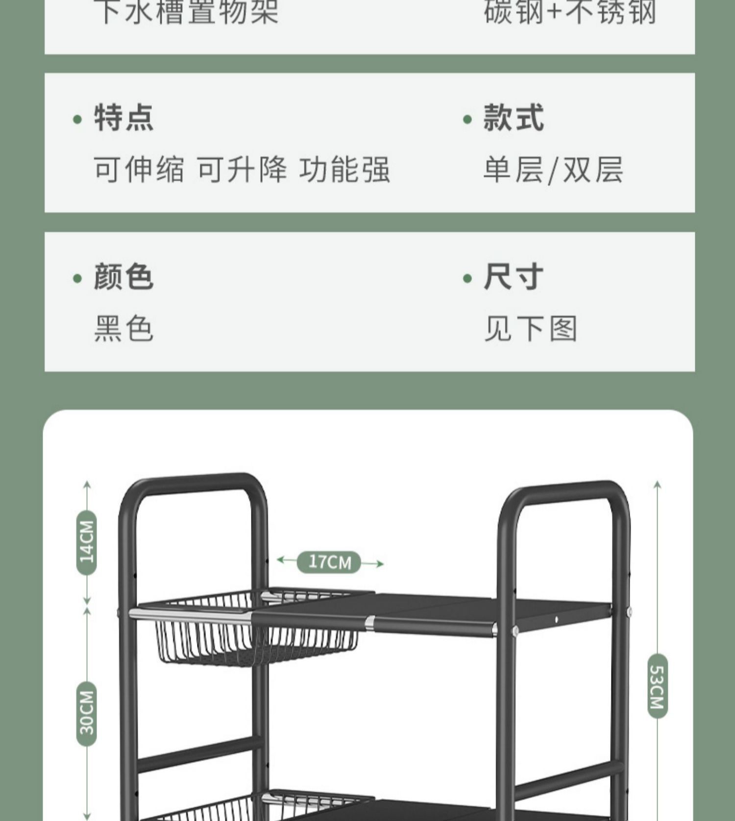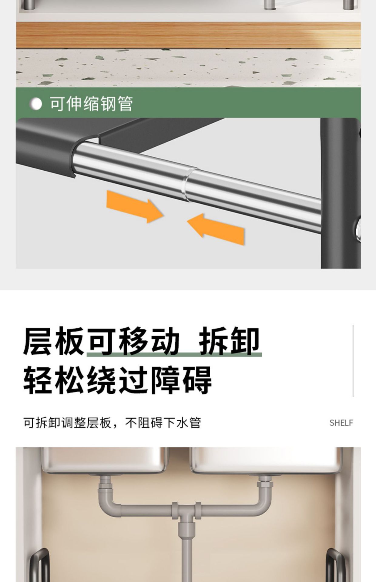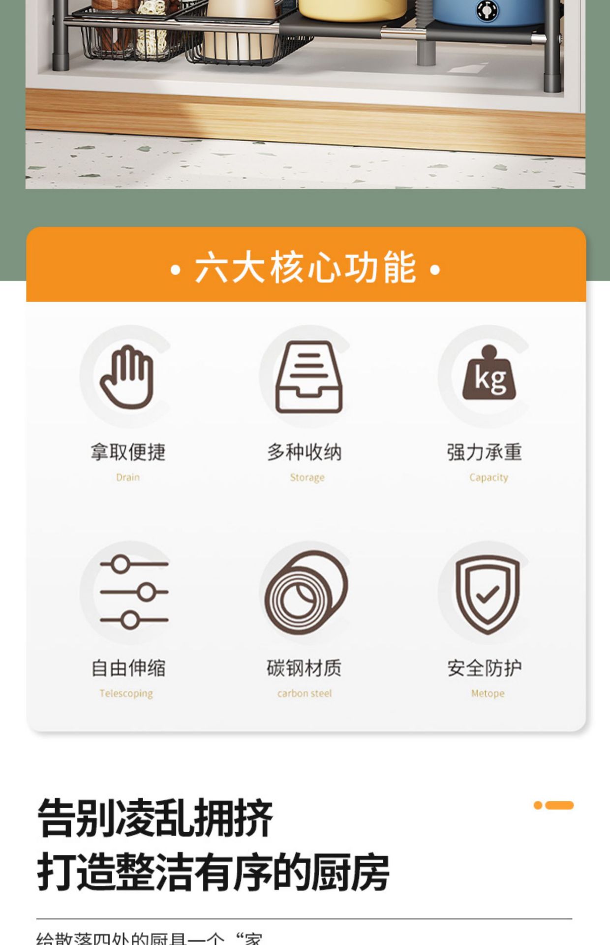 주방 개폐식 싱크대 보관 랙 캐비닛 레이어드 랙 냄비 랙 다기능 냄비 보관 랙 마무리 랙