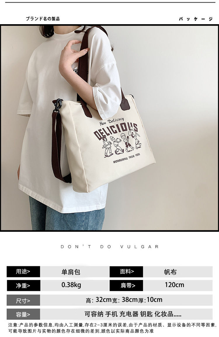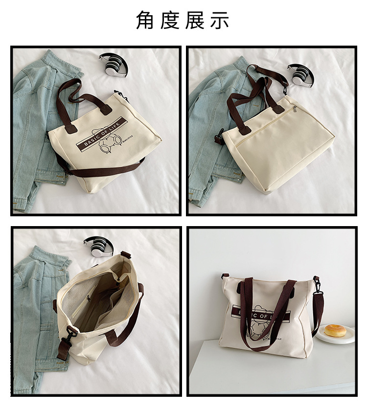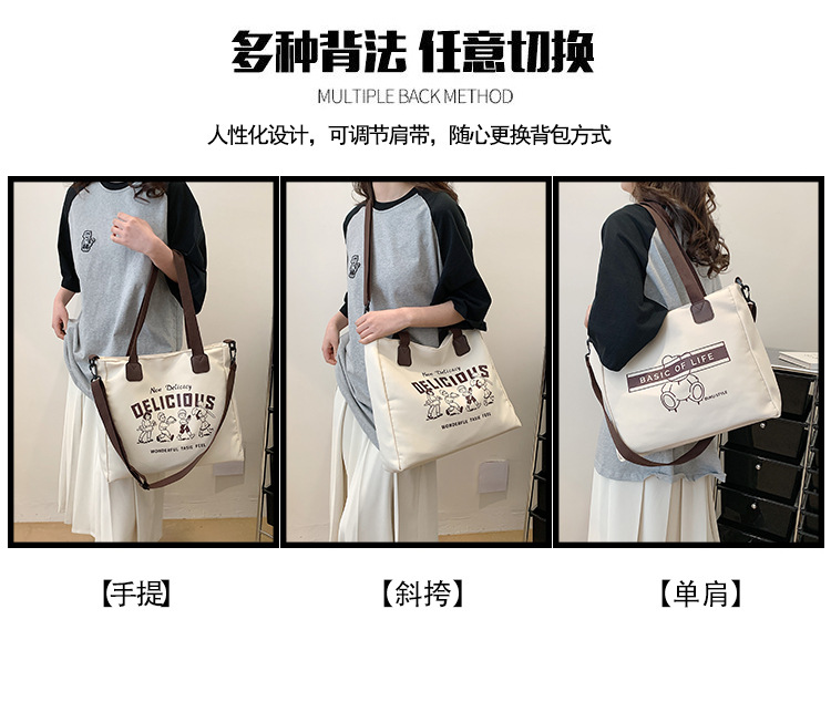 대용량 통근가방 여성용 2023 새로운 숄더 캔버스 백 모든 매치 크로스바디 토트백 대학생 수업 가방스토어 가기