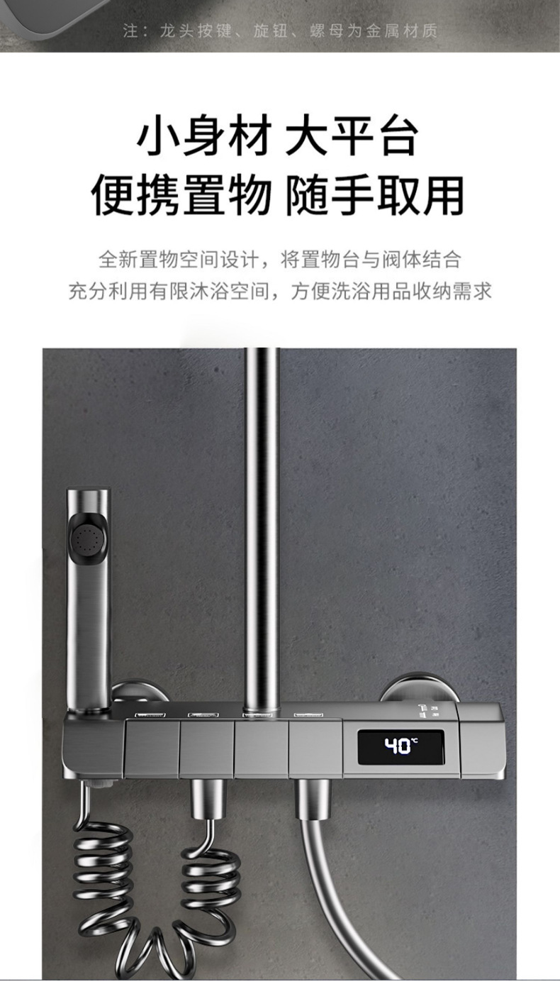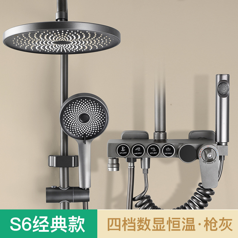 디지털 디스플레이 샤워 세트 건 회색 모든 구리 샤워 가정 일정한 온도 가압 샤워 헤드 욕실 샤워 샤워 샤워스토어 가기
