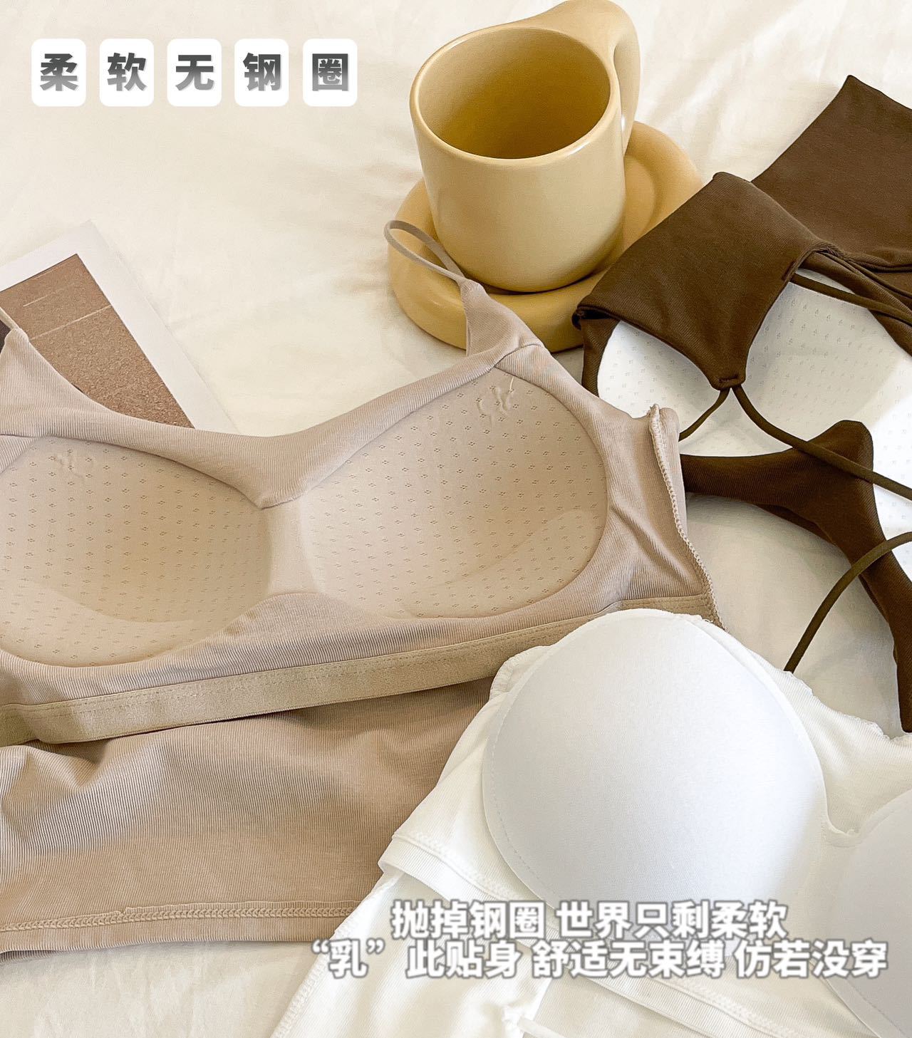 여름 섹시한 중공 아름다운 등 슬리밍 캐미솔 여성용 원피스 탑 가슴 패드 끈이없는 탑 경량 베이스 셔츠 트렌디스토어 가기
