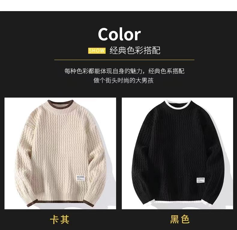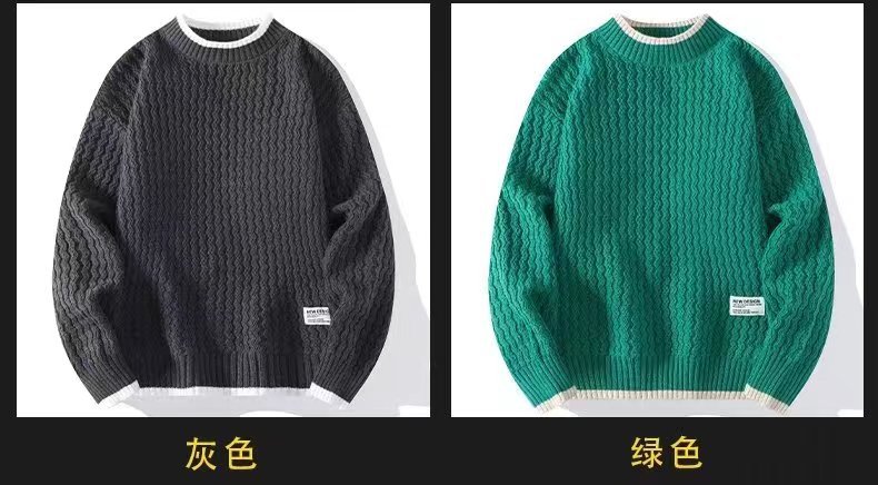 크루넥 스웨터 남자의 가을과 겨울 게으른 스타일 수제 니트 베이스 셔츠 십대 유행 가짜 투피스 내부 스웨터스토어 가기