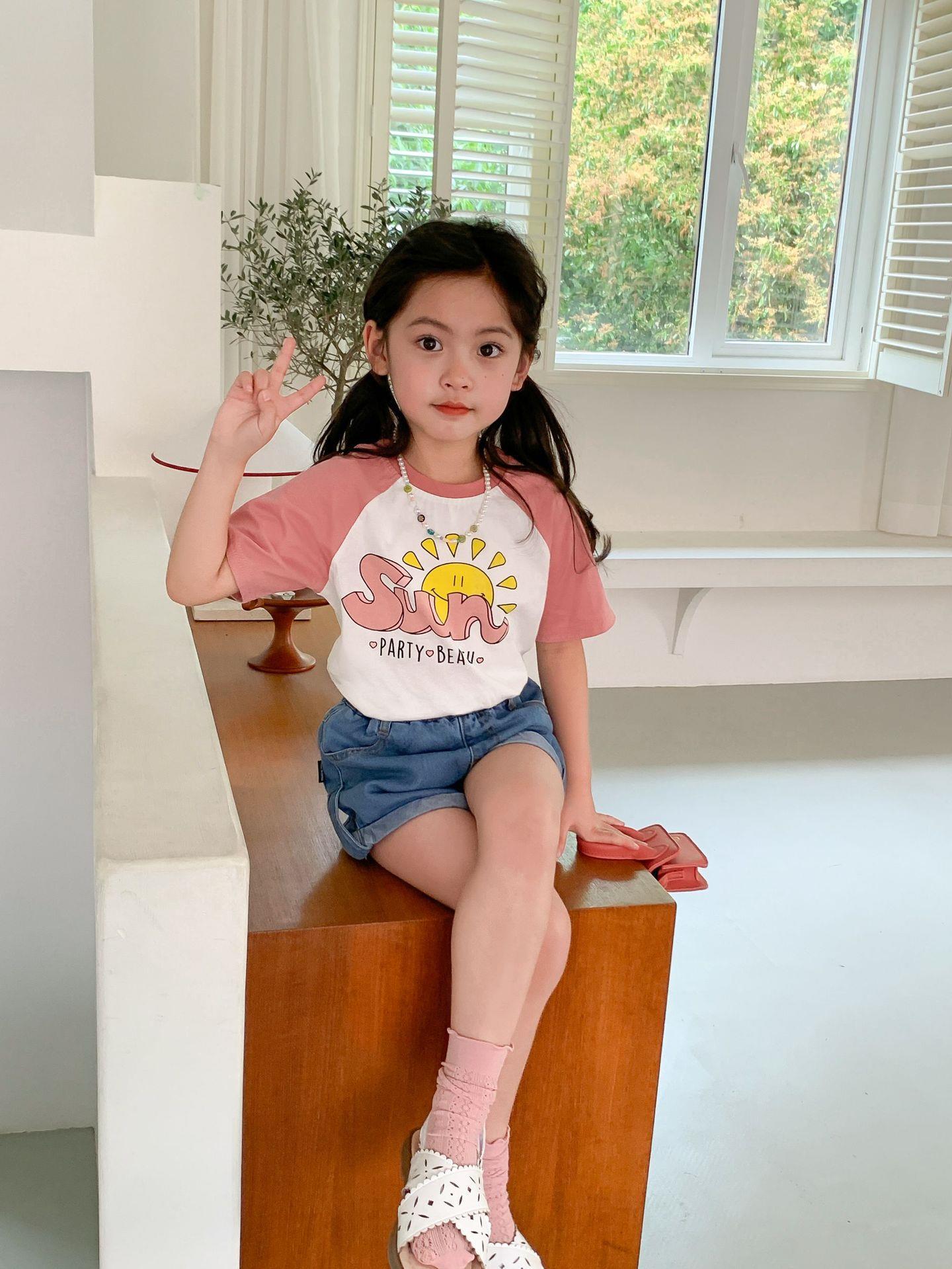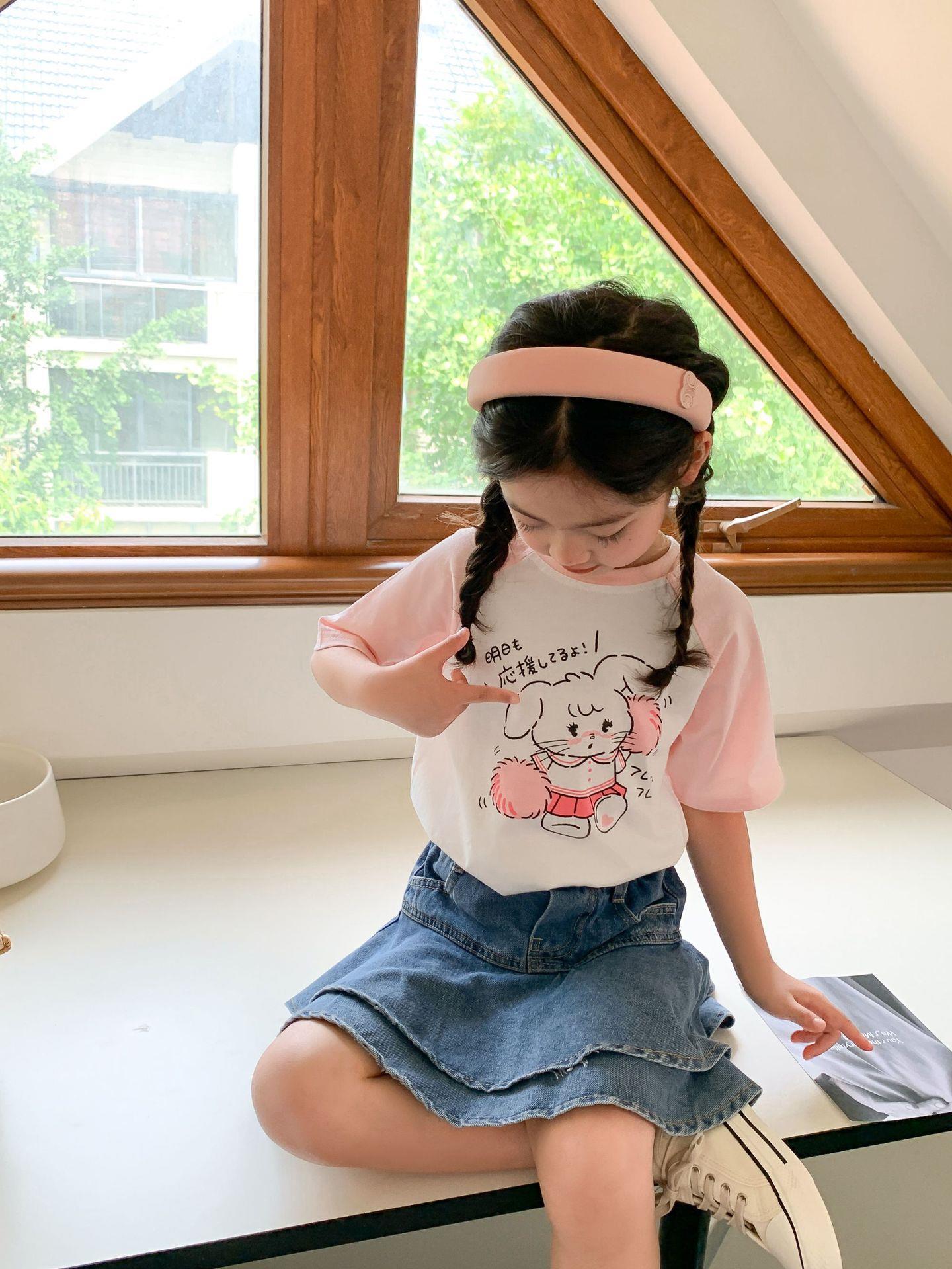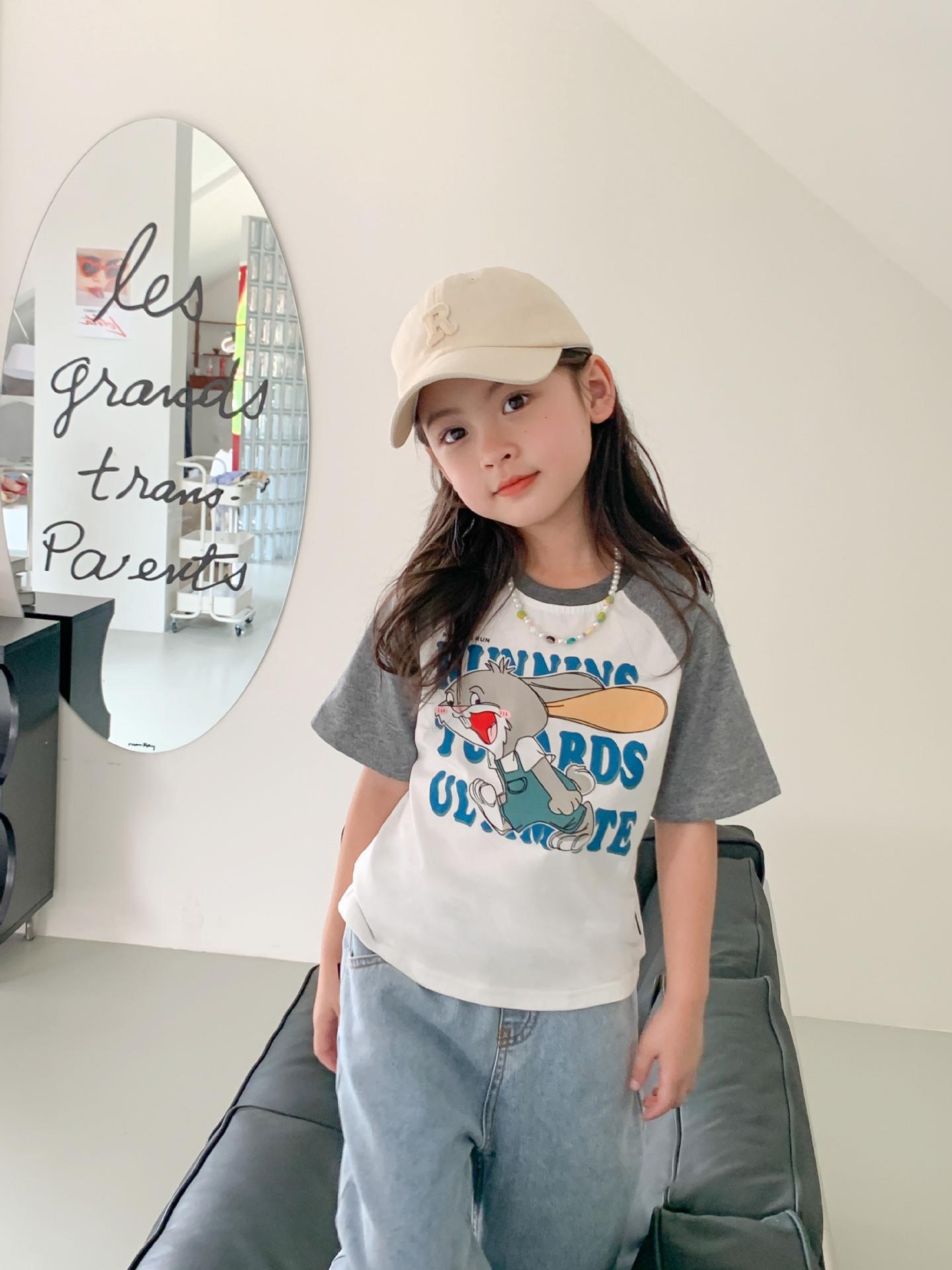 드림 당당 아동복 어린이 라글란 슬리브 티셔츠 2023 여름 한국 스타일 만화 아기 소년과 소녀를위한 느슨한 반팔 탑