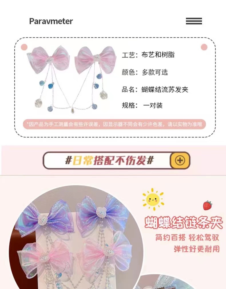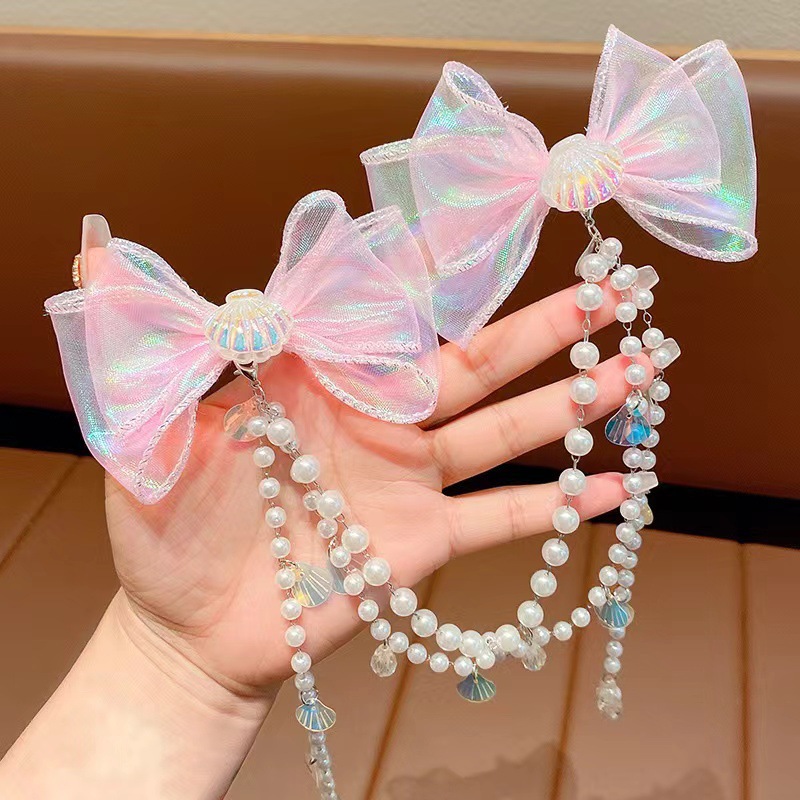 어린이 머리핀 절묘한 활 머리핀 쉘 진주 체인 귀여운 소녀 달콤한 슈퍼 요정 어린이 헤어 액세서리