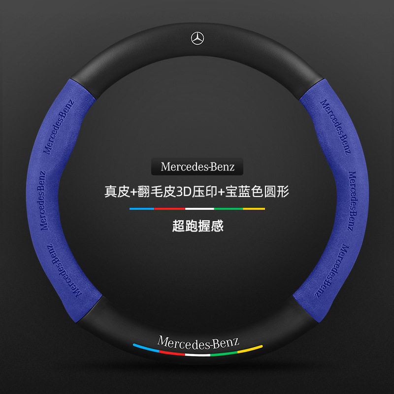 • 가죽 로얄 블루 라운드 메르세데스
