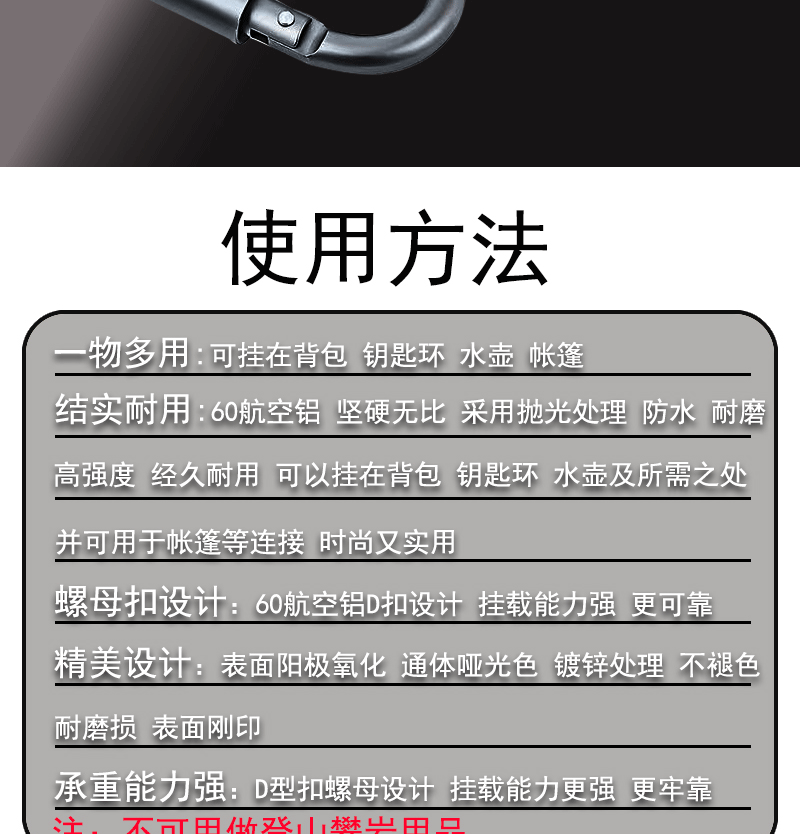 야외 캠핑 알루미늄 합금 등산 키 체인 D 형 빠른 교수형 버클 병 교수형 배낭 액세서리 EDC 용품 장비