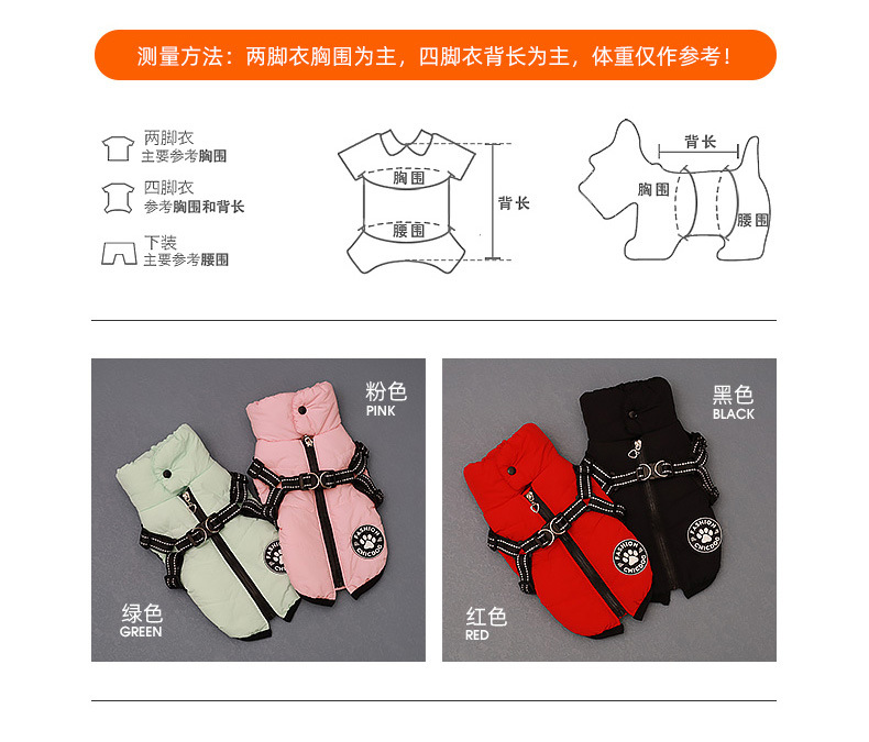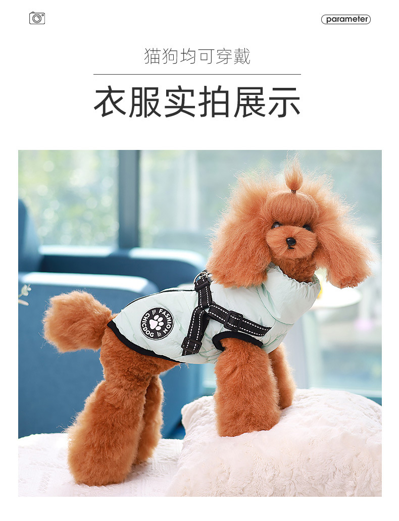 새로운 국경 아마존, 견인 가슴 뒤 겨울 개면 패딩 코트 강아지 양복 조끼 가을과 겨울 두꺼운 애완 동물 의류