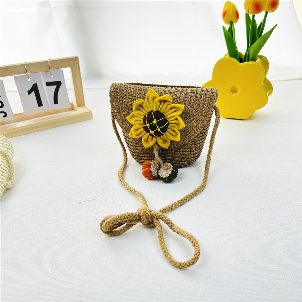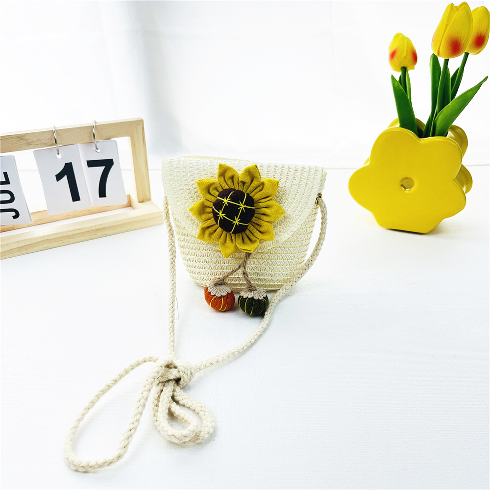 봄과 여름 새로운 밀짚 어린이 가방 해바라기 동전 지갑 플립 커버 여행 기념 소녀의 패션 크로스 바디 백