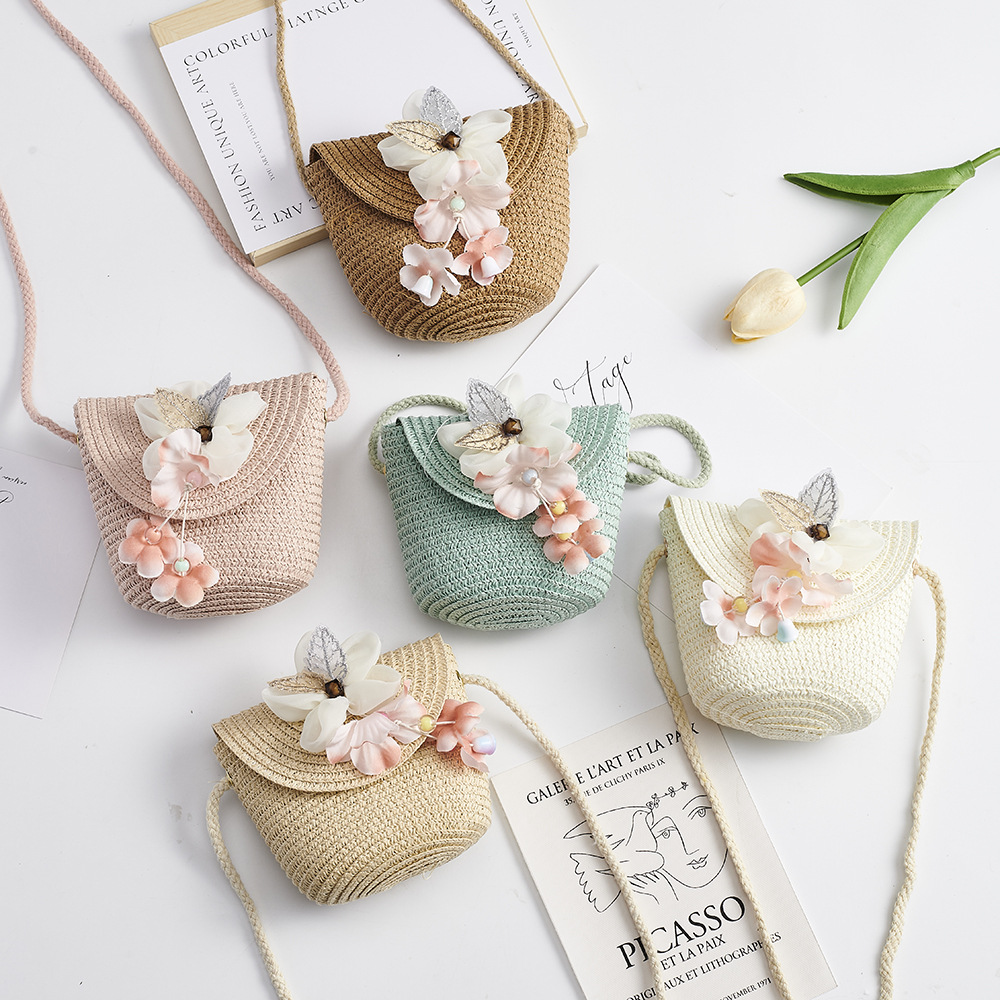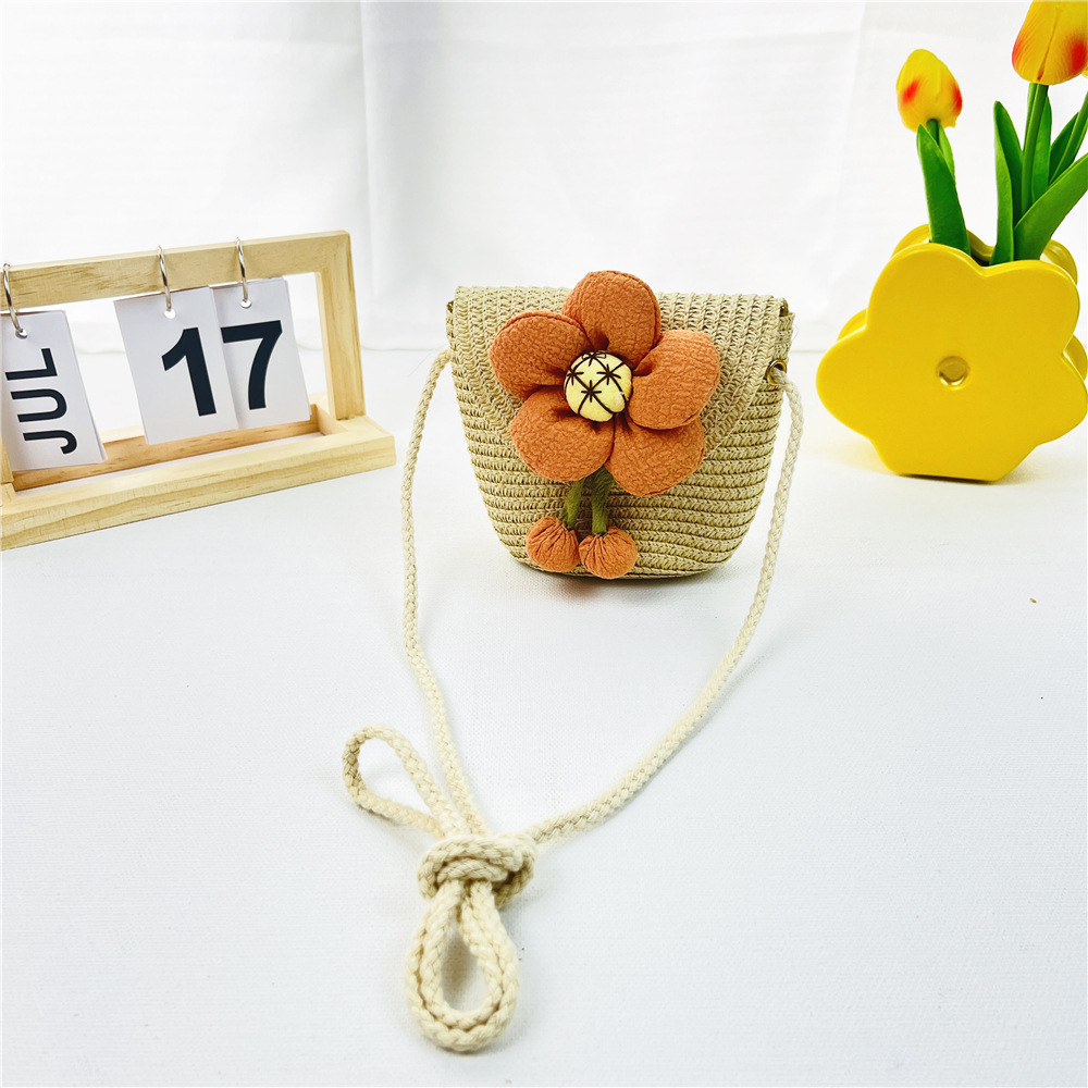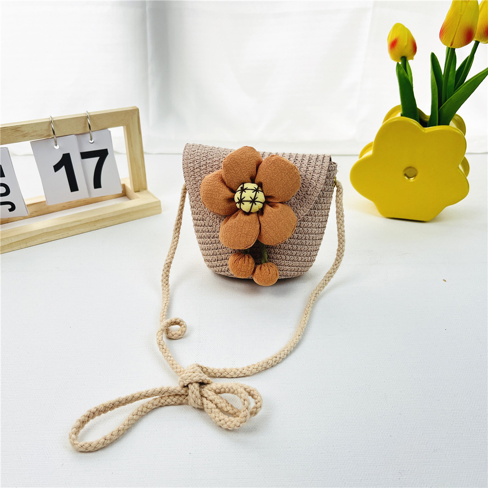 봄과 여름 새로운 밀짚 어린이 가방 해바라기 동전 지갑 플립 커버 여행 기념 소녀의 패션 크로스 바디 백스토어 가기