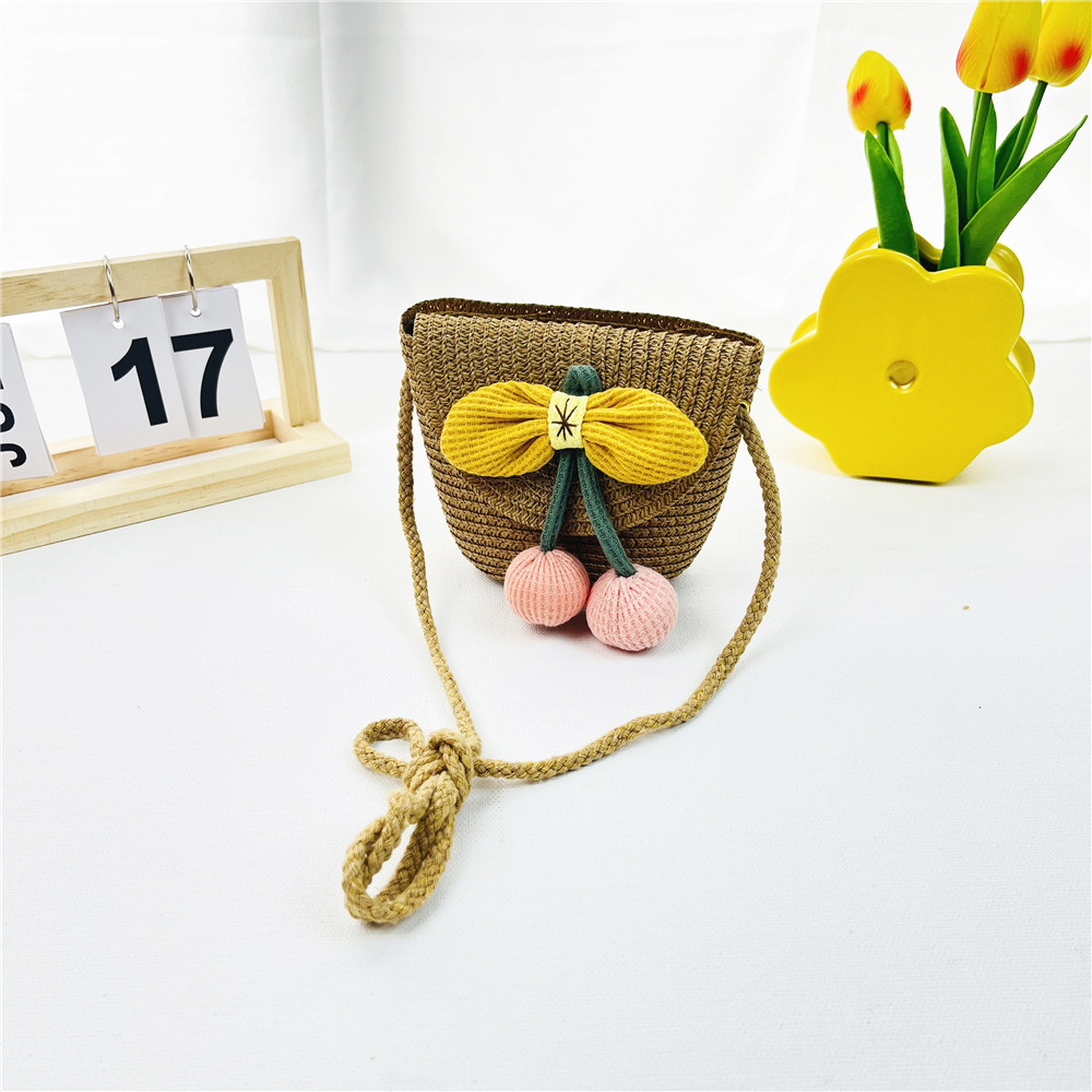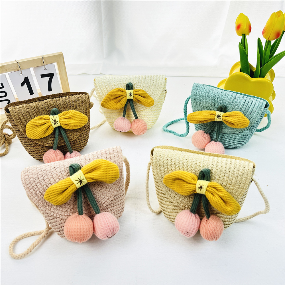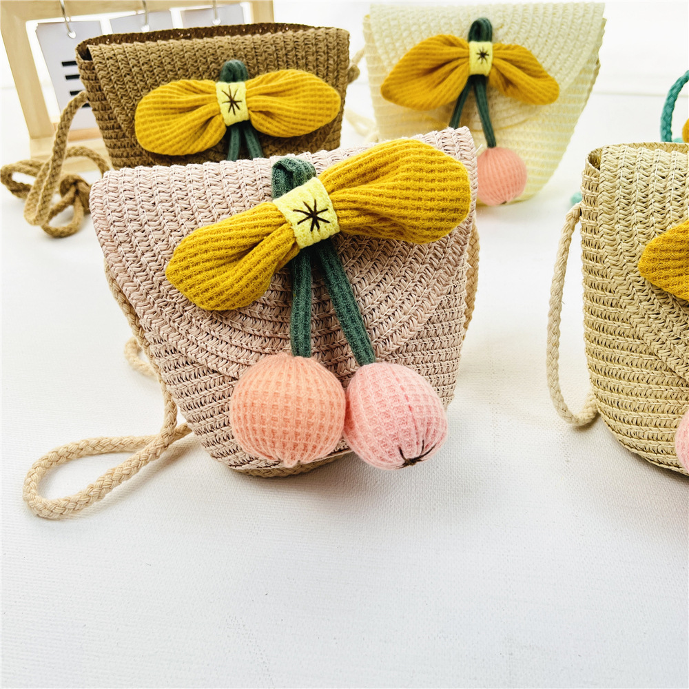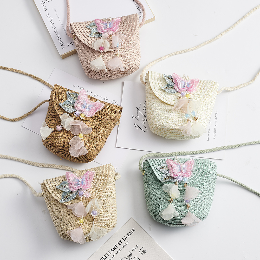 봄과 여름 새로운 밀짚 어린이 가방 해바라기 동전 지갑 플립 커버 여행 기념 소녀의 패션 크로스 바디 백스토어 가기
