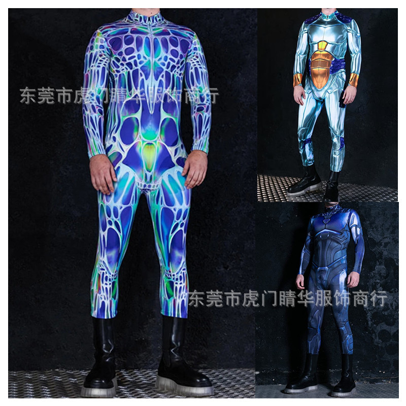 크로스 보더 새로운 20.23 백만 거룩한 축제 3D 디지털 인쇄 코스프레 플레이 여성의 꽉 긴 소매 점프 수트