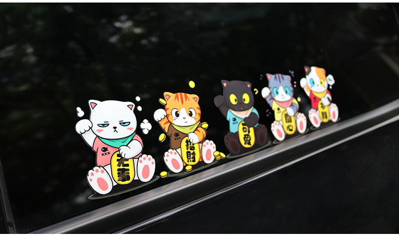 Zhaoji 고양이 자동차 제품 행운의 고양이 자동차 스티커 창조적 인 만화 자동차 스티커 반사 전기 오토바이 스크래치 장식 스티커스토어 가기
