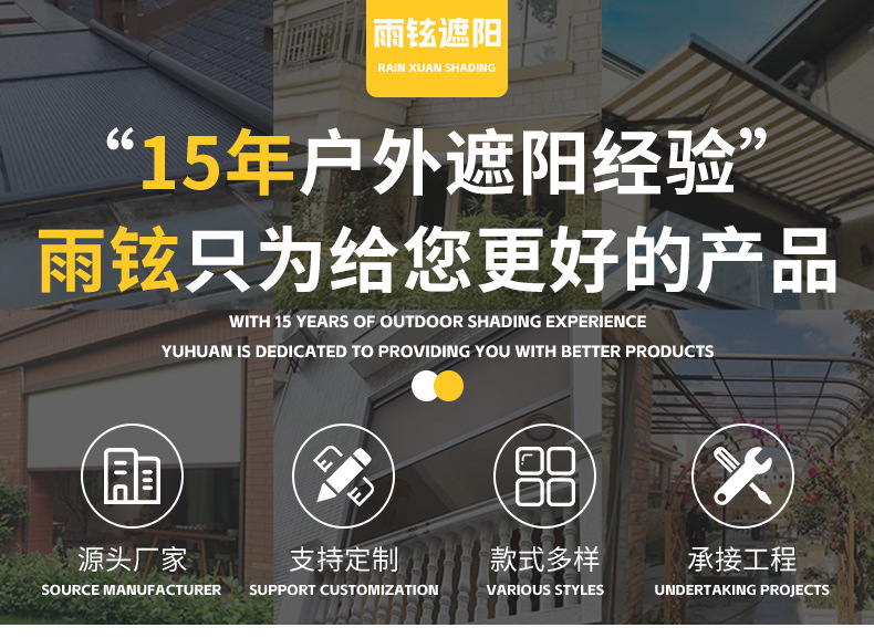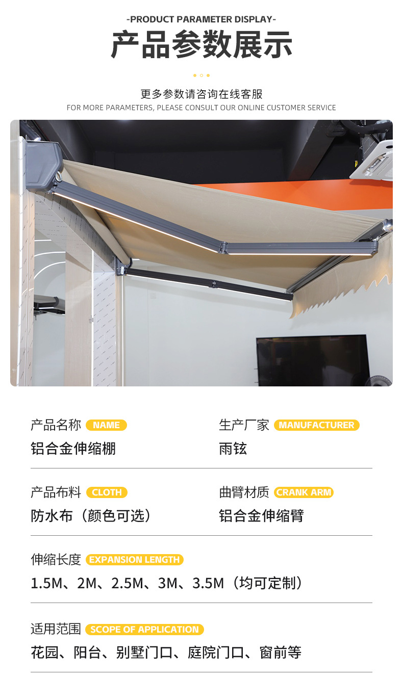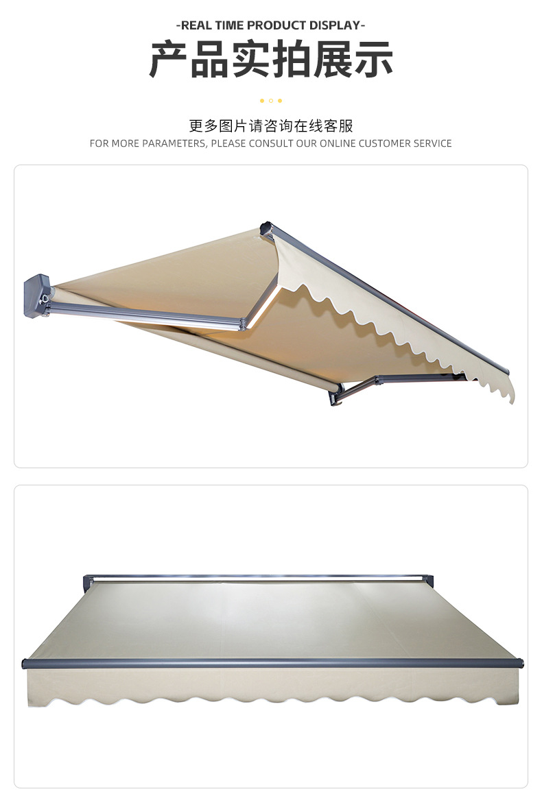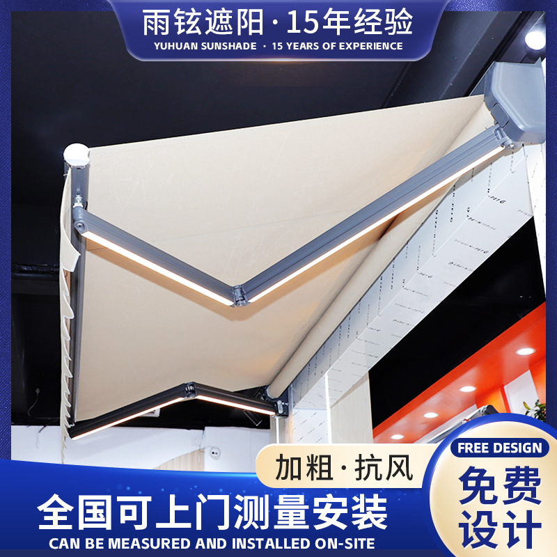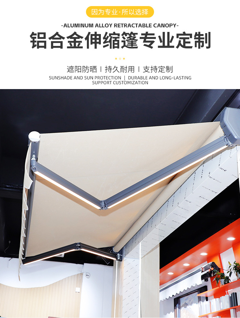 국경 도매 알루미늄 합금 차양 텔레스코픽 전기 원격 제어 발코니 차양 야외 텔레스코픽스토어 가기