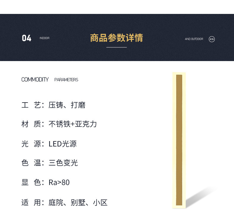 골든 스트립 야외 벽 램프 미니멀 빌라 야드 LED 정원 램프 심플 모던 외벽 입구 도어 램프
