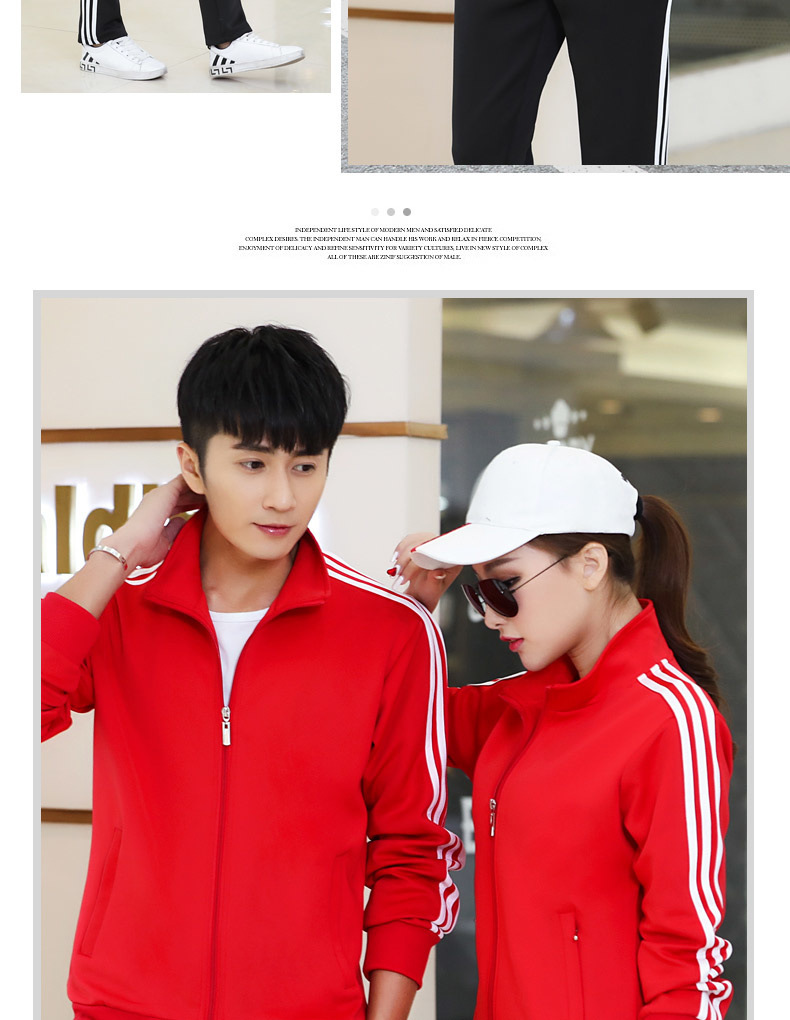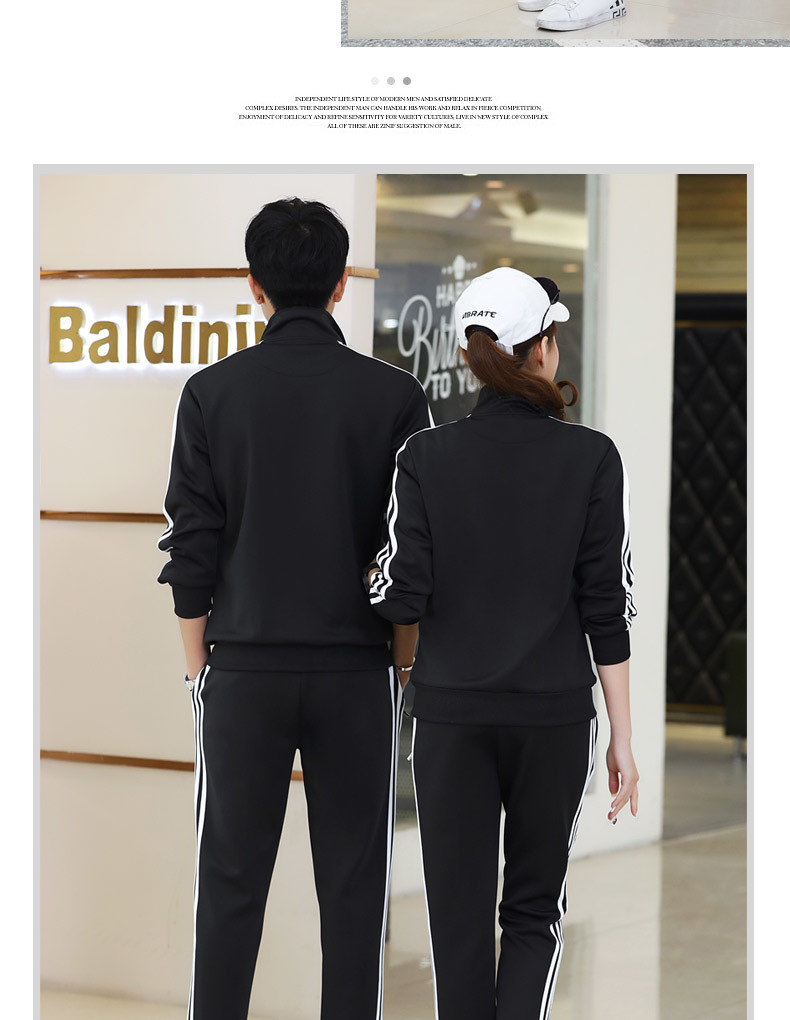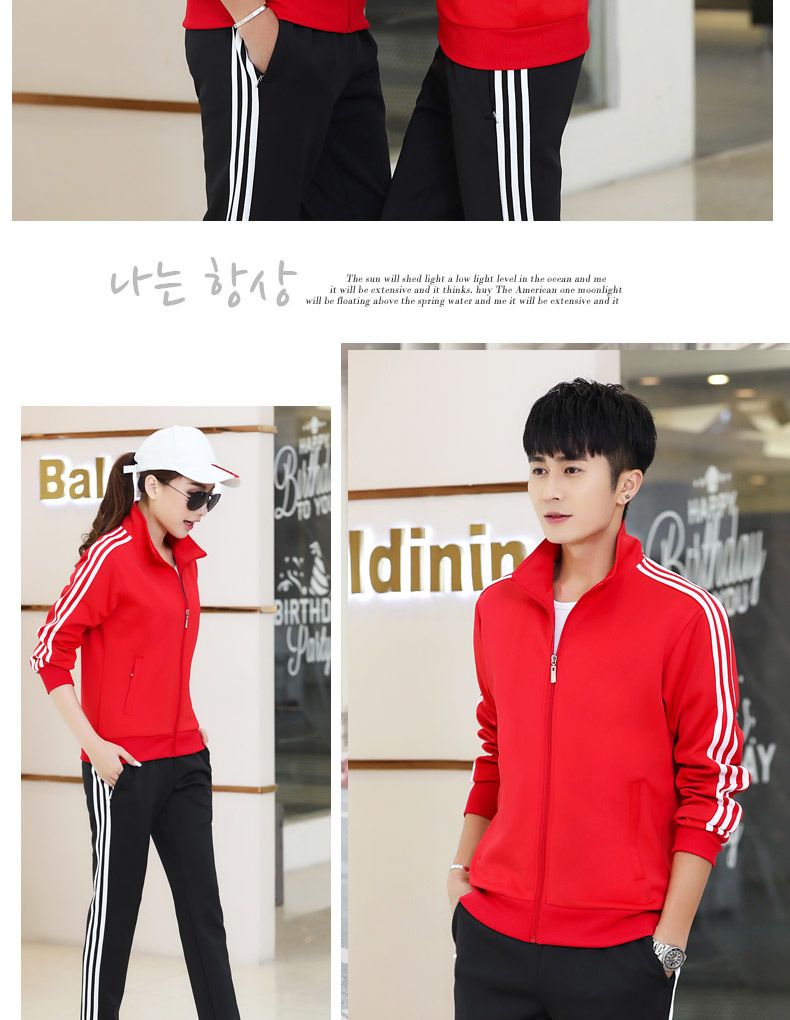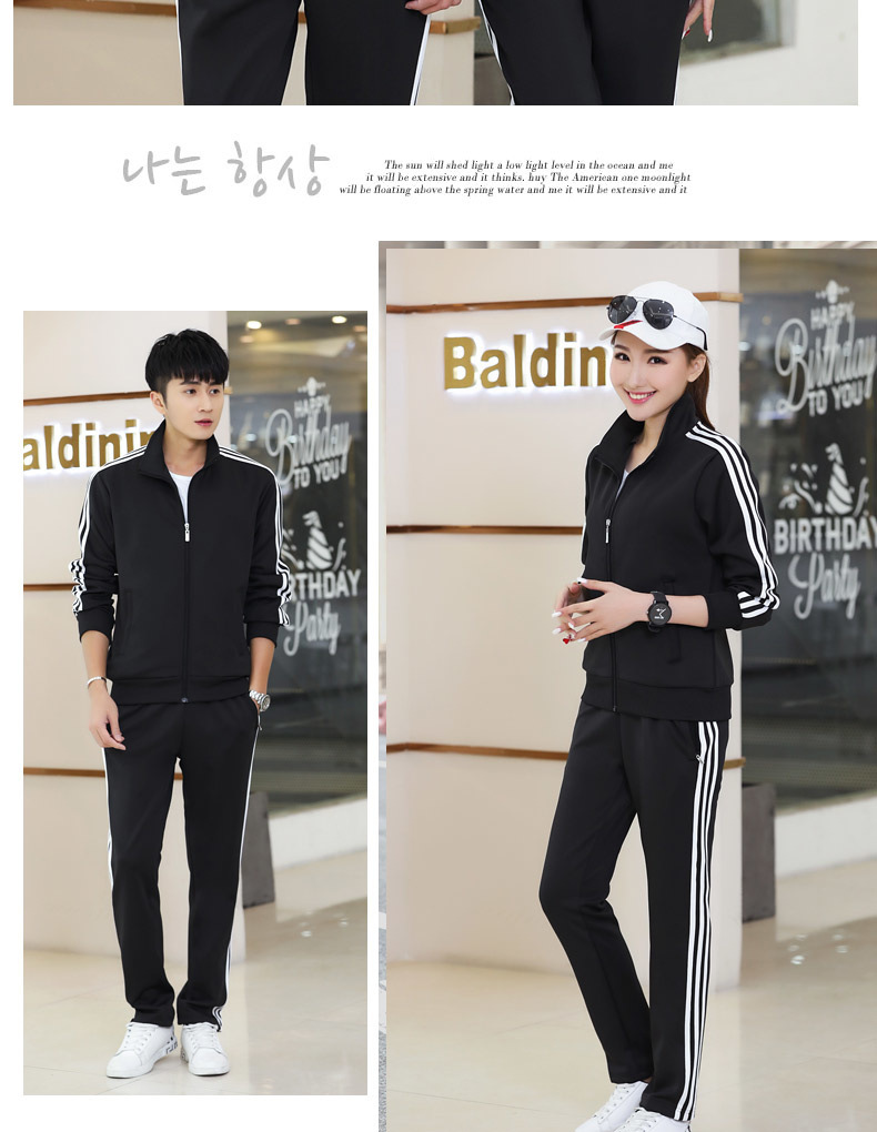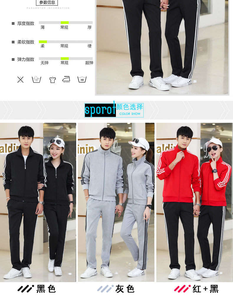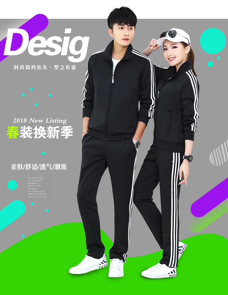 봄과 가을 커플 스포츠 세트 남성과 여성의 레저 야외 4 색 옵션 3 바 세트 도매 인쇄 로고