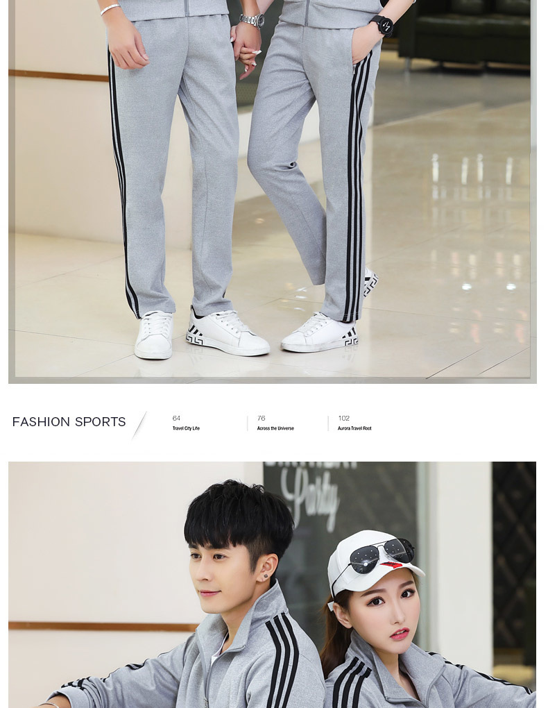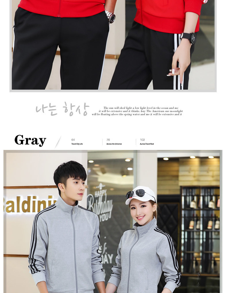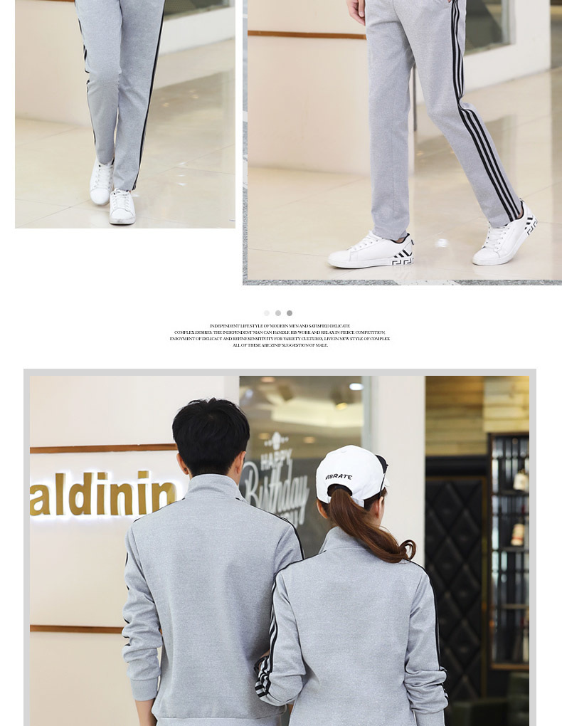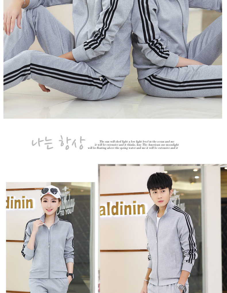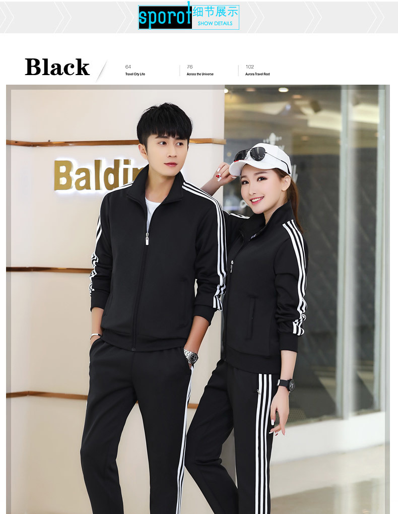 봄과 가을 커플 스포츠 세트 남성과 여성의 레저 야외 4 색 옵션 3 바 세트 도매 인쇄 로고