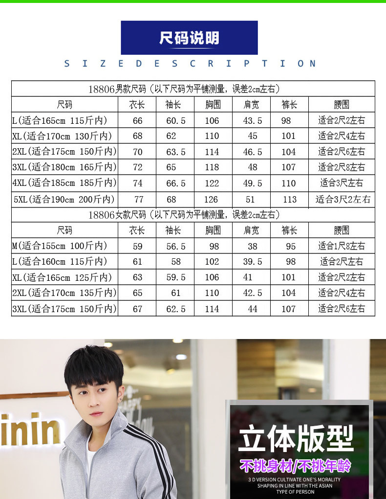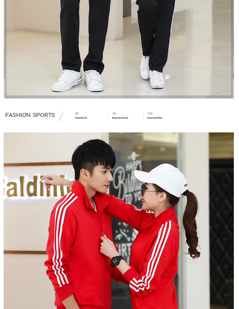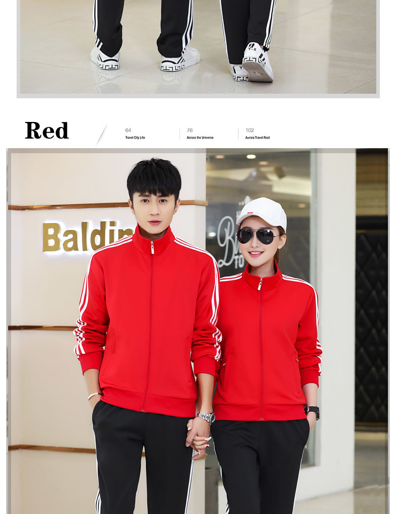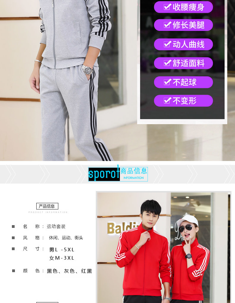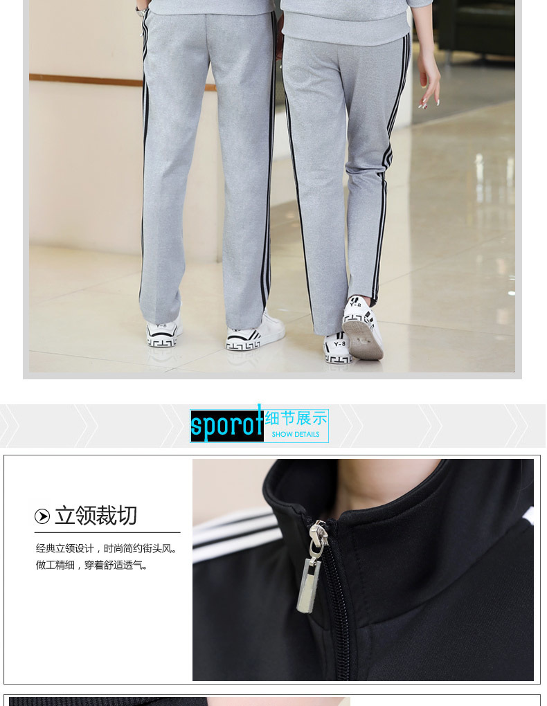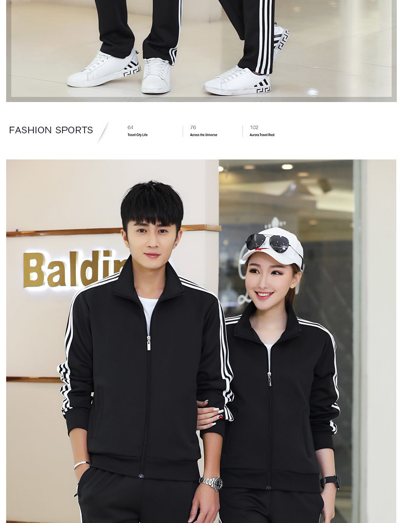 봄과 가을 커플 스포츠 세트 남성과 여성의 레저 야외 4 색 옵션 3 바 세트 도매 인쇄 로고