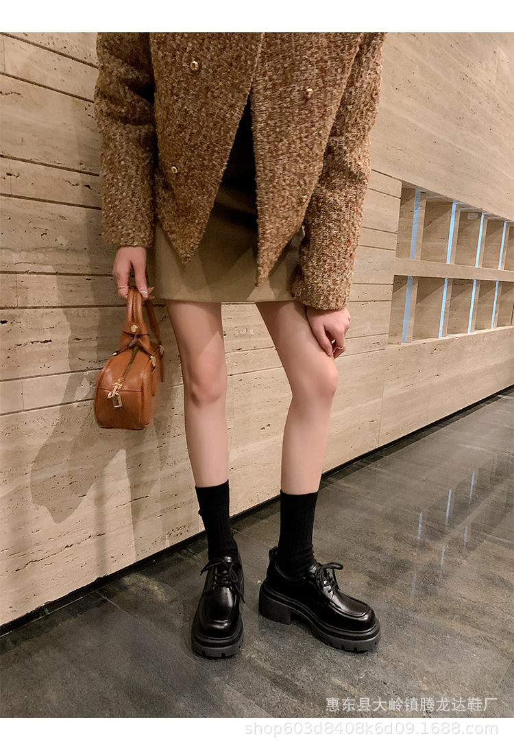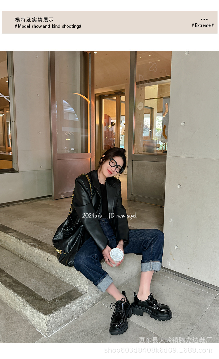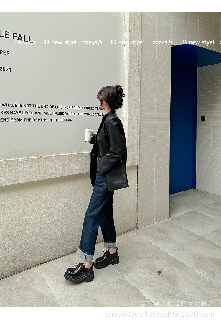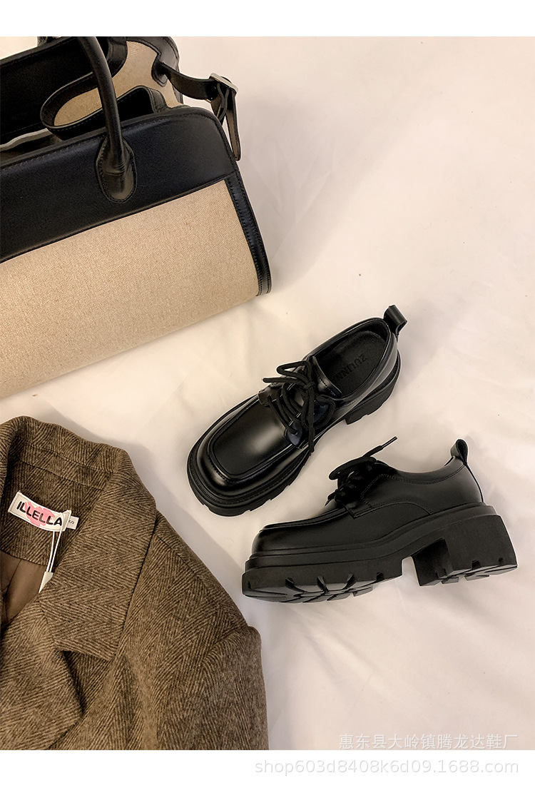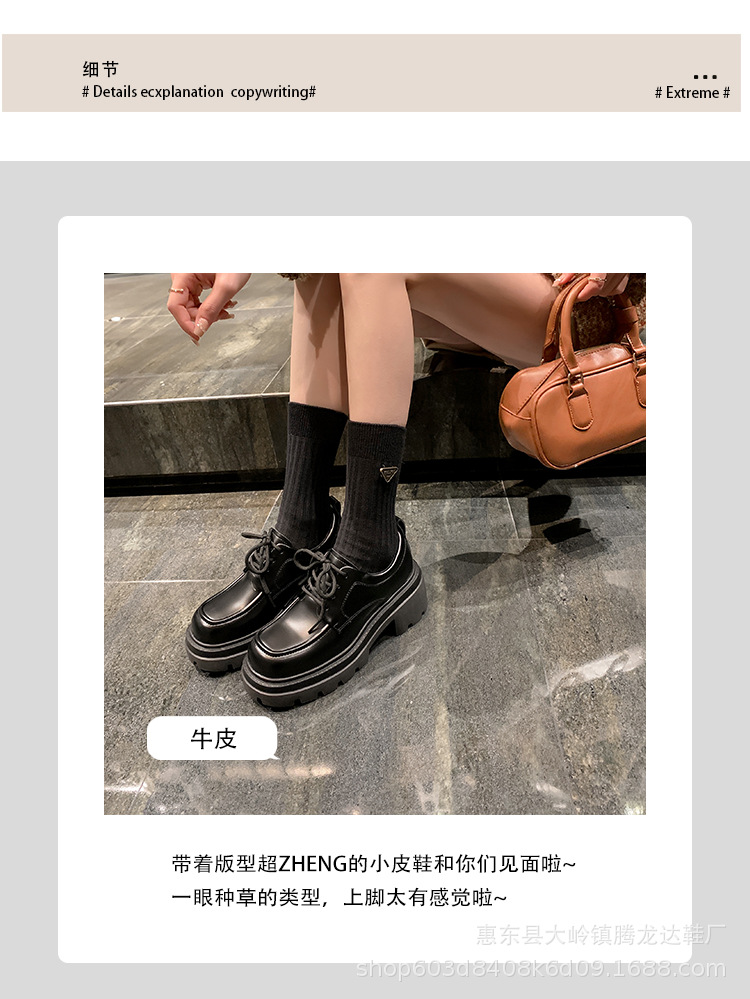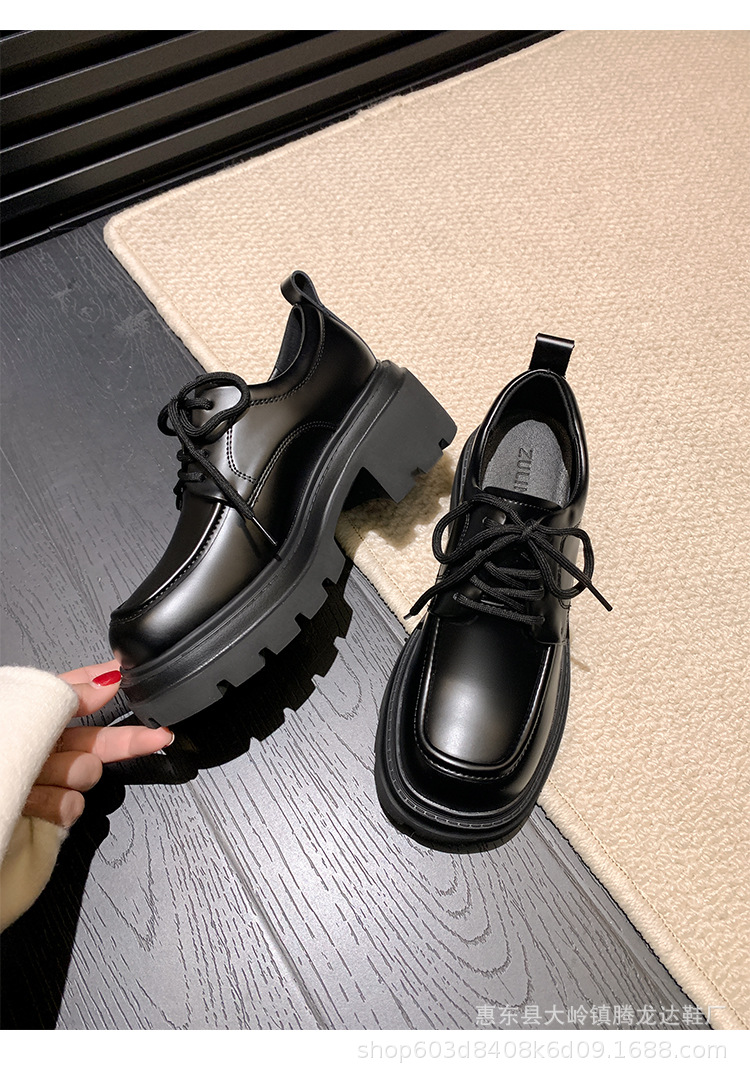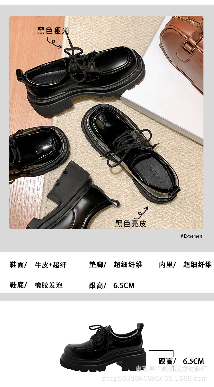 영국 스타일 Lefu 작은 가죽 신발 여성 두꺼운 단독 2025 봄 새로운 Lefu 신발 블랙 8 큰 두꺼운 레이스 업 신발