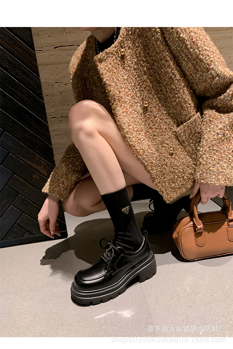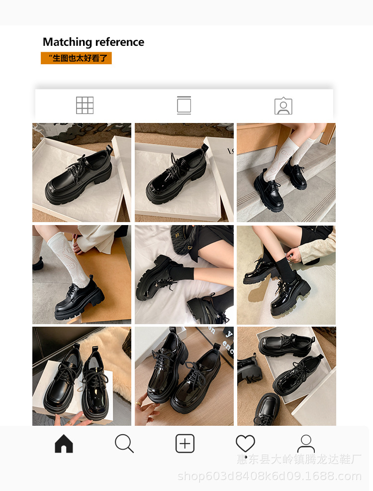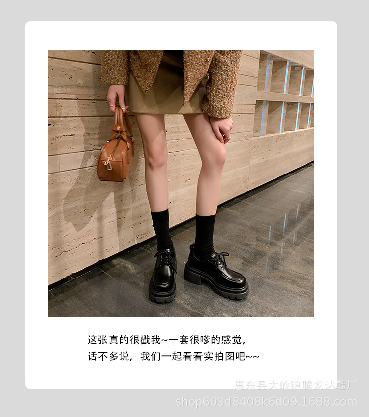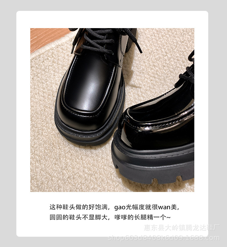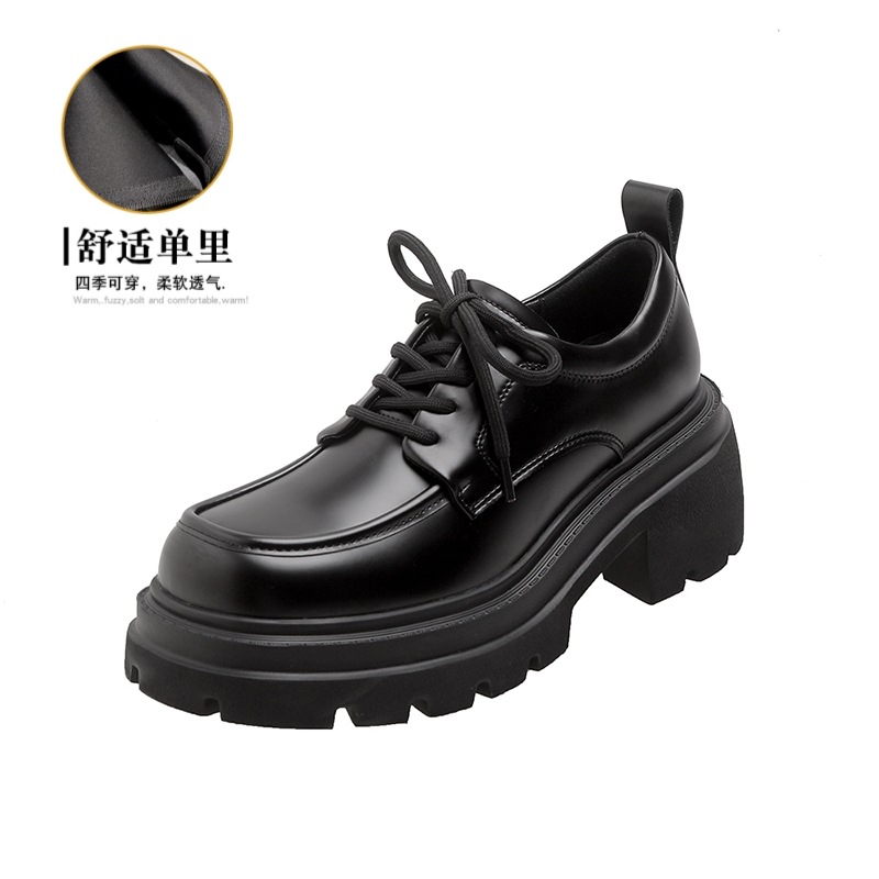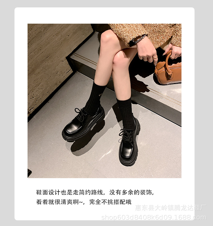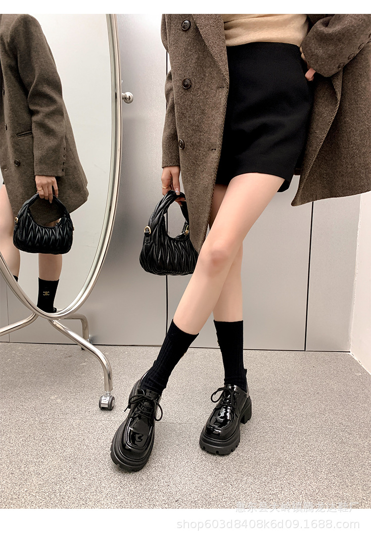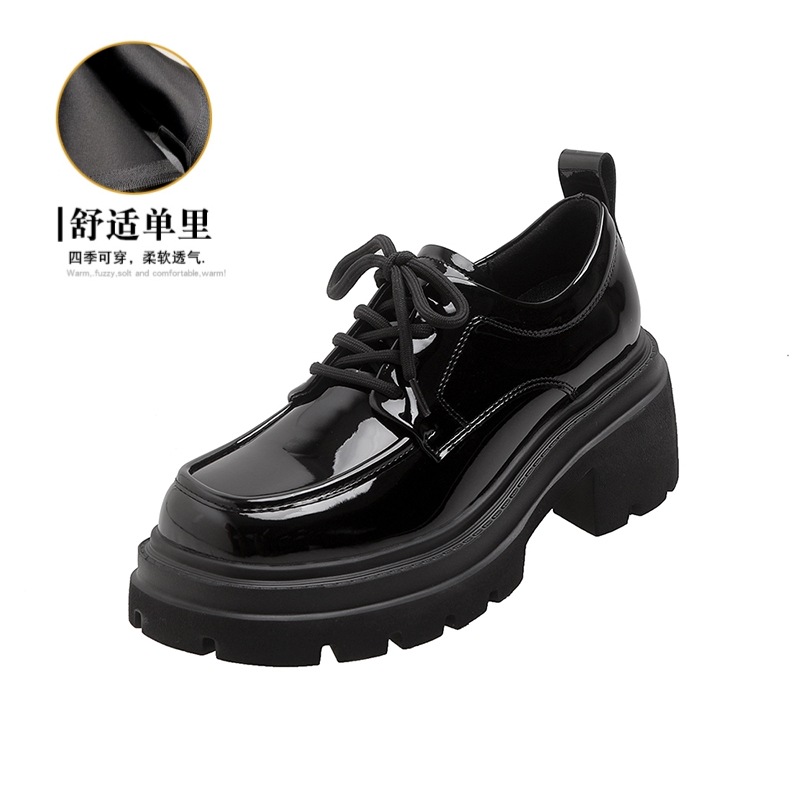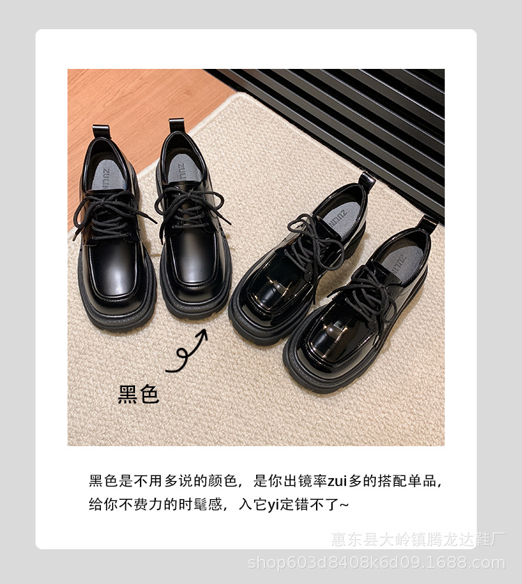 영국 스타일 Lefu 작은 가죽 신발 여성 두꺼운 단독 2025 봄 새로운 Lefu 신발 블랙 8 큰 두꺼운 레이스 업 신발