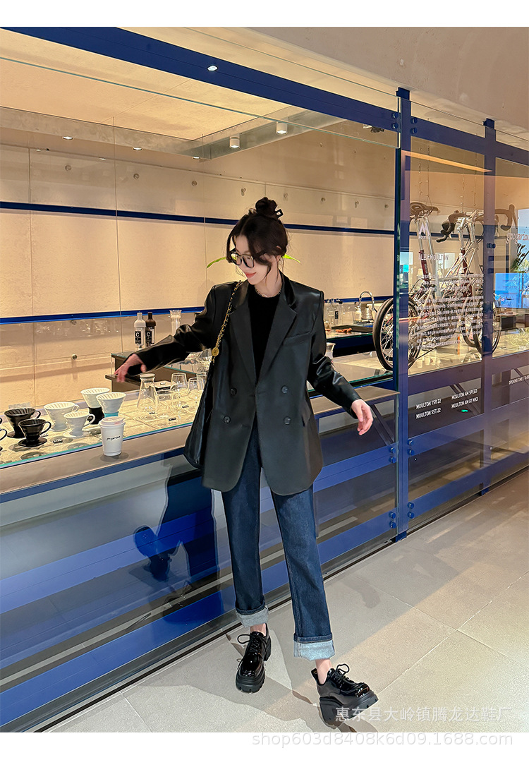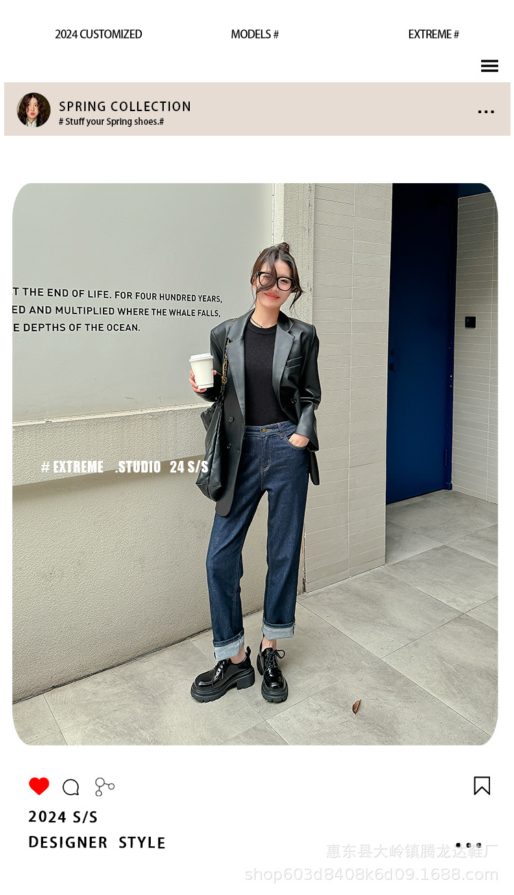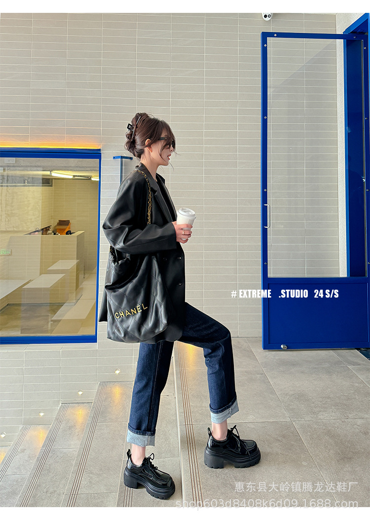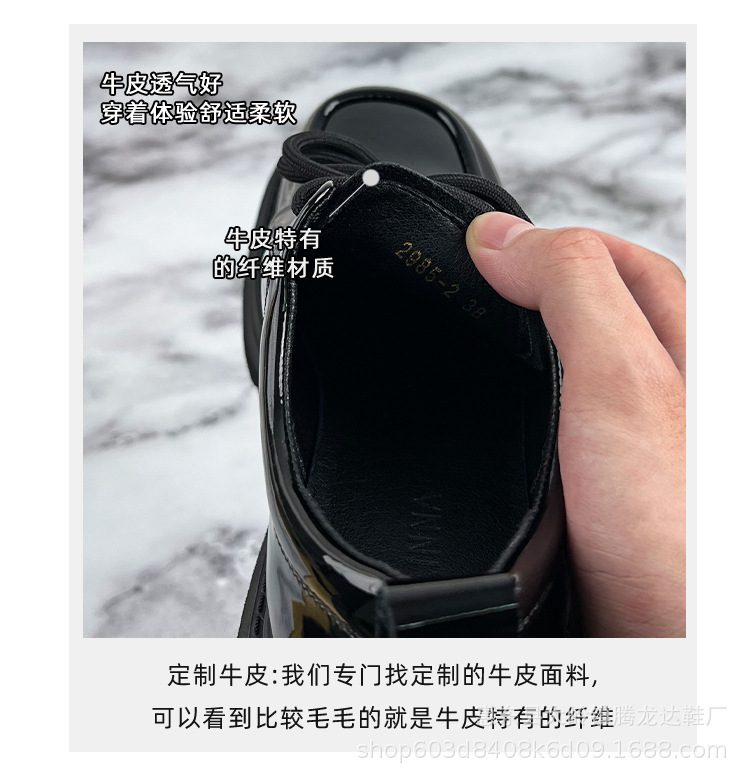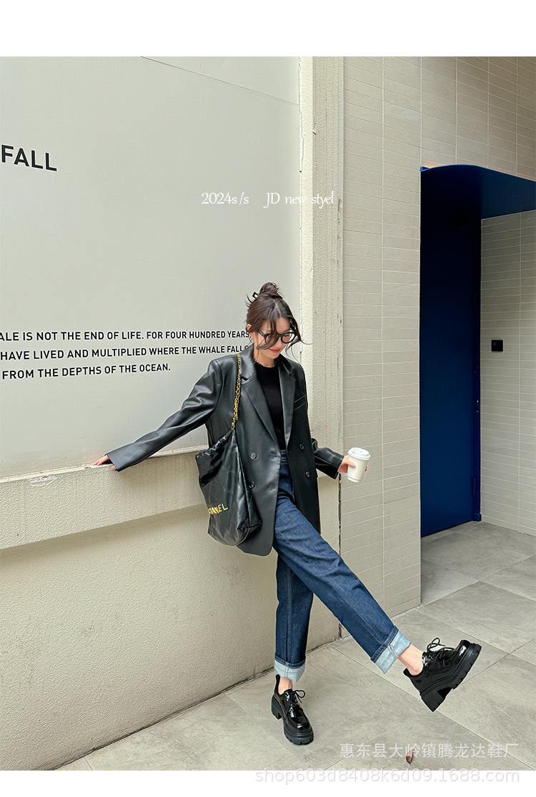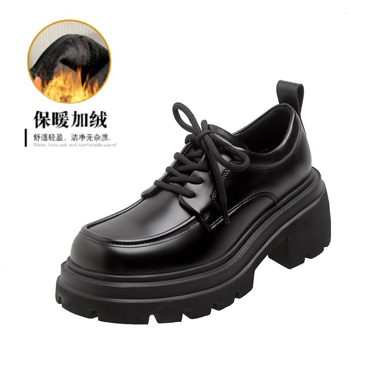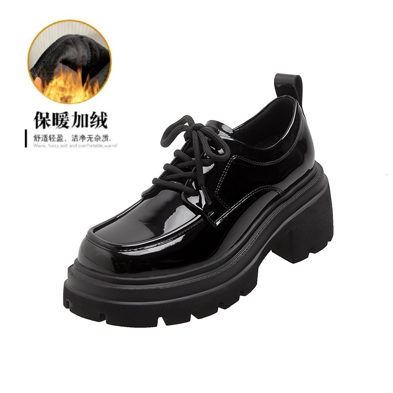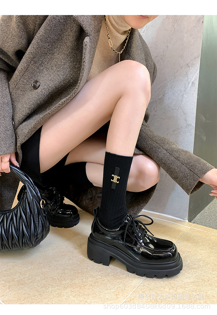 영국 스타일 Lefu 작은 가죽 신발 여성 두꺼운 단독 2025 봄 새로운 Lefu 신발 블랙 8 큰 두꺼운 레이스 업 신발