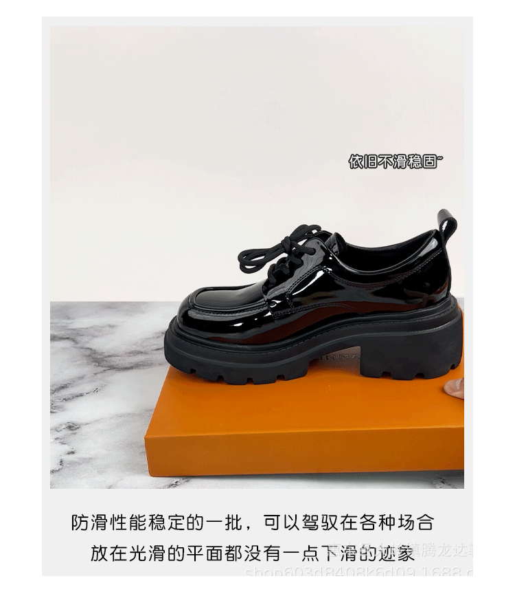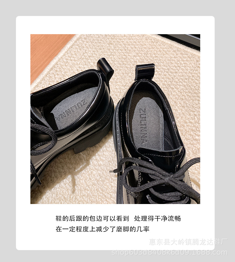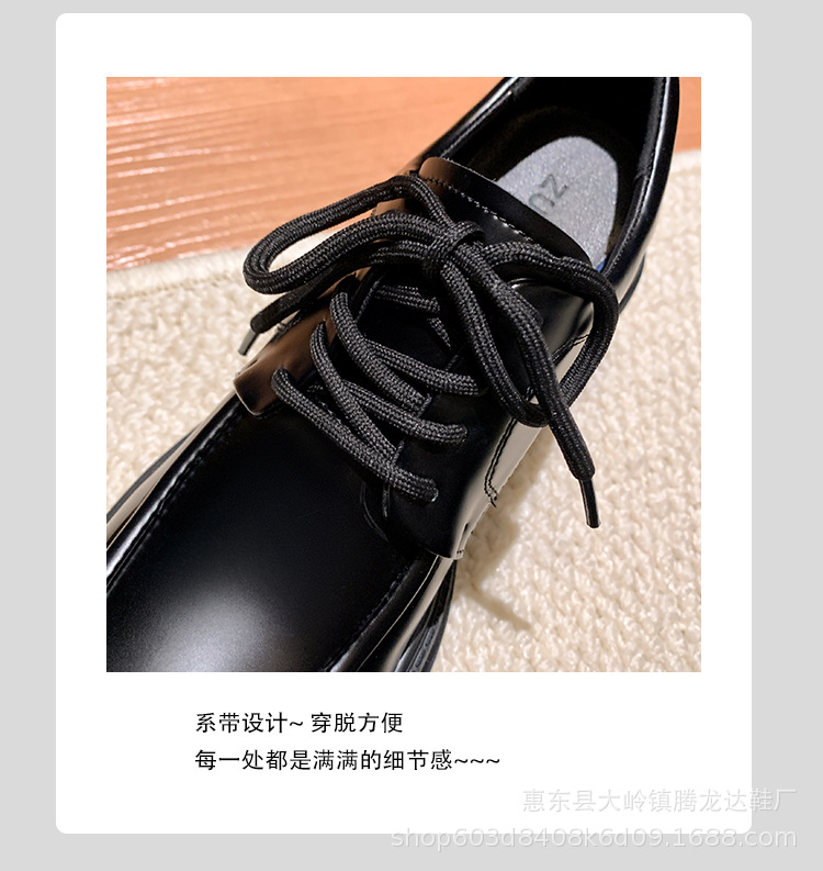 영국 스타일 Lefu 작은 가죽 신발 여성 두꺼운 단독 2025 봄 새로운 Lefu 신발 블랙 8 큰 두꺼운 레이스 업 신발스토어 가기