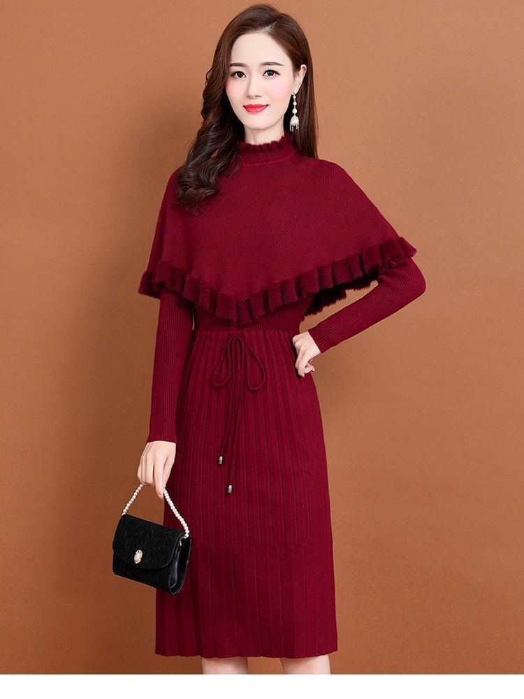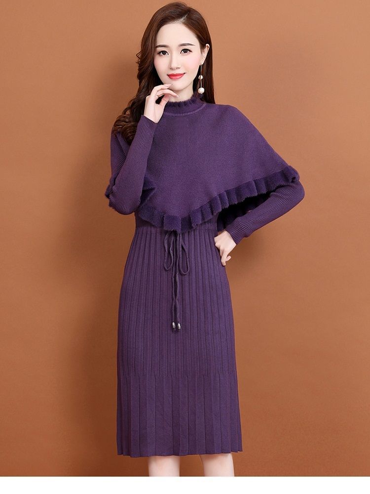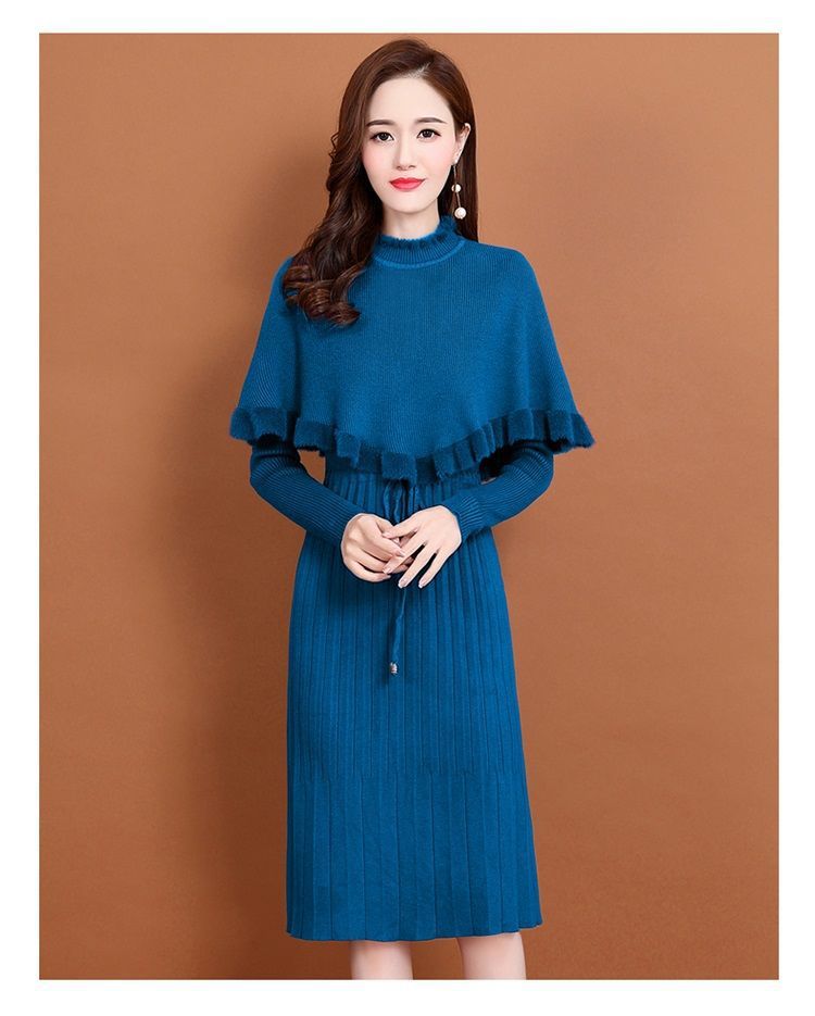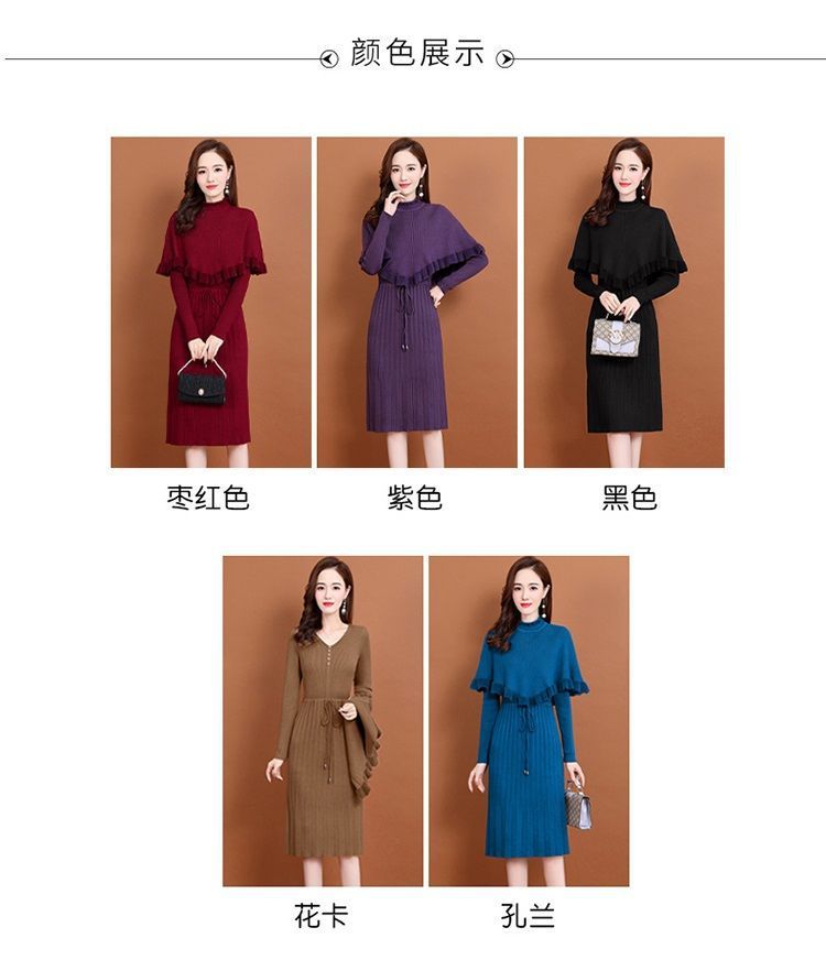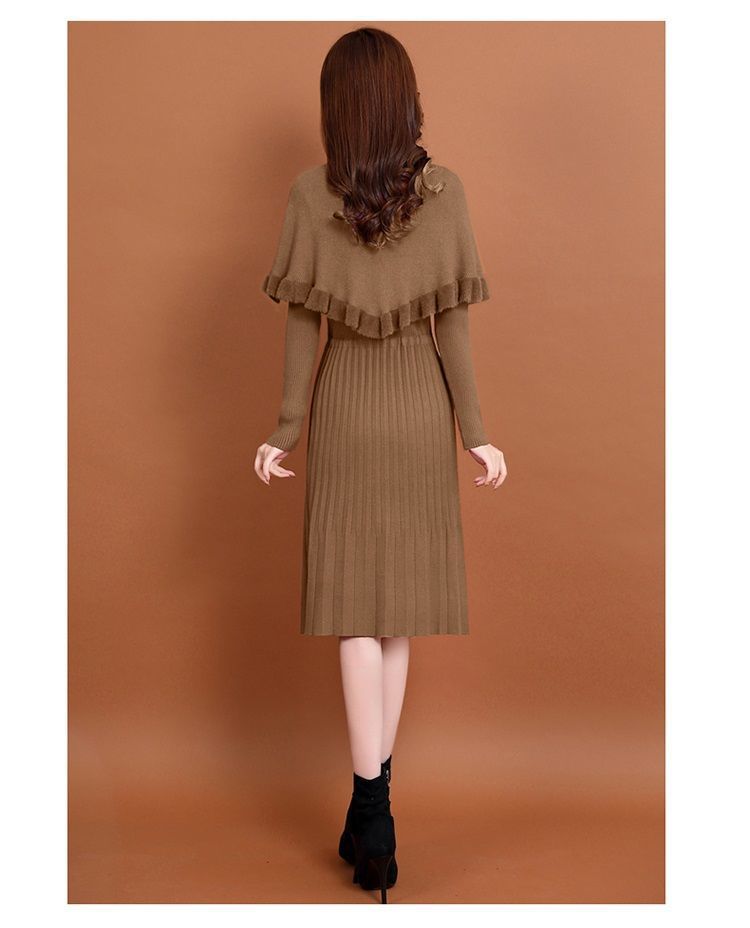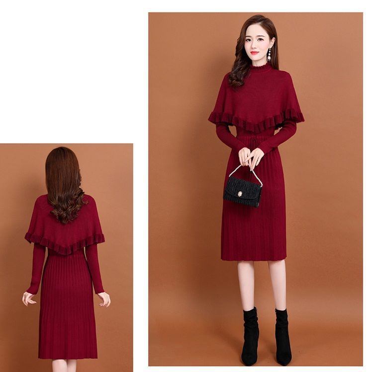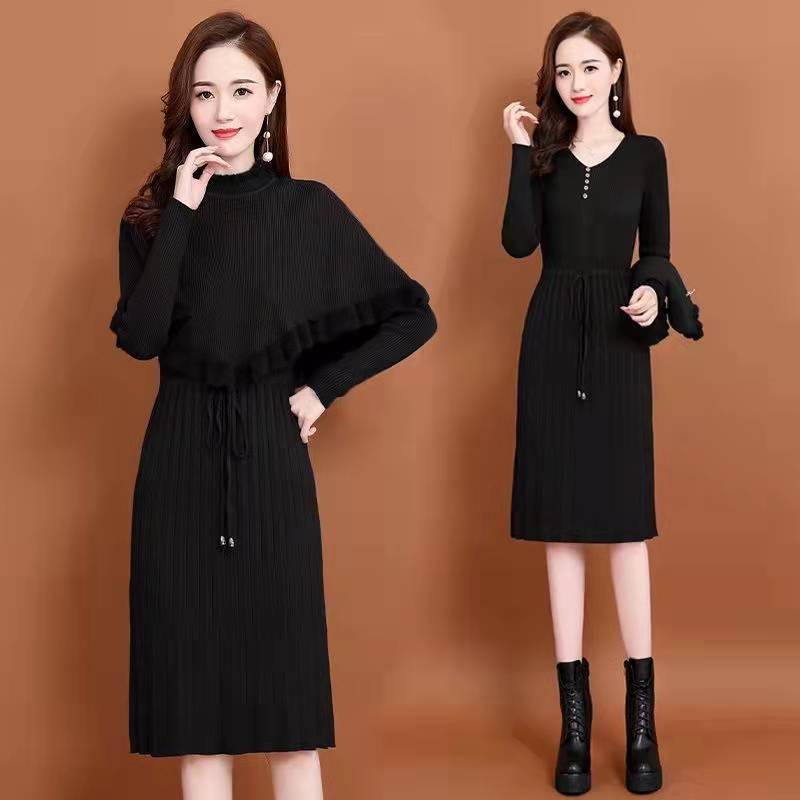 두꺼운 니트 원피스 여성용 투피스 세트 2023 새로운 가을과 겨울 망토 우아한 슬림 핏 스웨터 원피스 세트 패션스토어 가기