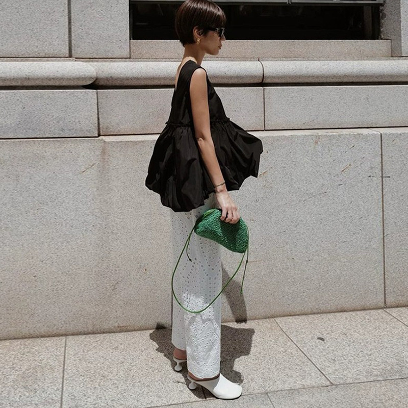 일본 블로거 틈새 디자인 민소매 셔츠 여성용 새싹 모양 마차트 에어 센스 조끼 루즈한 탑